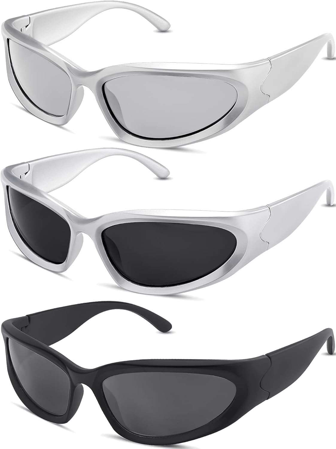 milramtob Y2K Wrap Around Sunglasses Trendy Silver Glasses Retro 90s Shades W…