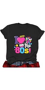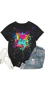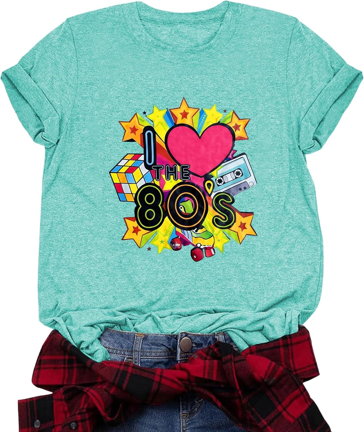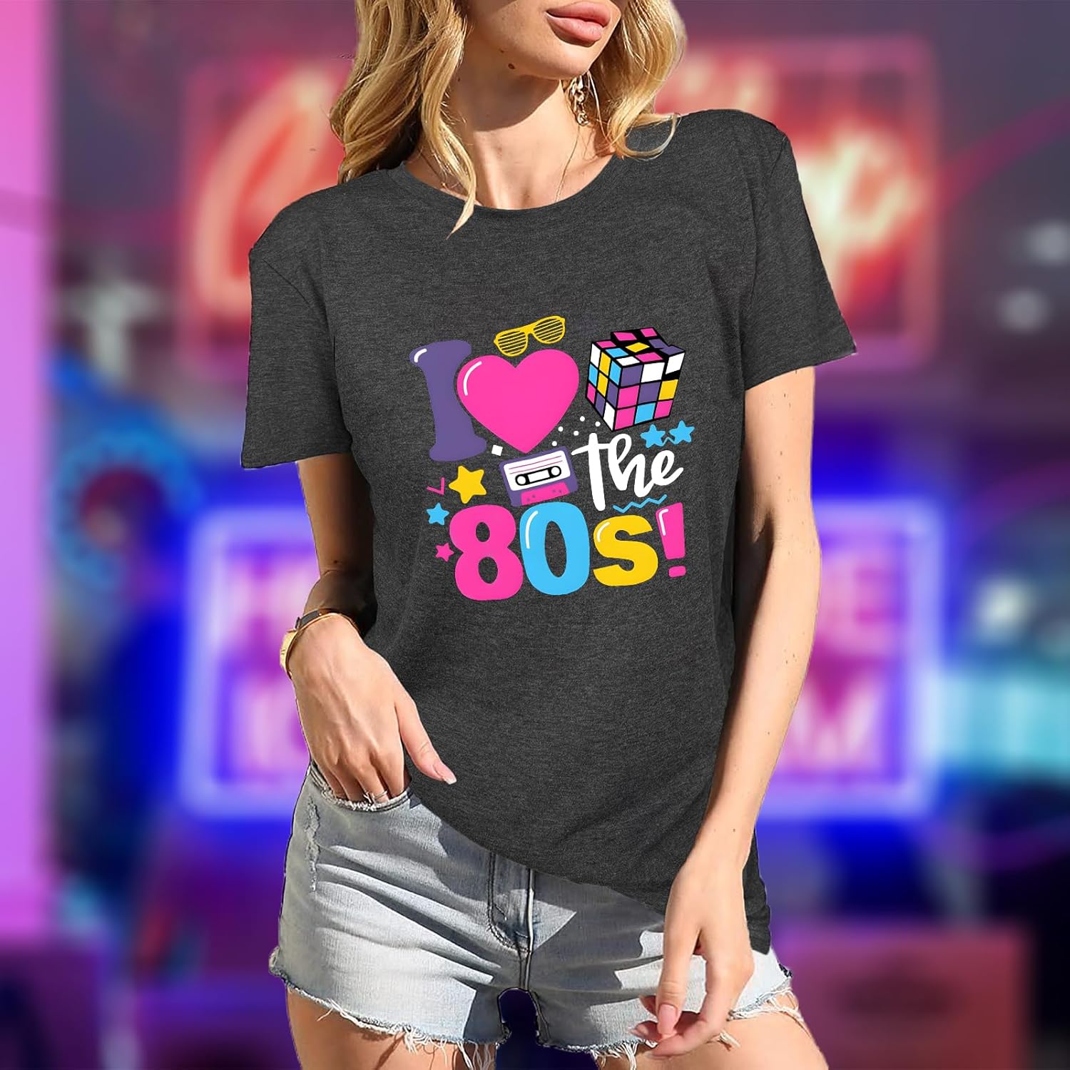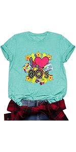 80s Shirts for Women 1980s Party Graphic Tee Tops Retro 90s Disco Music Themed Party Style Outfit