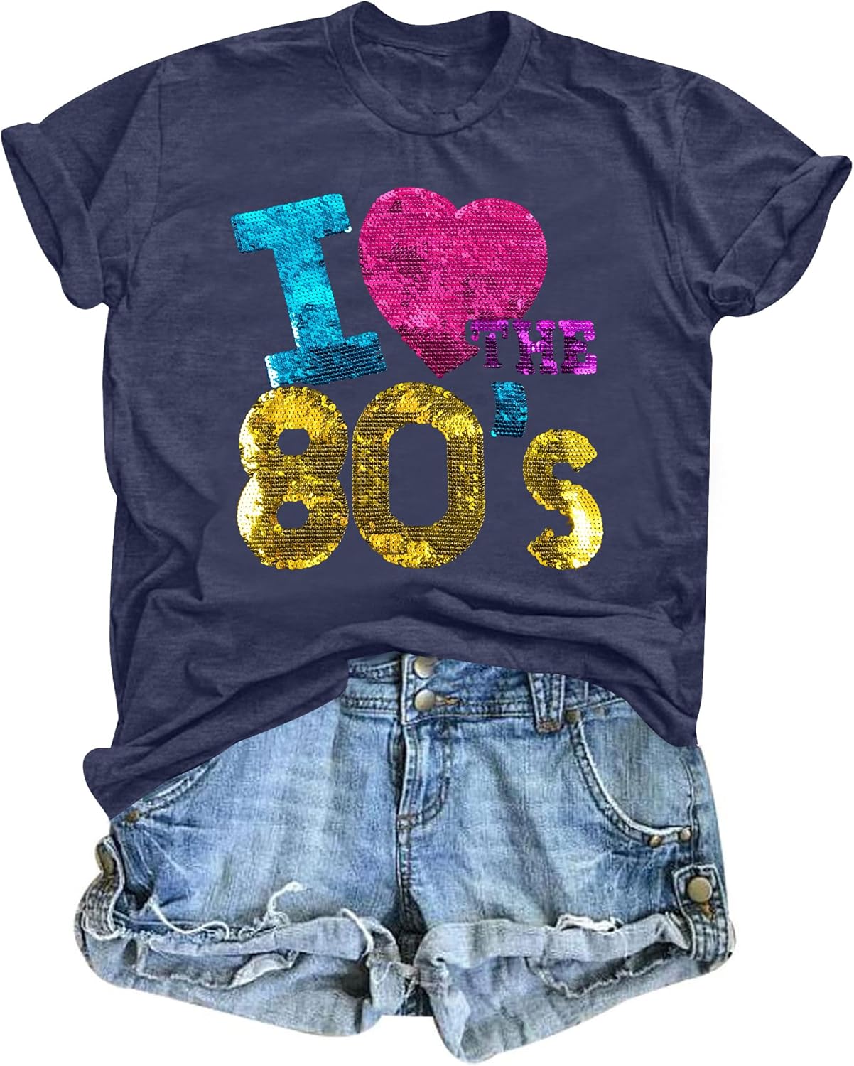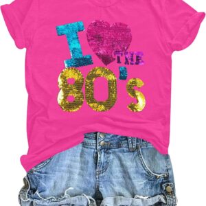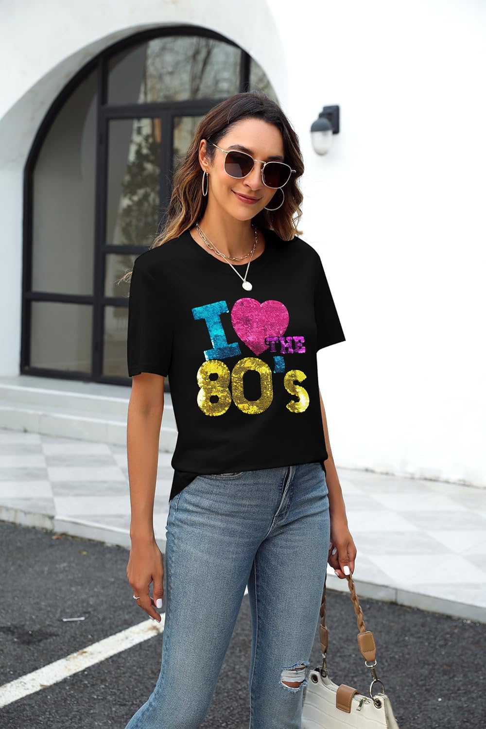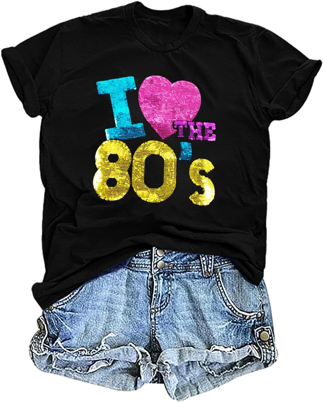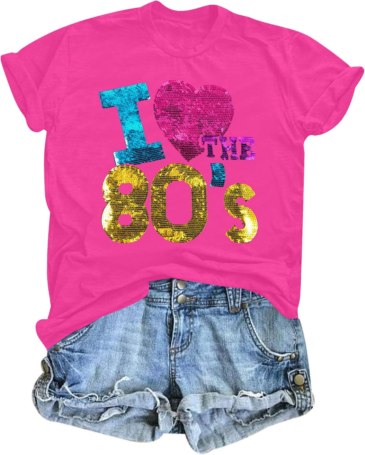 80s Shirts for Women 80s 90s Outfits Vintage Neon I Love The 80s Shirt Casual Birthday Party Gift Tee Tops quantity