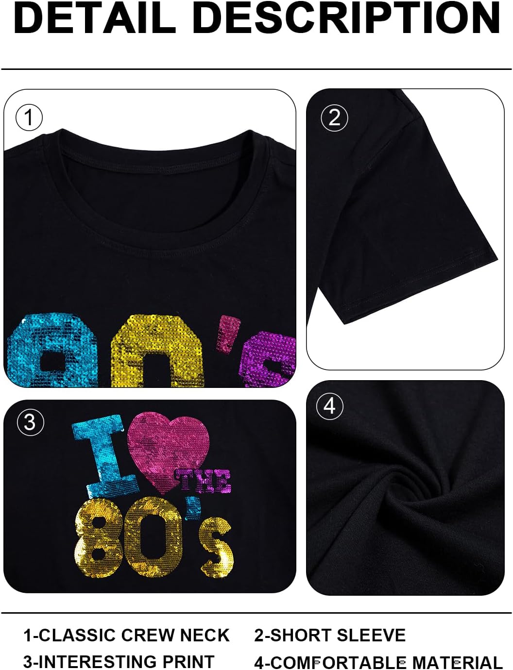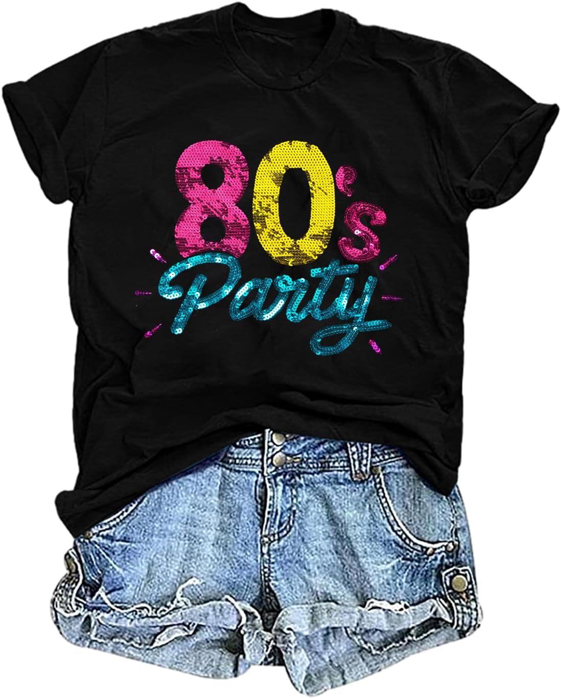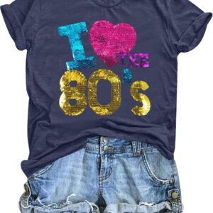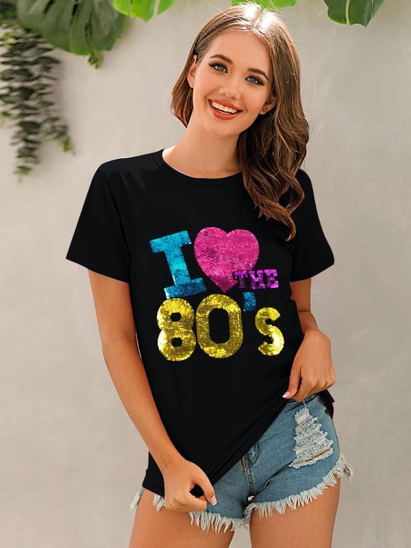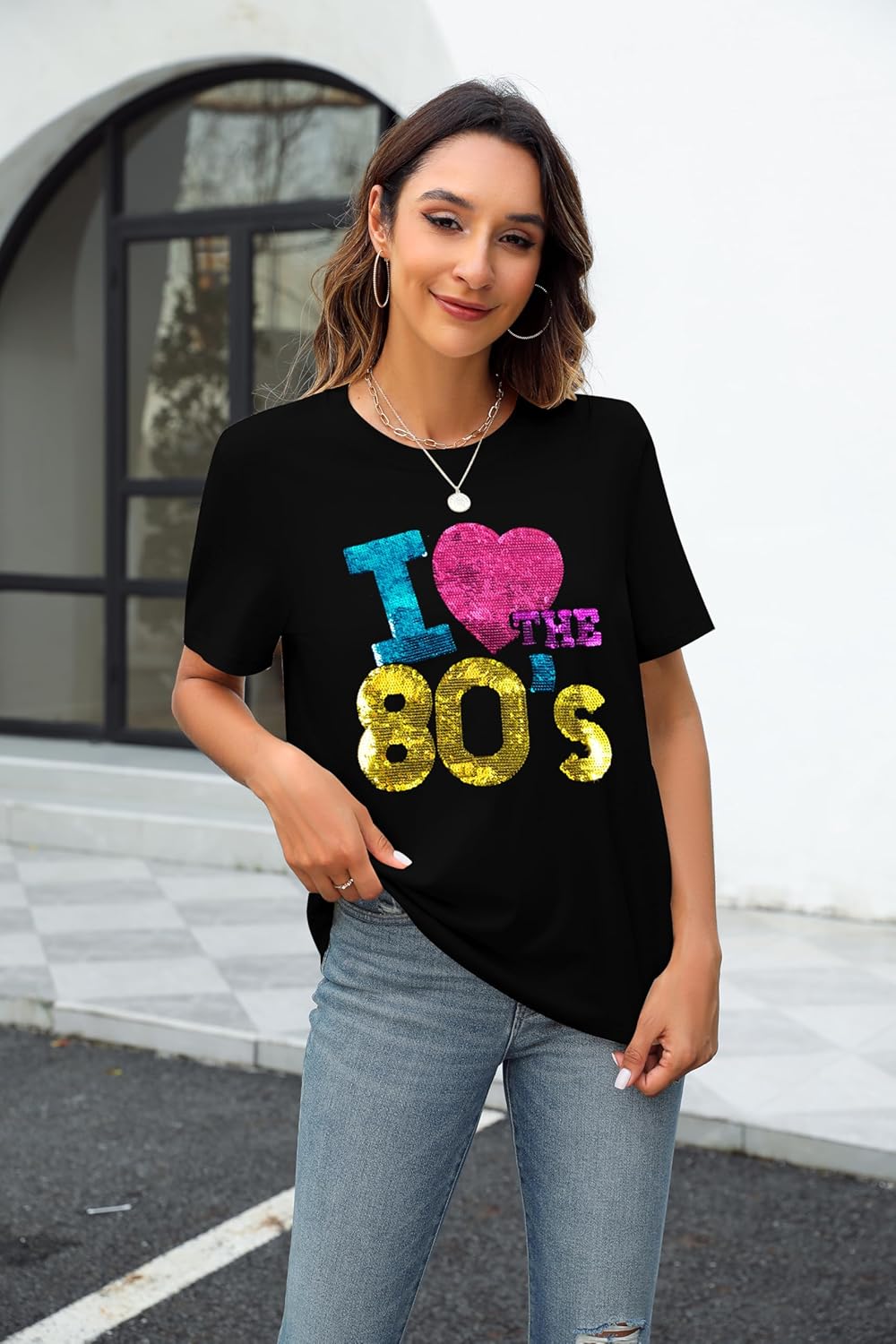 80s Shirts for Women 80s 90s Outfits Vintage Neon I Love The 80s Shirt Casual Birthday Party Gift Tee Tops quantity