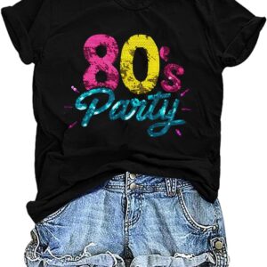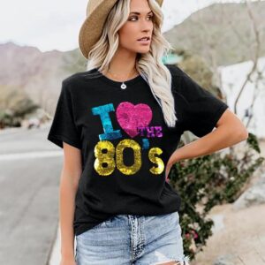 80s Shirts for Women 80s 90s Outfits Vintage Neon I Love The 80s Shirt Casual Birthday Party Gift Tee Tops