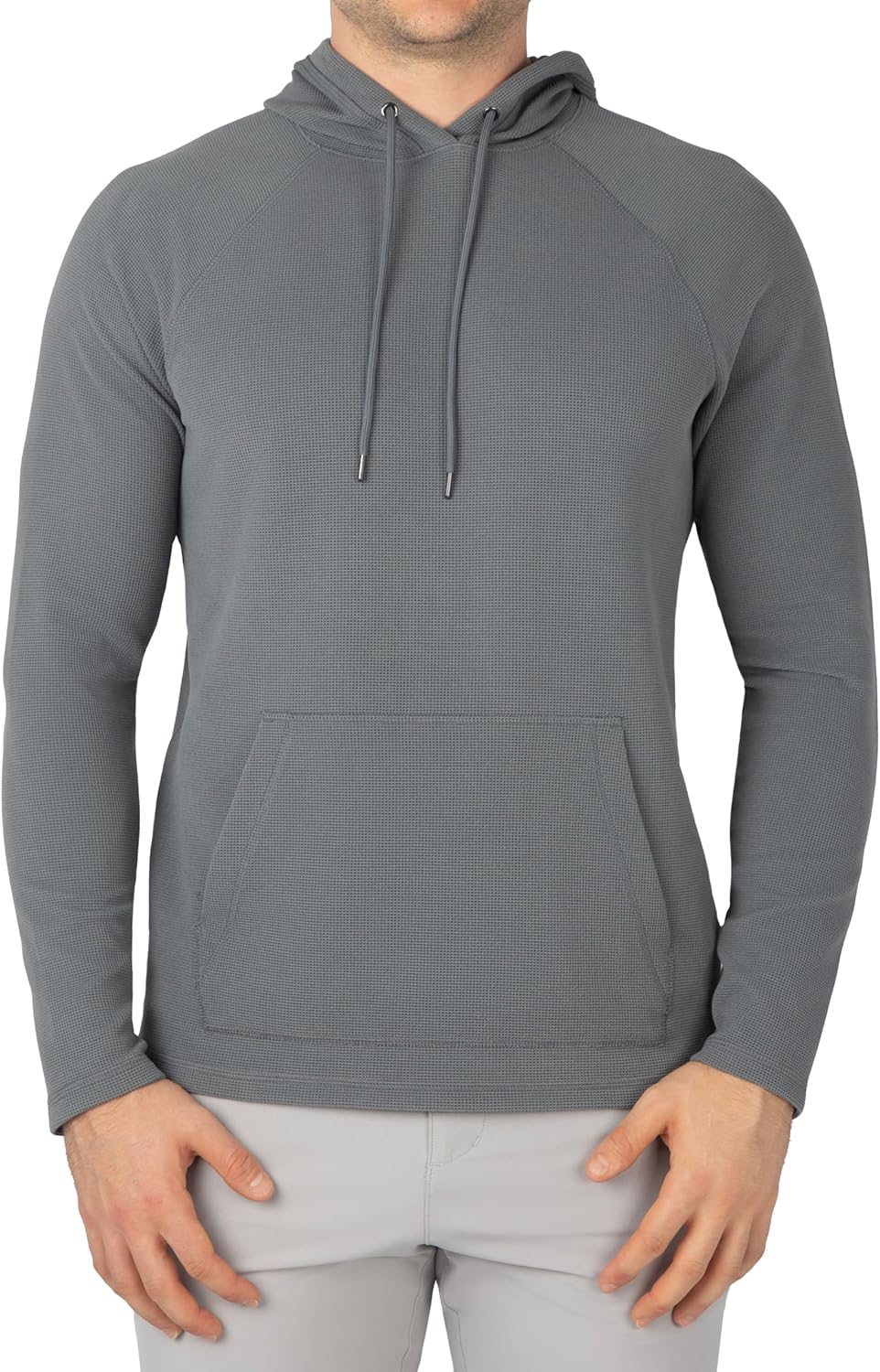 - VERSATILE DESIGN: Our Athletic Hoodie is meticulously crafted to redefine your athletic wardrobe. Engineered with a thoughtful blend of functionality, this hoodie features a classic crew neck design paired with a waffle fabric texture, setting it apart from the ordinary. The crew neck design offers timeless appeal and ensures a comfortable fit. Its versatile nature seamlessly transitions from gym sessions to casual outings, making it an essential staple in your active lifestyle wardrobe.