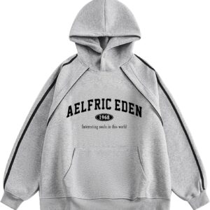 Aelfric Eden Oversized Hoodie Vintage Letter Print Sweatshirt Novelty Hooded Pullover With Pocket