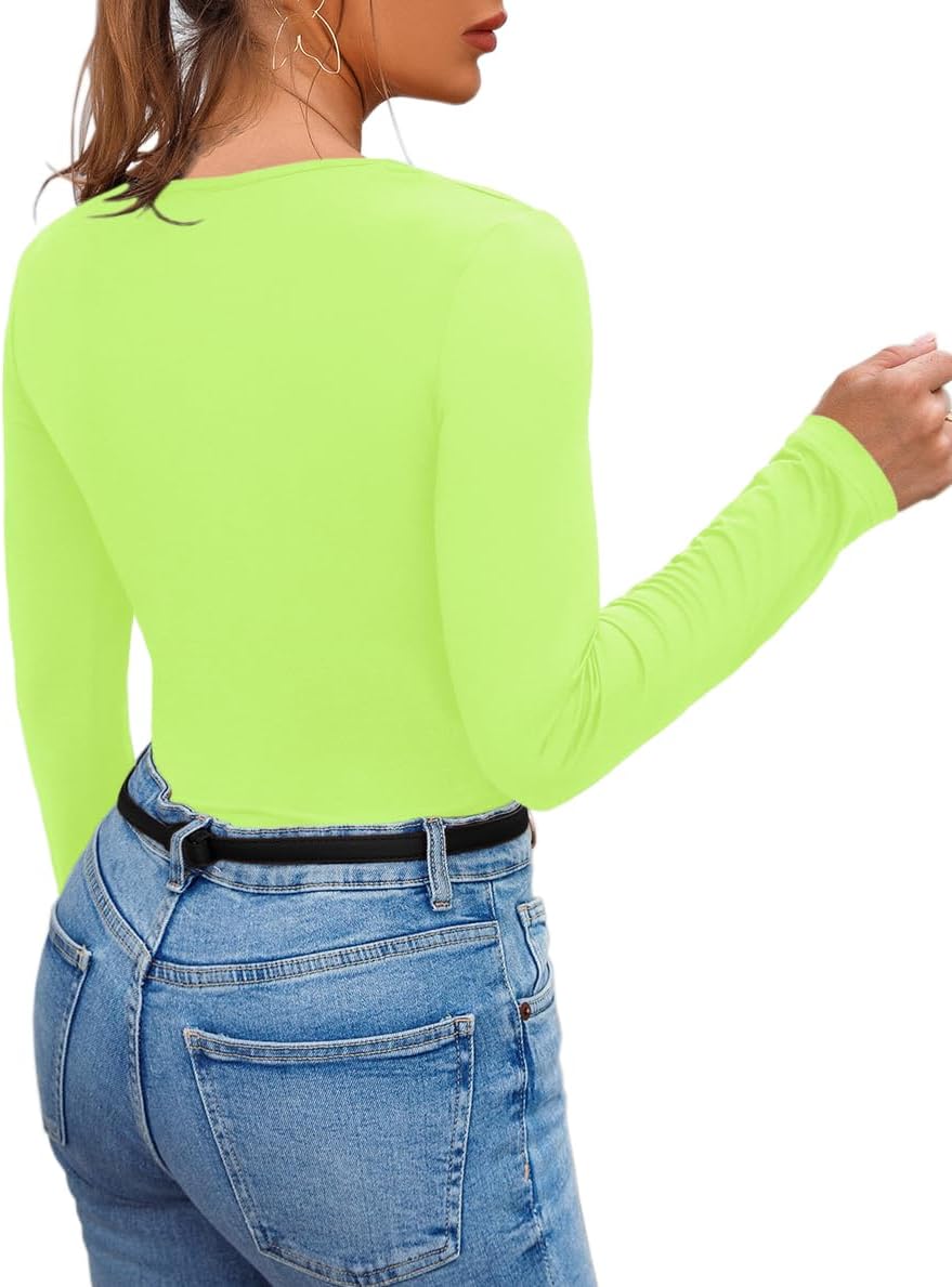 Afibi Women’s Cutout Tops Basic Long Sleeve Round Neck Slim Fit T-Shirts