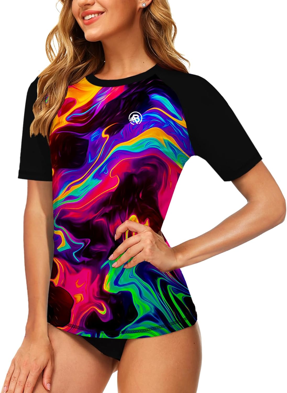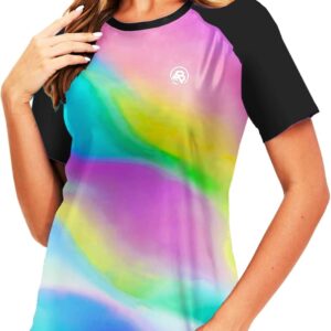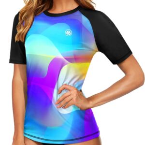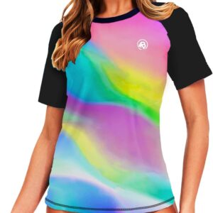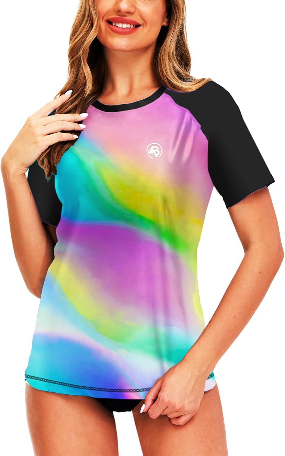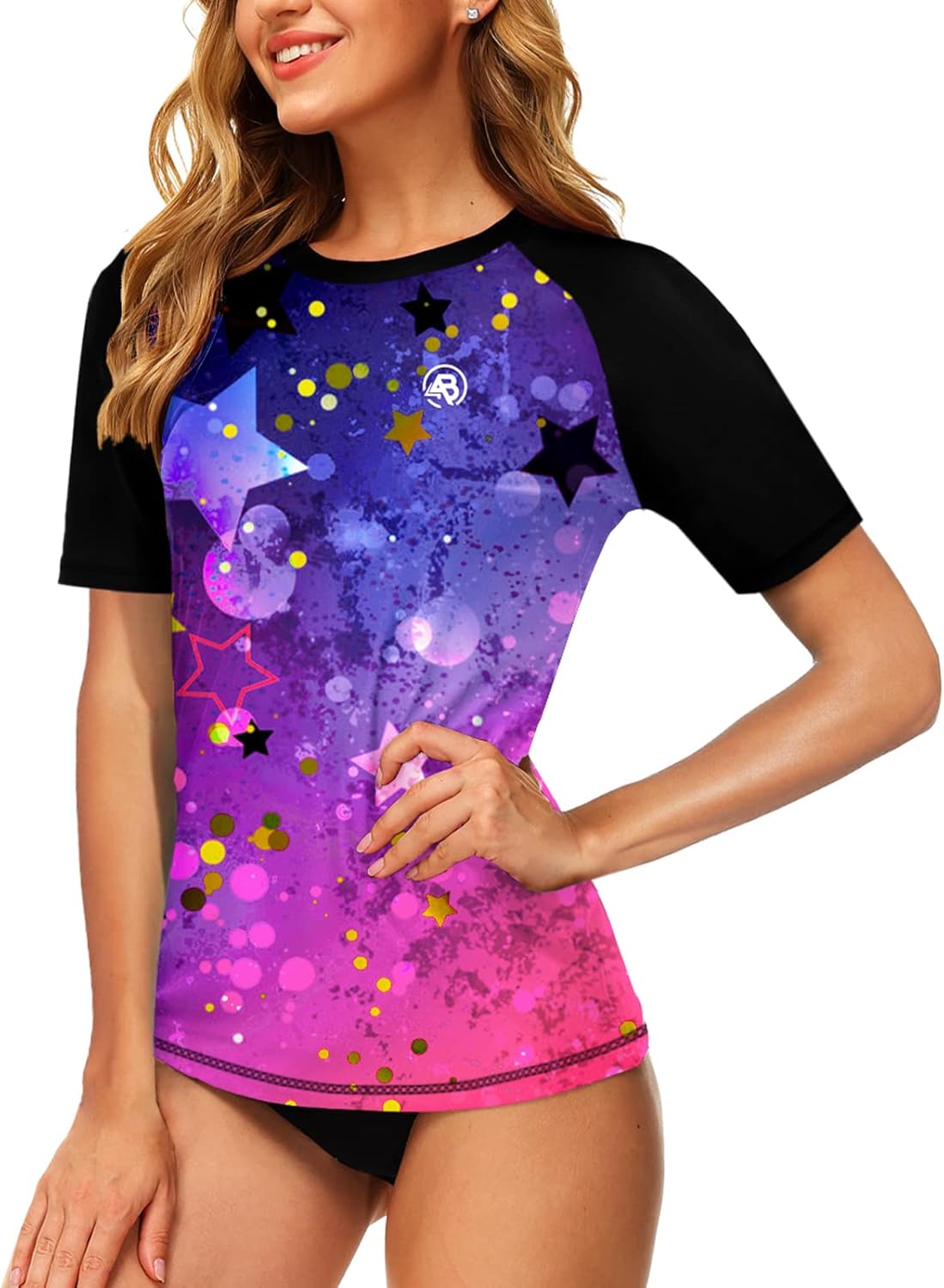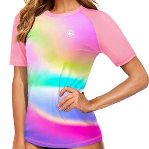 AOBUTE Women Short Sleeve Rash Guard Gradient Sun Protection Swim Shirts