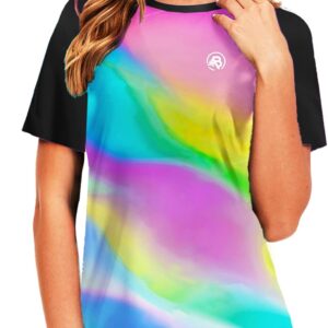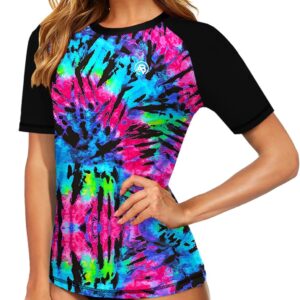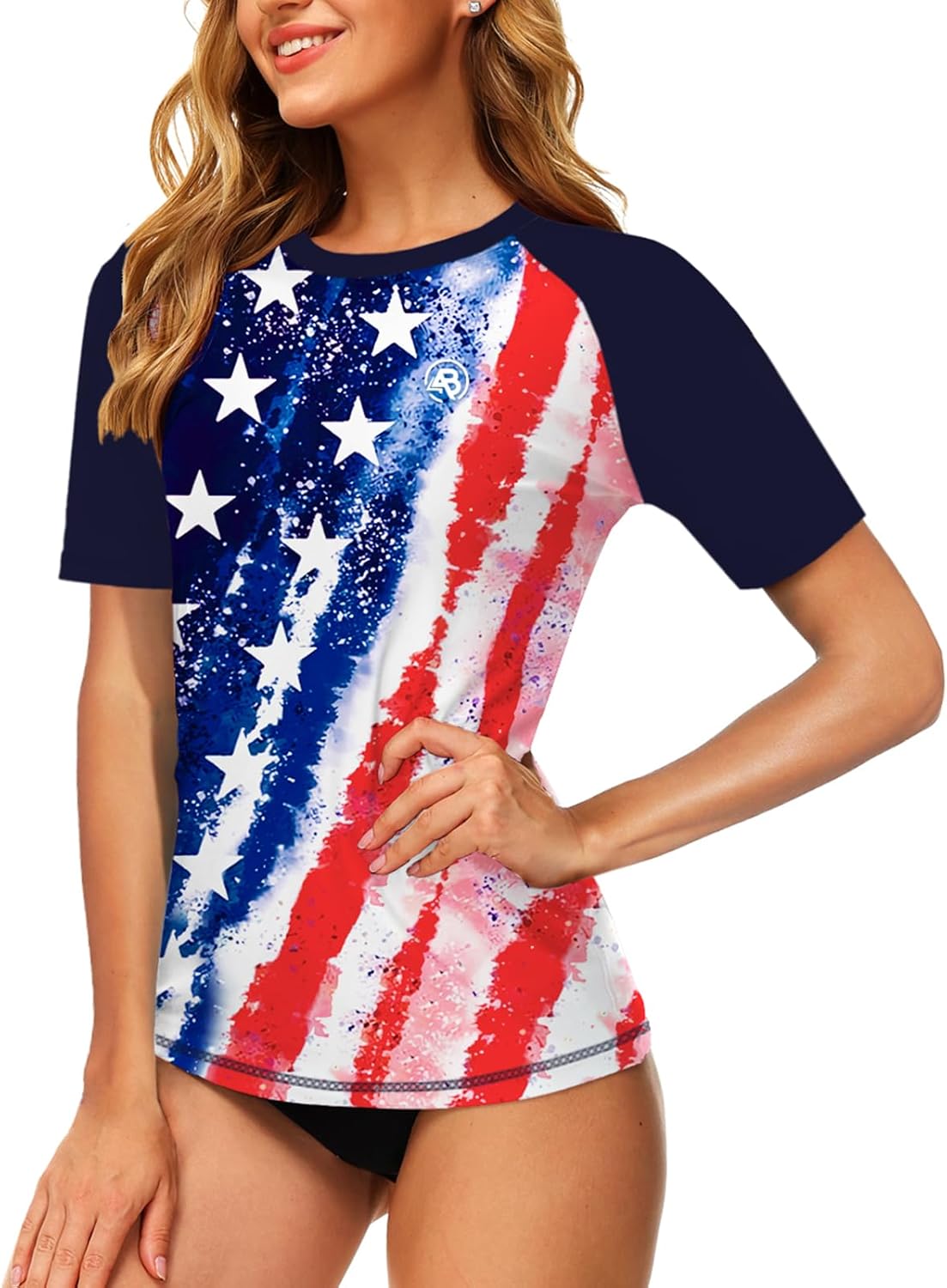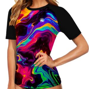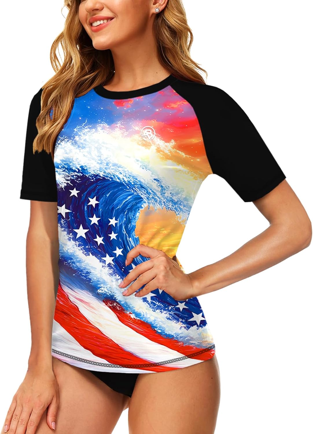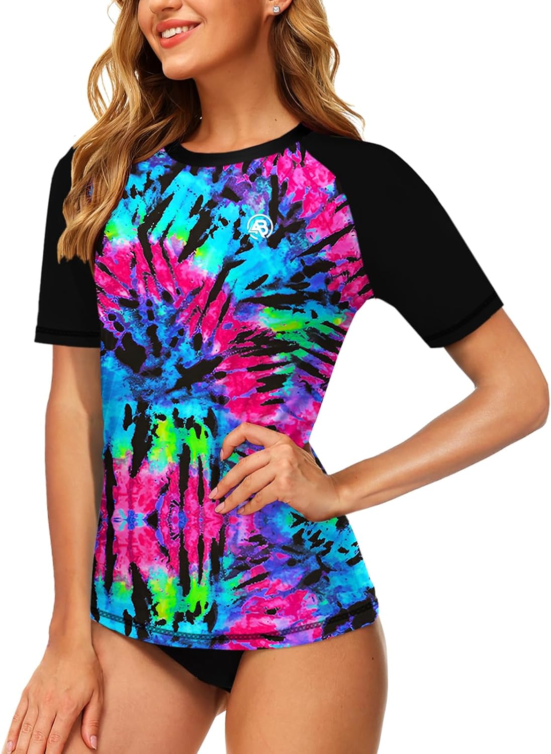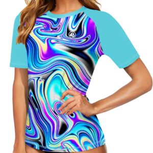 AOBUTE Women Short Sleeve Rash Guard Gradient Sun Protection Swim Shirts