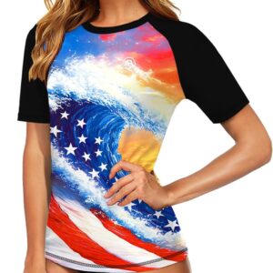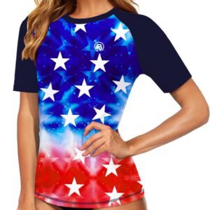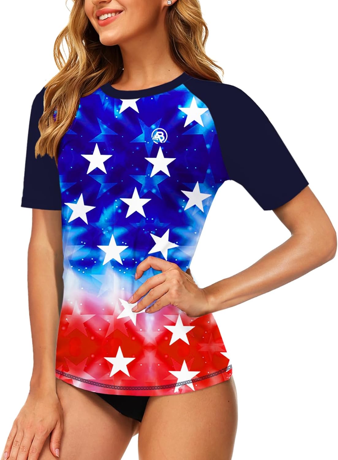 AOBUTE Women Short Sleeve Rash Guard Gradient Sun Protection Swim Shirts quantity