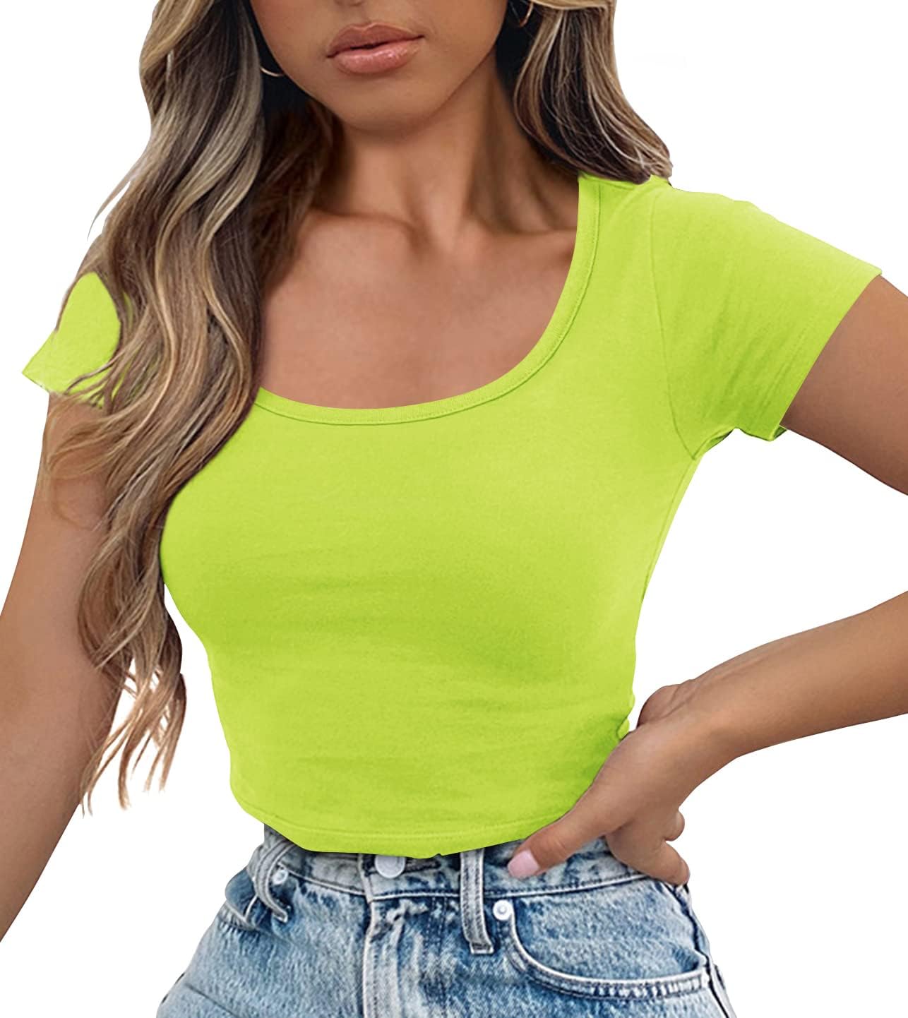 Simple basic crop tops is high stretchy fabric, soft, lightweight and comfortable to wear. This Short sleeve t-shirts is suitable for teen girls to going out and casual wear. You can paired it with a high waist skirt, shorts, jeans, pants and heels for stylish look.