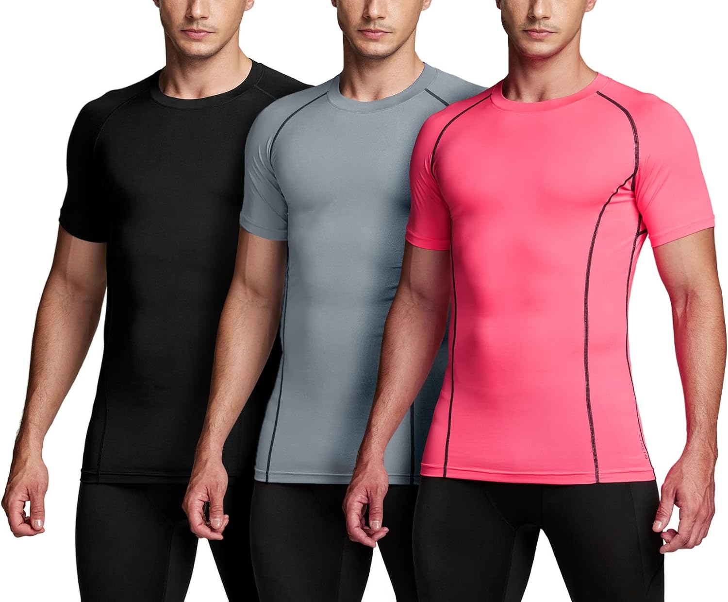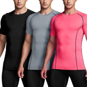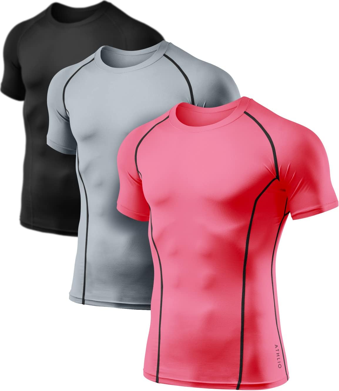 ATHLIO Men’s Cool Dry Short Sleeve Compression Shirts, Sports Baselayer T-Shirts Tops, Athletic Workout Shirt