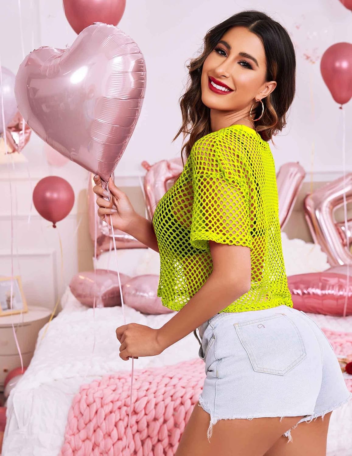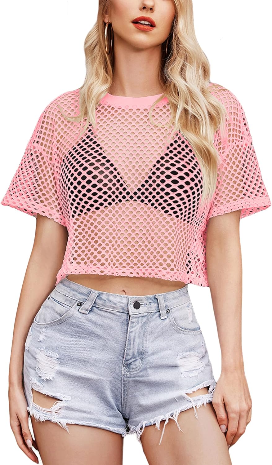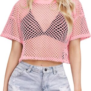 Avidlove Women’s Sheer Fishnet Top Sexy Short Sleeves Net T Shirts Crop Top