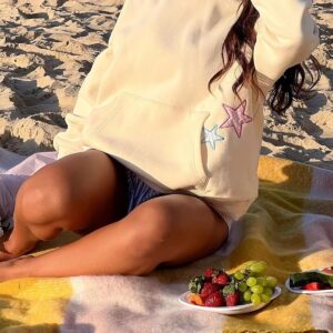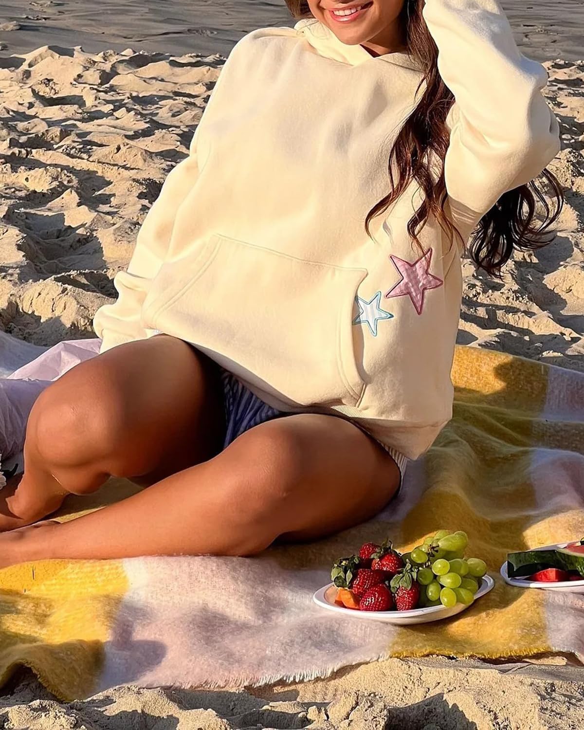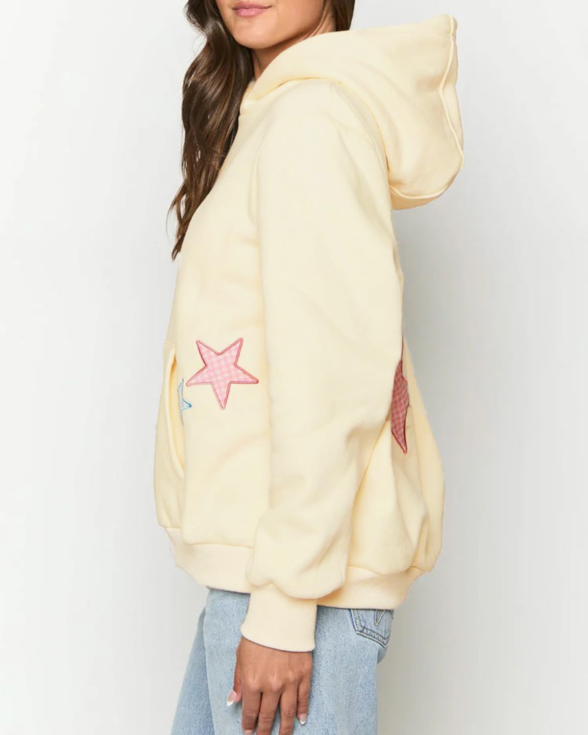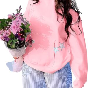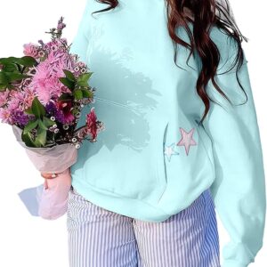 BAIGRAM Women Y2K Stars Graphic Oversized Fleece Hoodies Preppy Aesthetic Drop Shoulder Fall Outfits Girl Sweatshirt Pullover