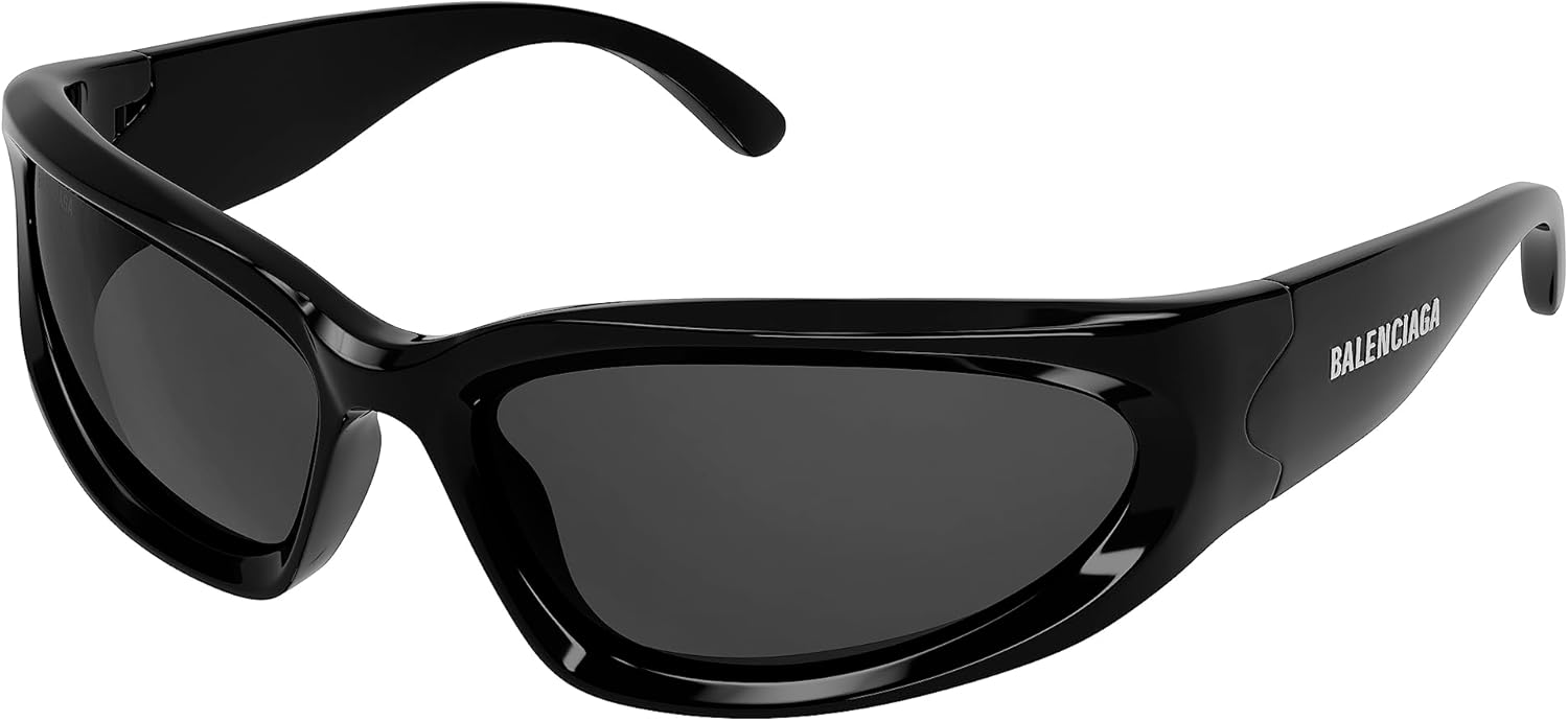 Balenciaga Sunglasses. Series number: BB0157S. Color code: 001. Shape: Wrap. Lens Width: 65 mm. Lens Bridge: 17 mm. Arm Length: 125 mm. 100% UV protection. Non-Polarized. Frame Material: Acetate. Frame Color: Black. Lenses Type: Grey. Rim Style: Full-Rim. UPC/EAN code: 889652342344. Balenciaga Grey Wrap Men’s Sunglasses BB0157S 001 65.