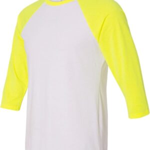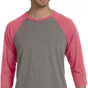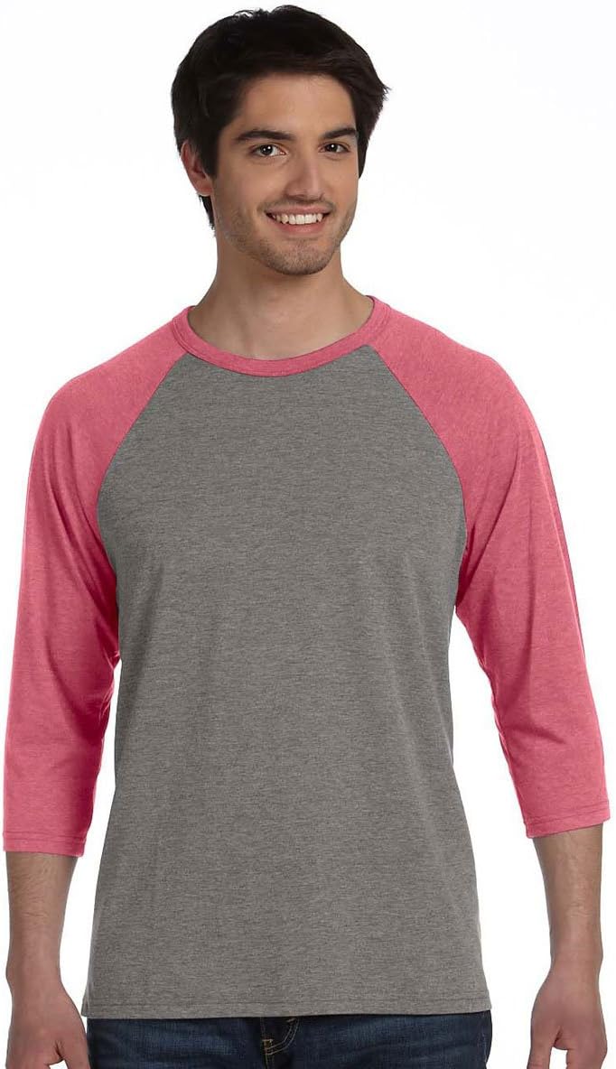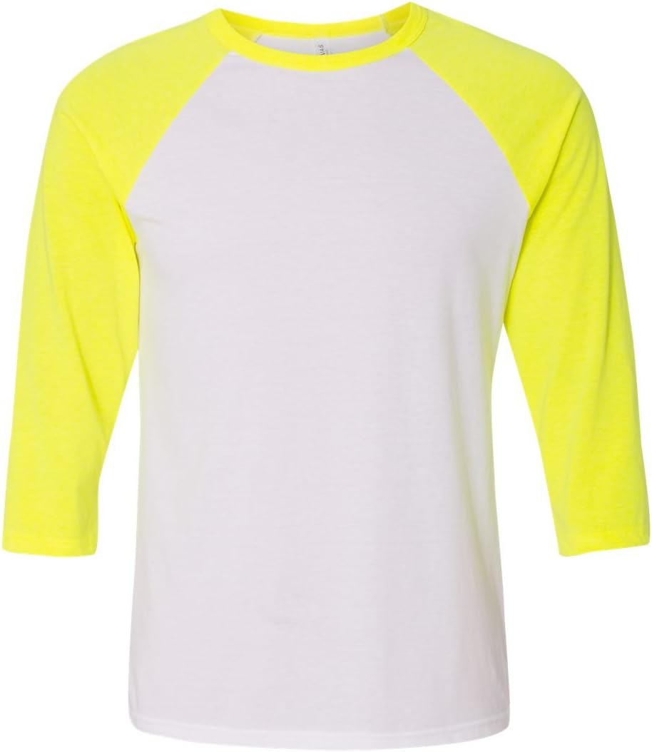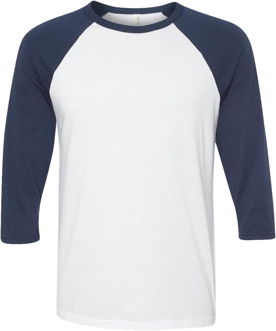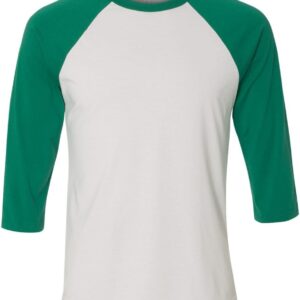 50% Polyester, 25% Airlume Combed Ringspun Cotton, 25% Rayon. Fabric: Tight Knit, Triblend. Design: Contrast. Sleeve-Type: 3/4 Sleeve, Contrast Sleeves, Raglan. Neckline: Contrast Collar, Crew Neck. Fabric Technology: Soft. Side Seams, Tearaway Label. Fit: Modern. 130gsm. Sustainability: Fair Labor Association, WRAP Certified. Suitable for: Printing. M: 41 in. XL: 49 in. S: 37 in. L: 45 in. XXL: 53 in. XS: 34 in.