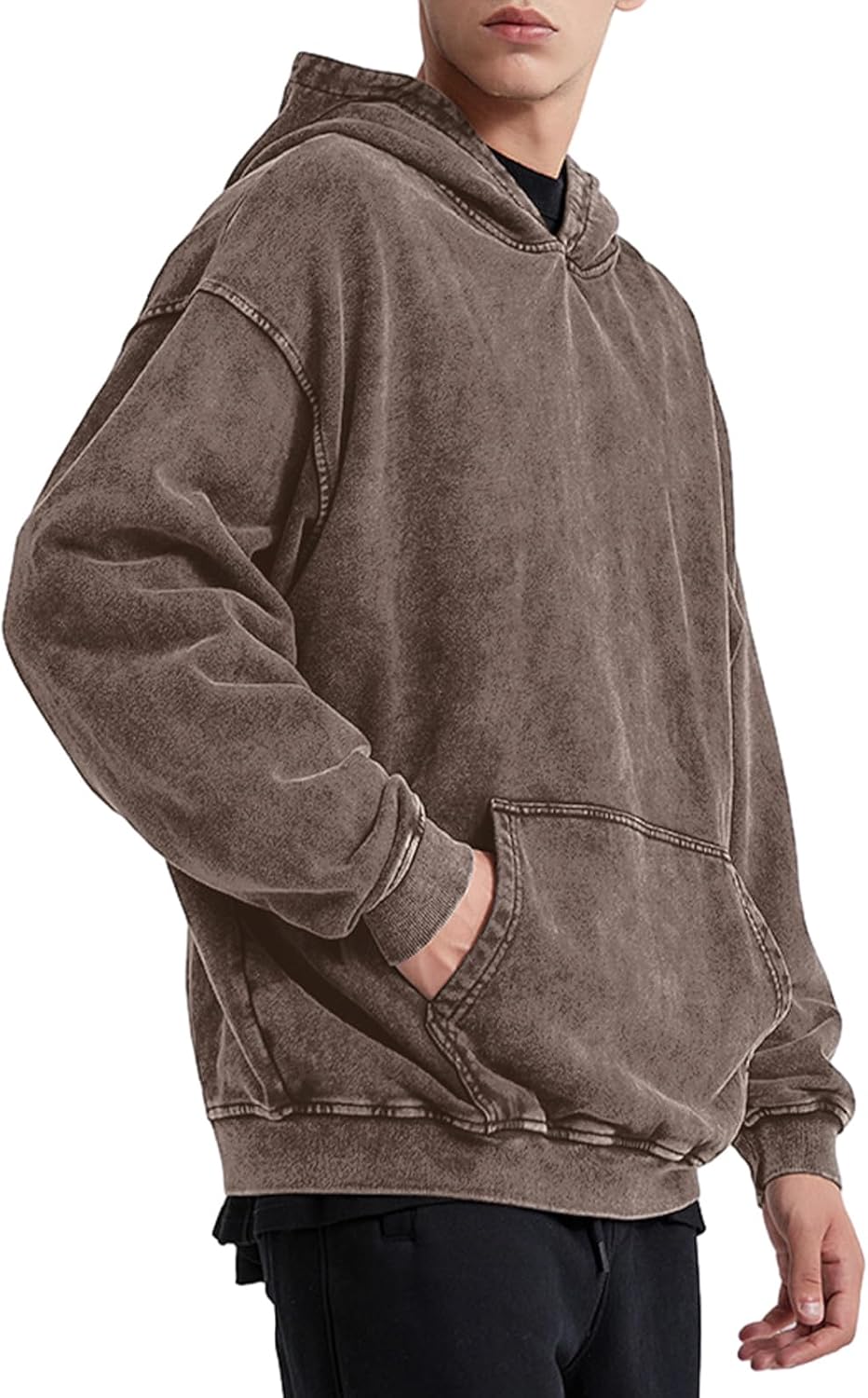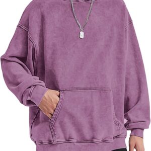 Bobeutou Unisex Acid Wash Hoodie Casual Athletic Oversized Sweatshirts