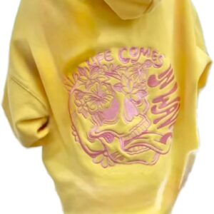 - [Size]: S, M, L with stretchy. Please refer to our size chart before your ordering. The long sleeve oversized y2k cute graphic embroidered aesthetic hoodies are white, gray, pink and so on.