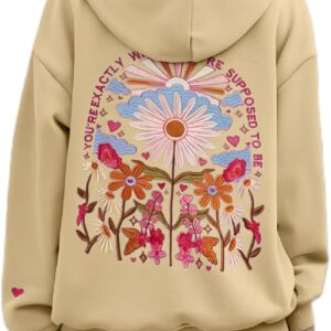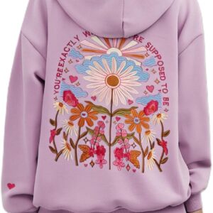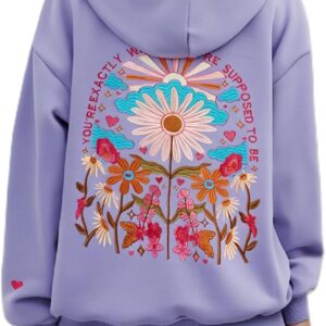 - [Features]: Vintage hoodie for teen girls, long sleeve, drop shoulder, crew neck, hooded neck, kangaroo pocket, ribbed cuffs and hem, oversized loose fit pullover top, casual retro floral graphic hooded sweatshirt, relaxed fairy flower print aesthetic tunic shirt, y2k fashion trends baggy fall winter going out streetwear for e girls.