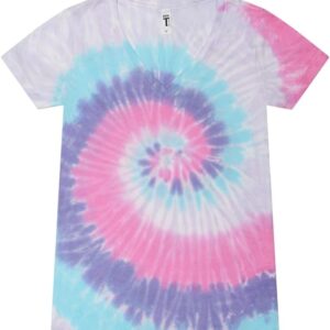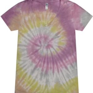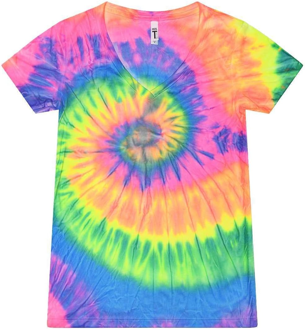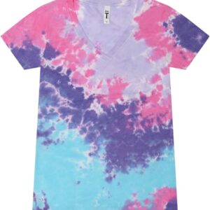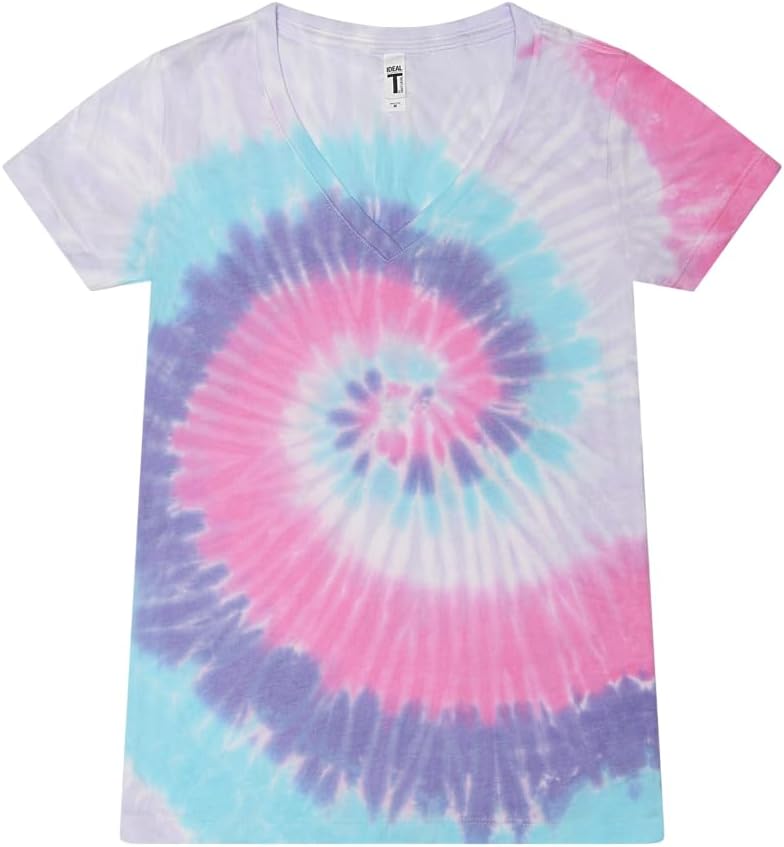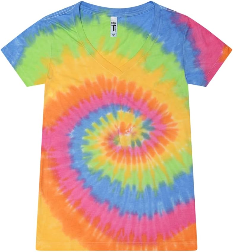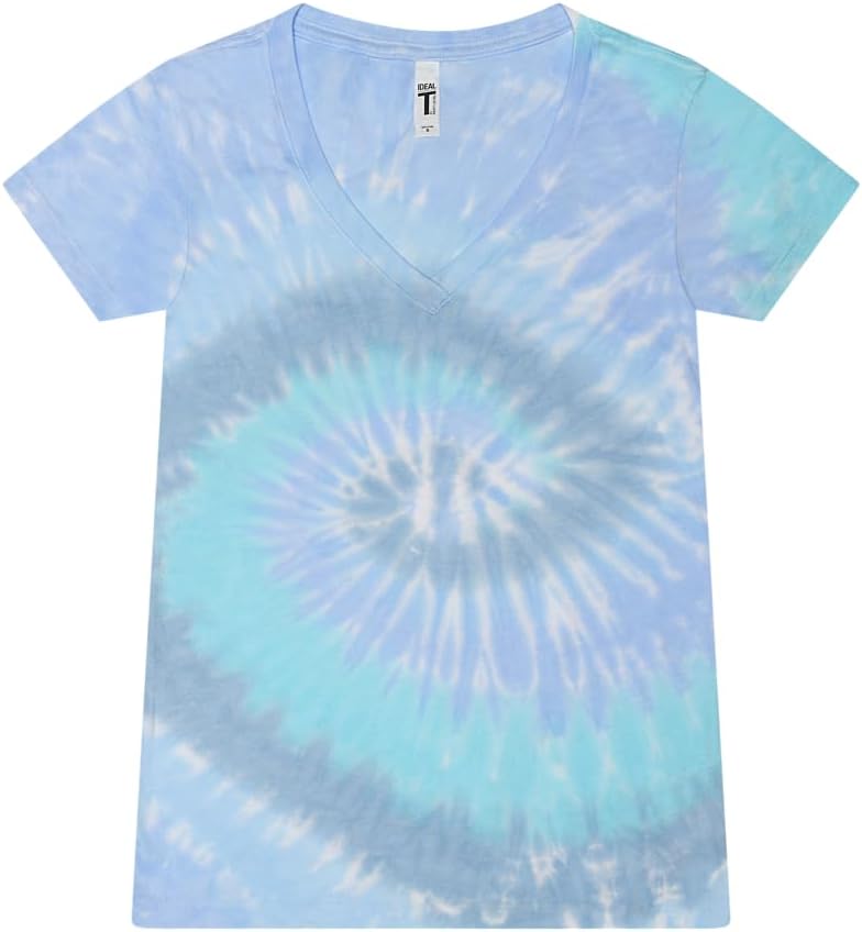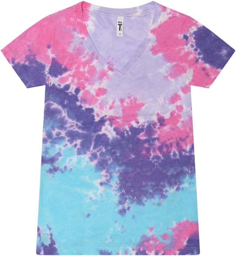 Colortone Slim Fit Short Sleeve V-Neck Tie Dye T-Shirts for Women – Womens Tie Dye Tops for Summer