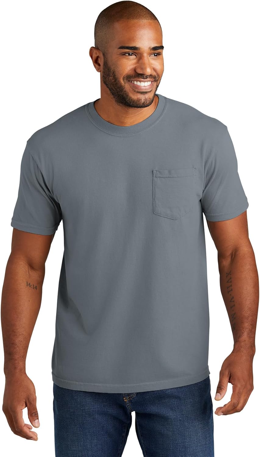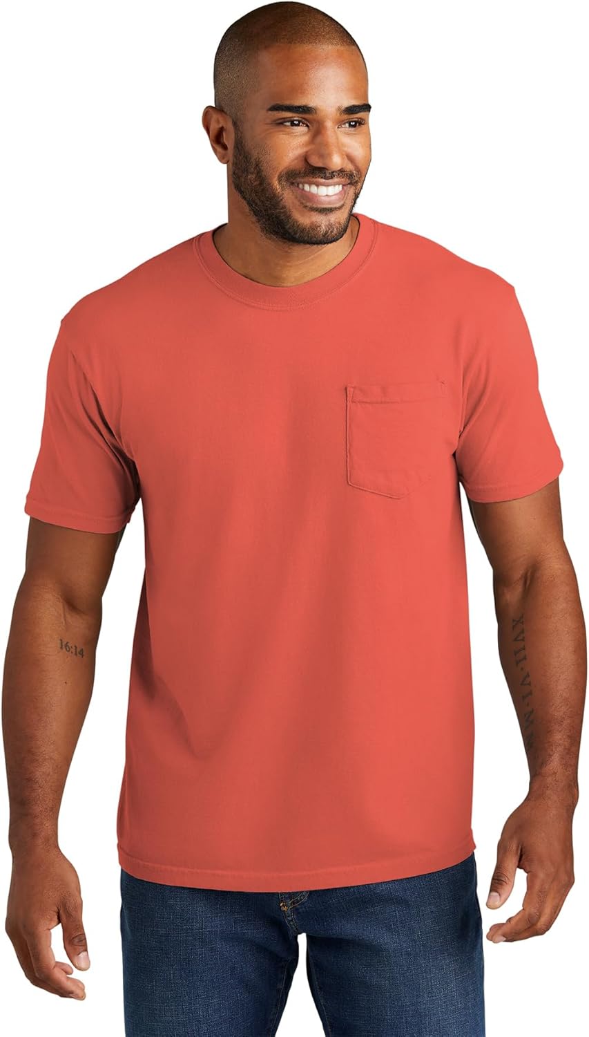 The Comfort Colors 6030 adult heavyweight short sleeve pocket tee gives you ultimate softness, laid-back ease and a vintage vibe that’s been 40 years in the making. It’s crafted with 100% ring spun cotton, garment-dyed for an authentic worn-in look. Take your pick of nature-inspired colors – and experience how a tee shirt is supposed to feel.