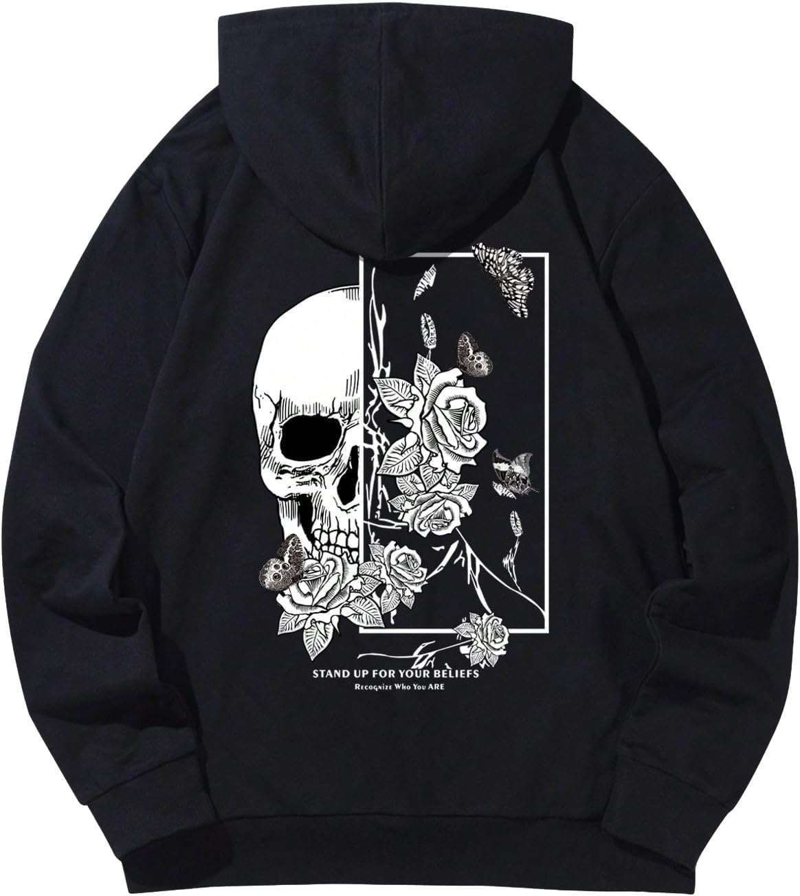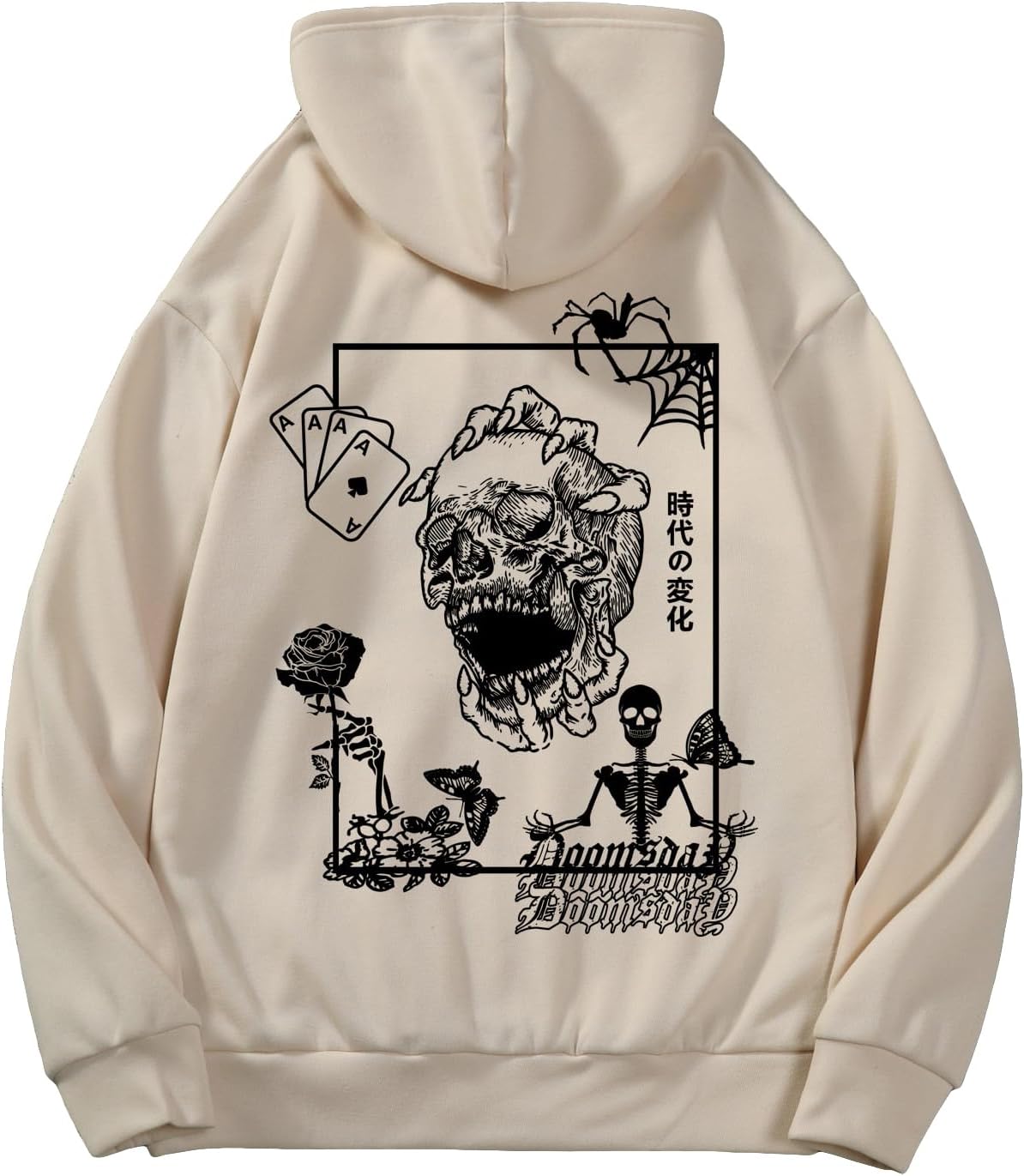COZYEASE Men’s Y2K Graphic Hoodie Drawstring Vintage Sweatshirt Long Sleeve Letter Streetwear with Pocket