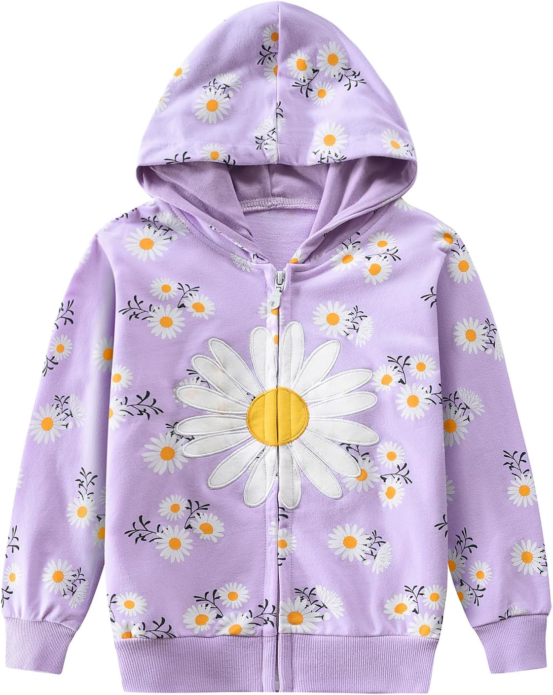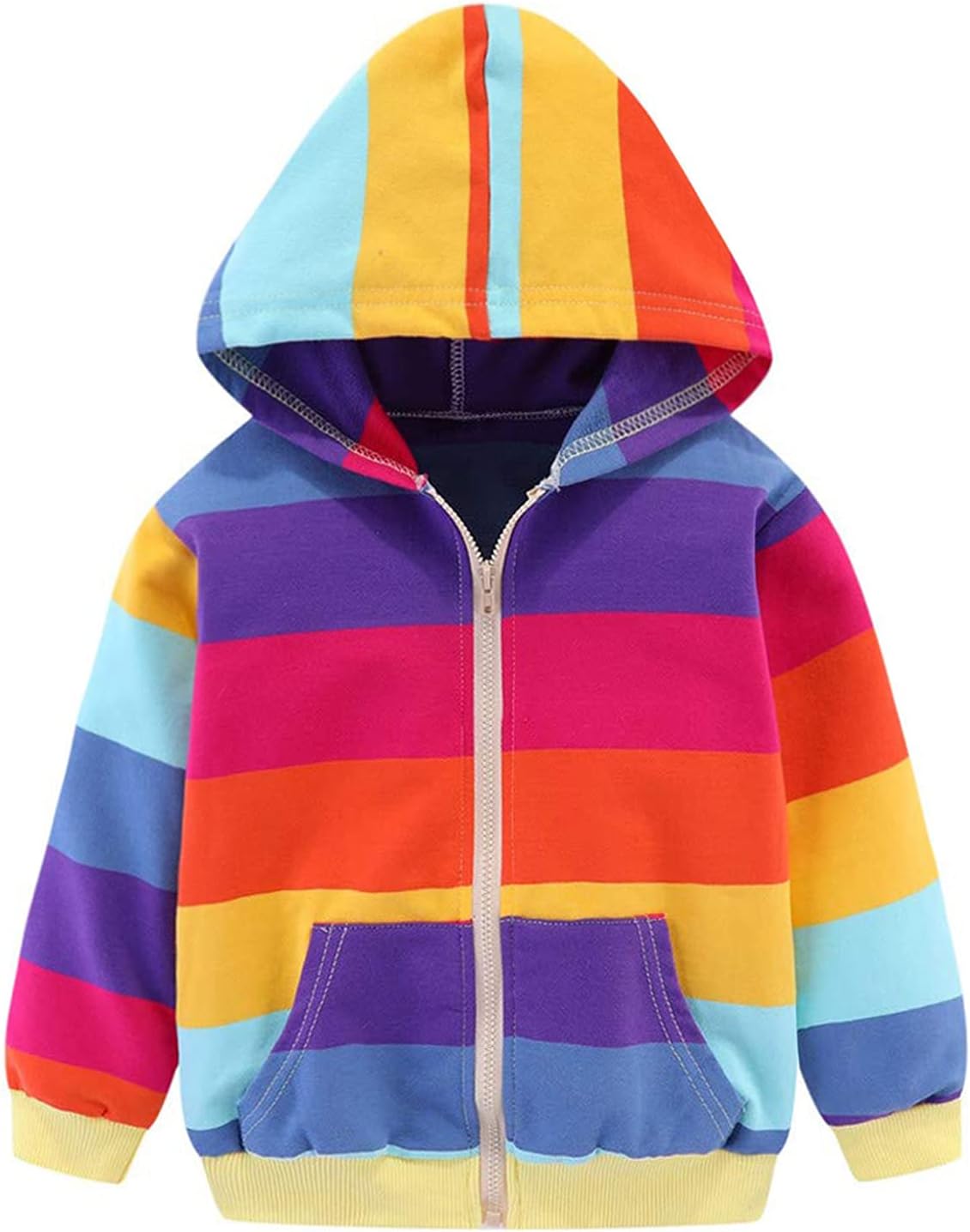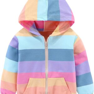 Toddler Girls Cotton Jacket with Pockets Long Sleeve Hooded Shirts Rainbow Hoodie for Little Kids