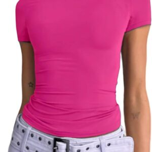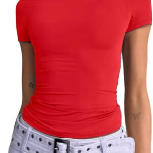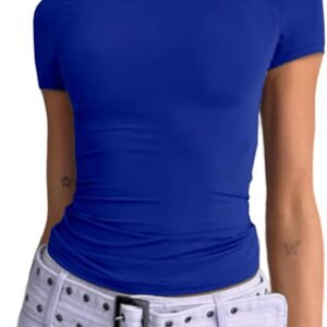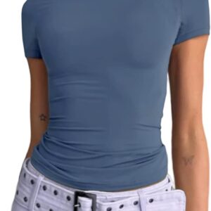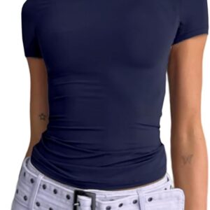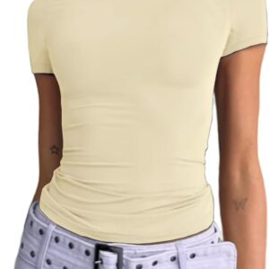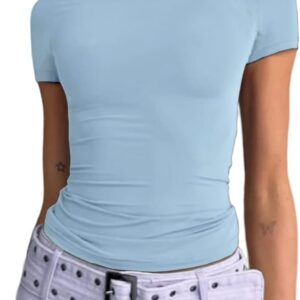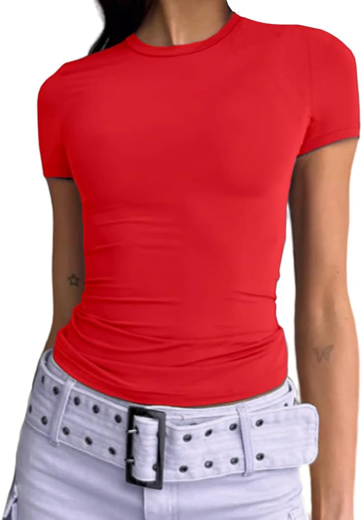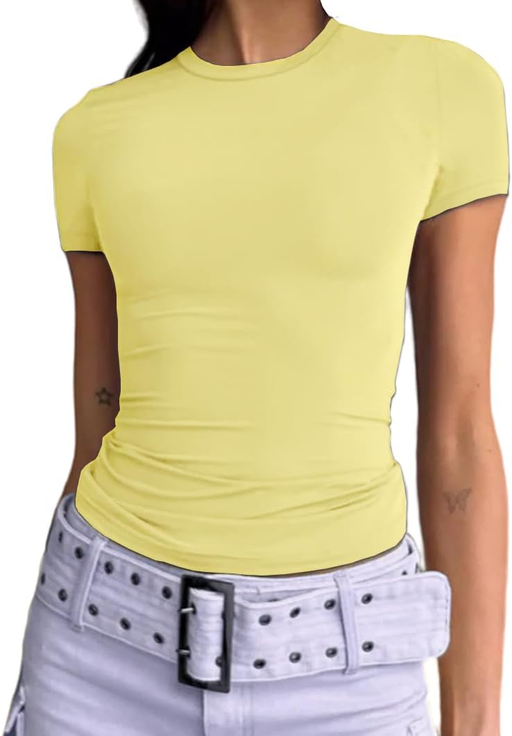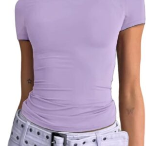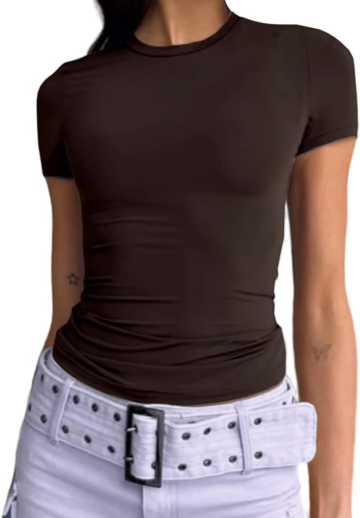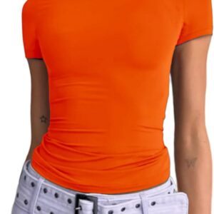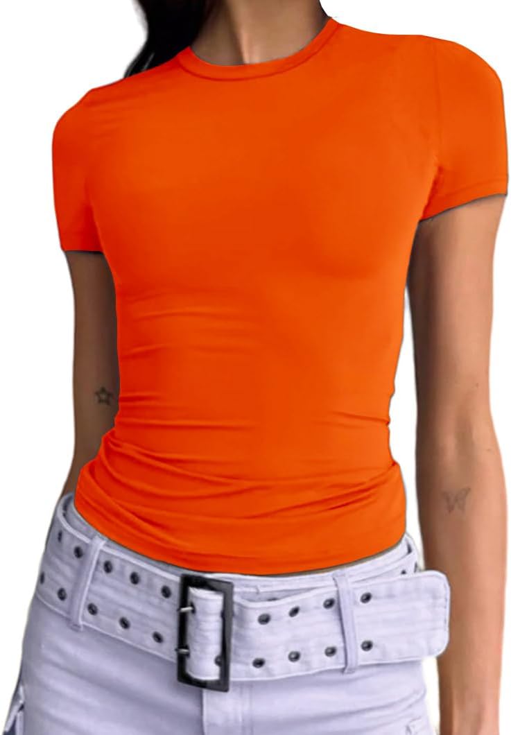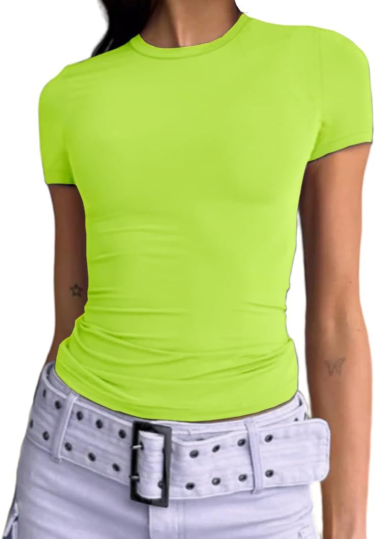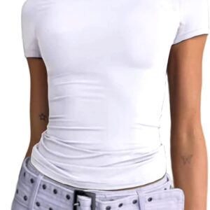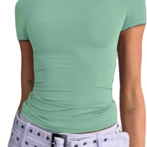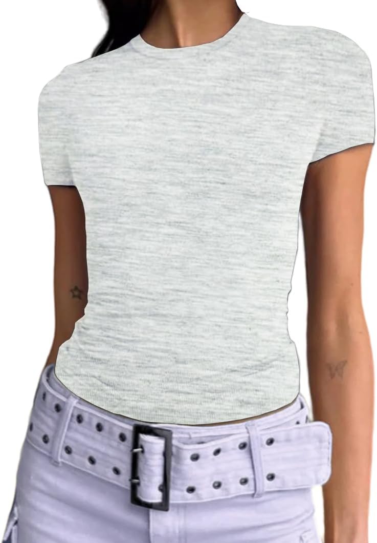 Dwnval Women Sexy Basic Summer Short Sleeve Crewneck Slim Fit Cute Crop T Shirt