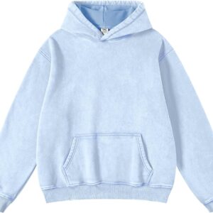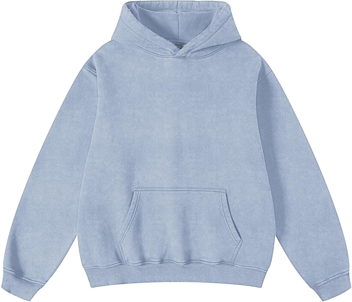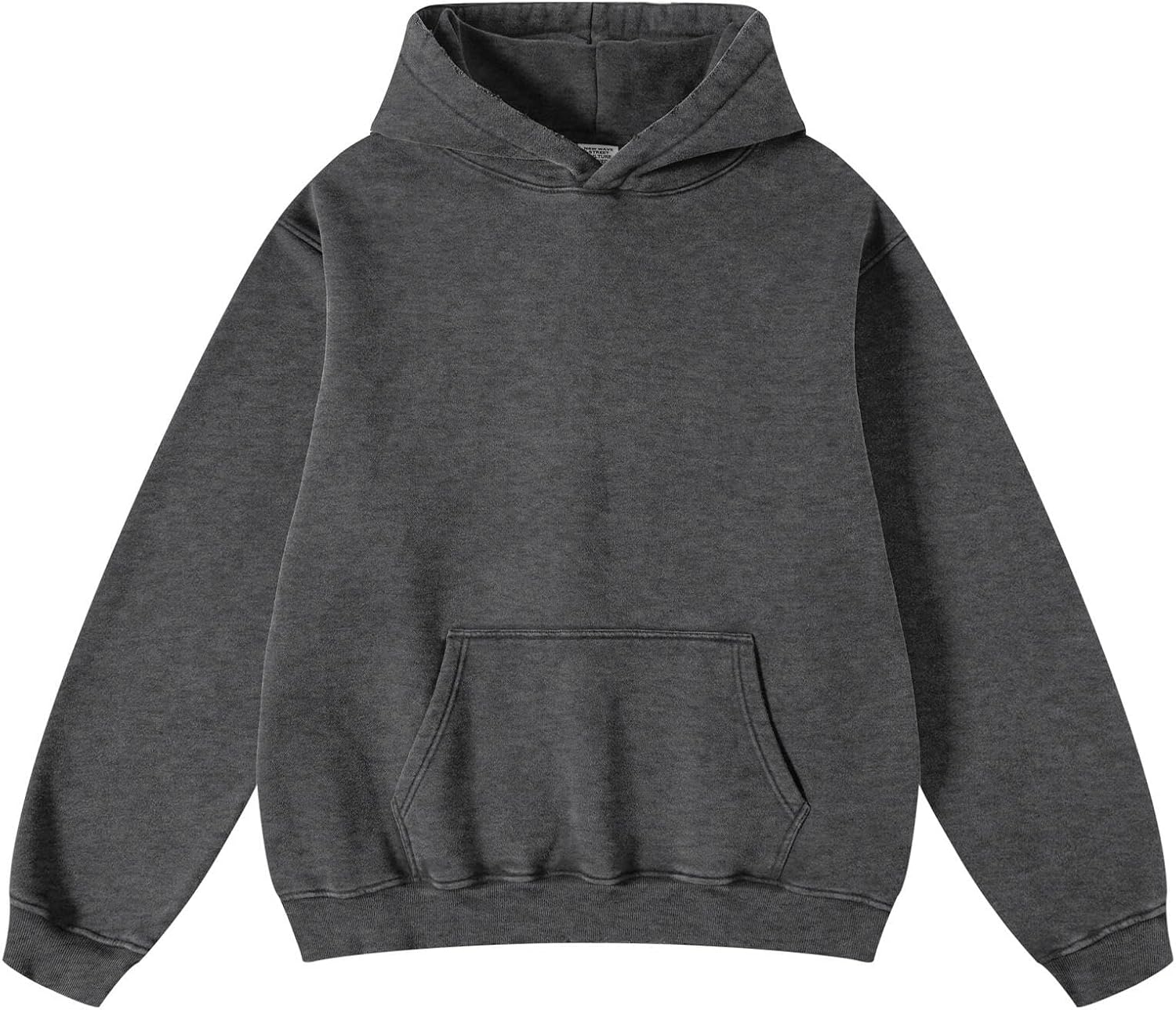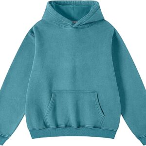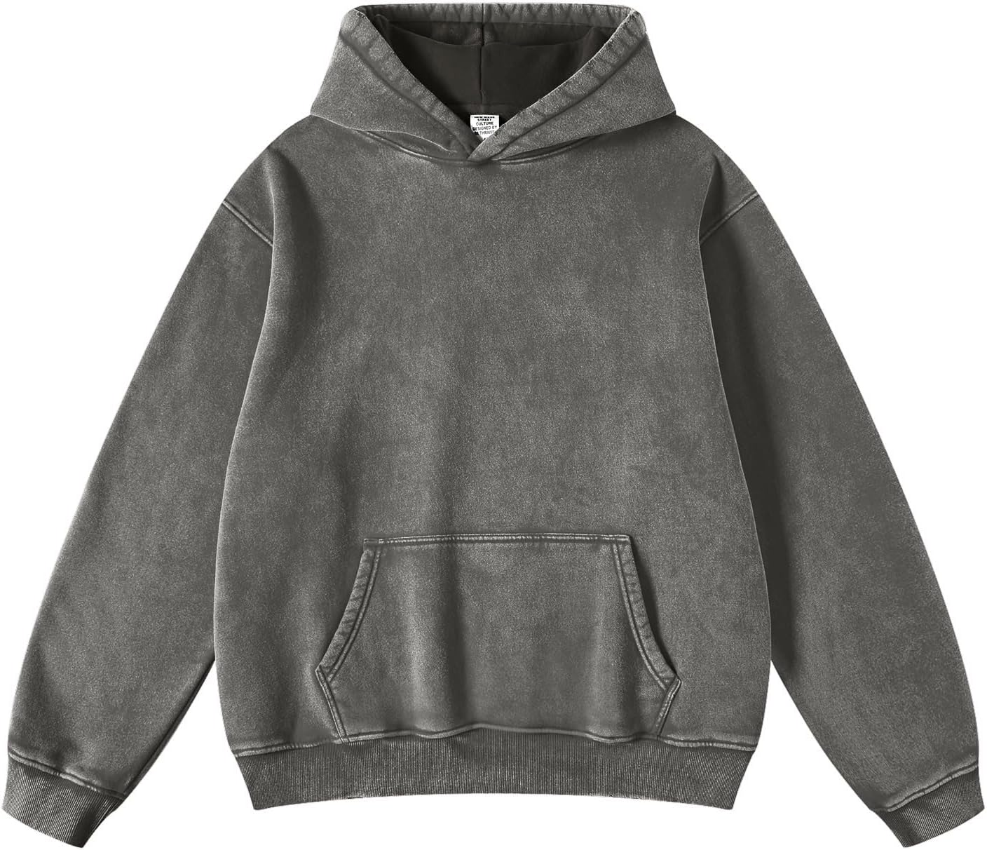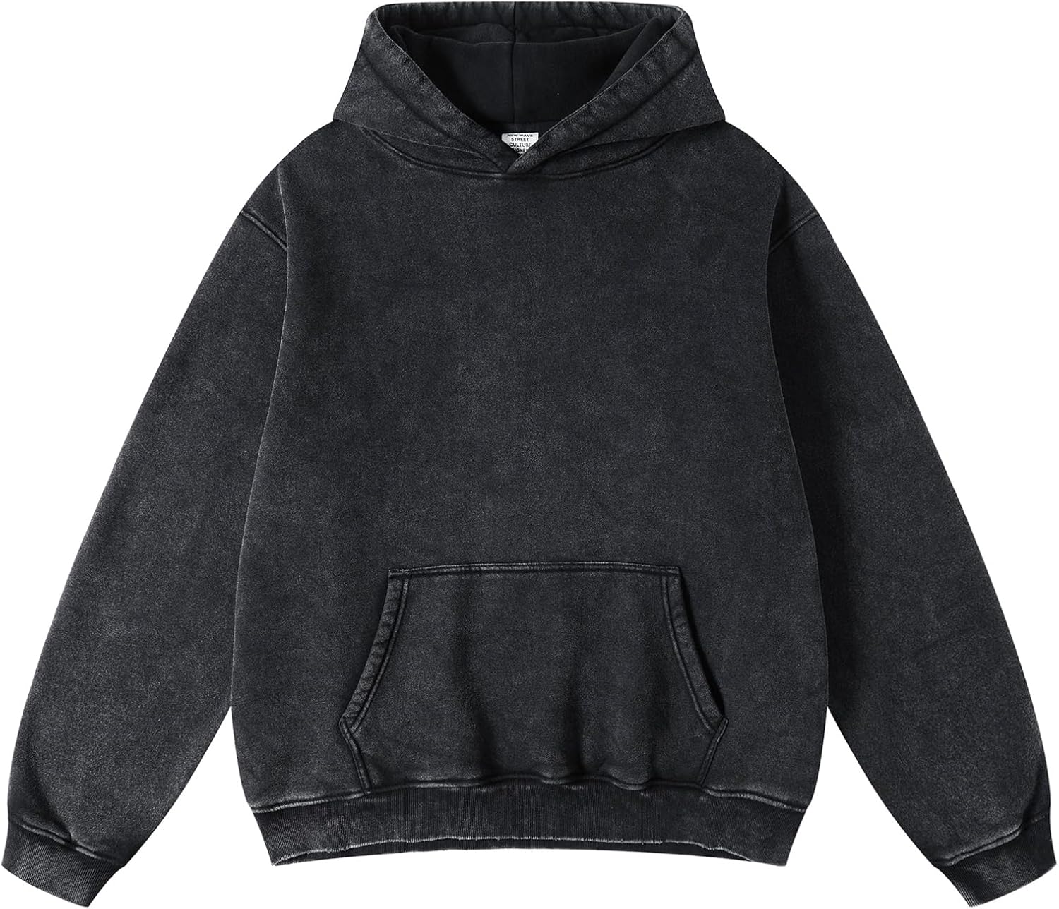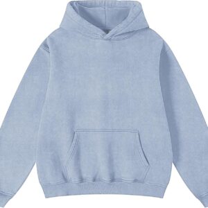 FAIABLE Mens Hoodies Oversized Unisex Acid Wash Hoodie Heavyweight Fleece Vintage Cotton Sweatshirt Men Women Streetwear