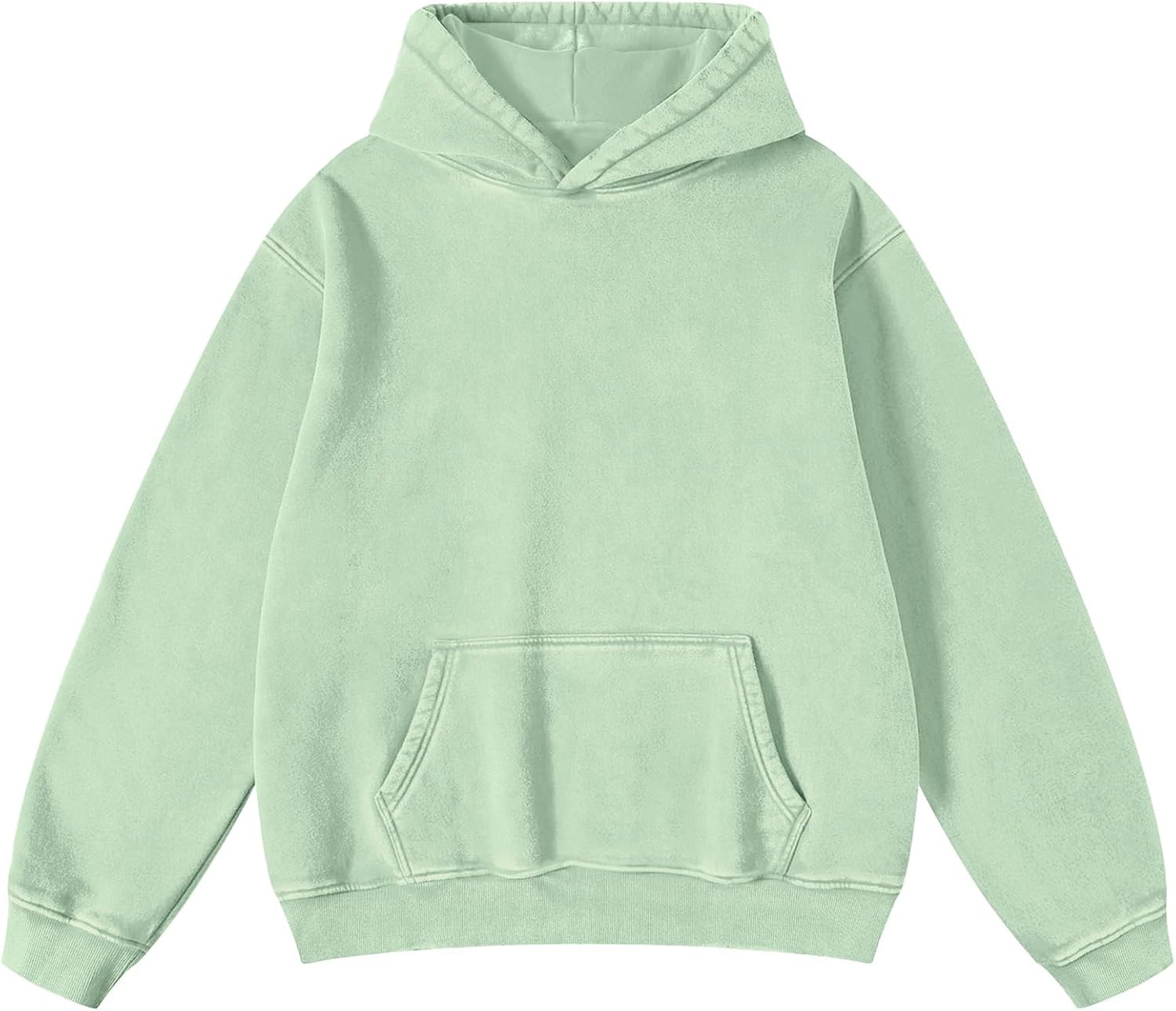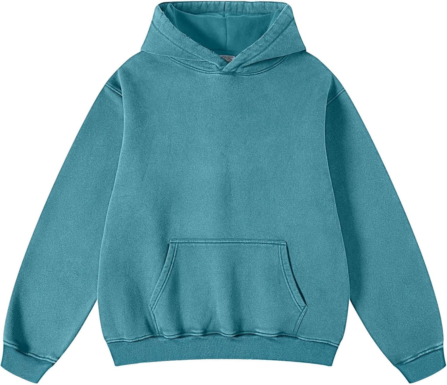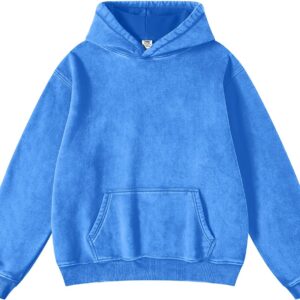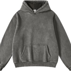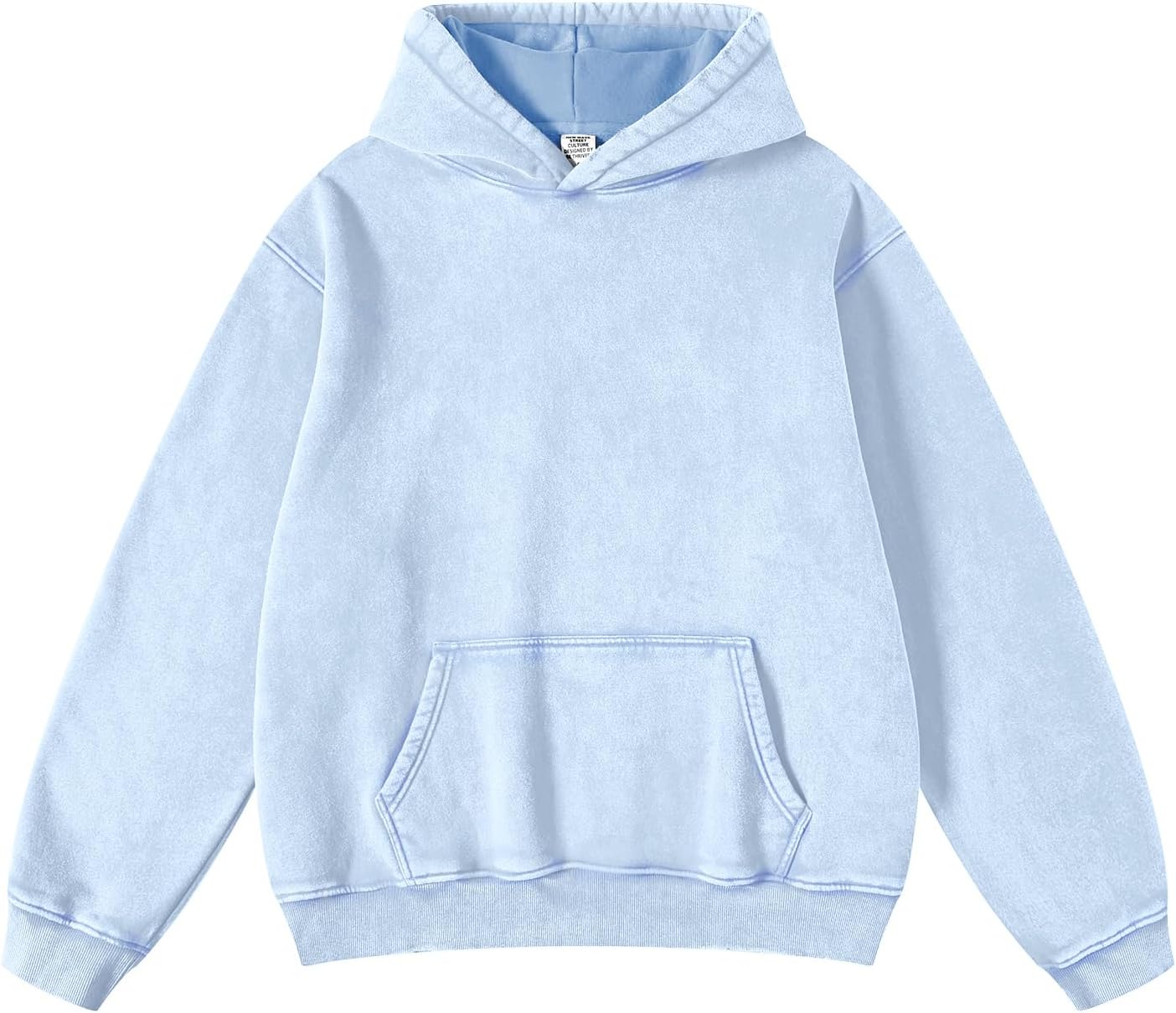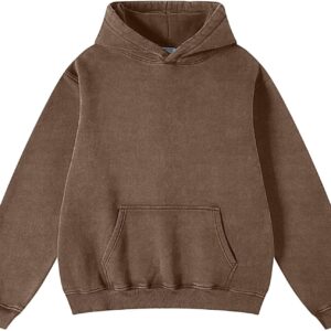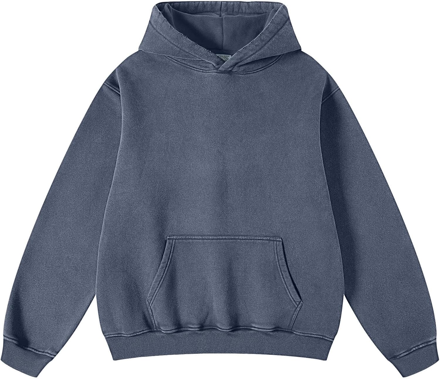 FAIABLE Mens Hoodies Oversized Unisex Acid Wash Hoodie Heavyweight Fleece Vintage Cotton Sweatshirt Men Women Streetwear