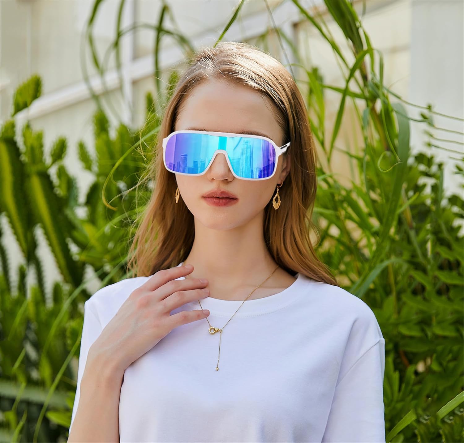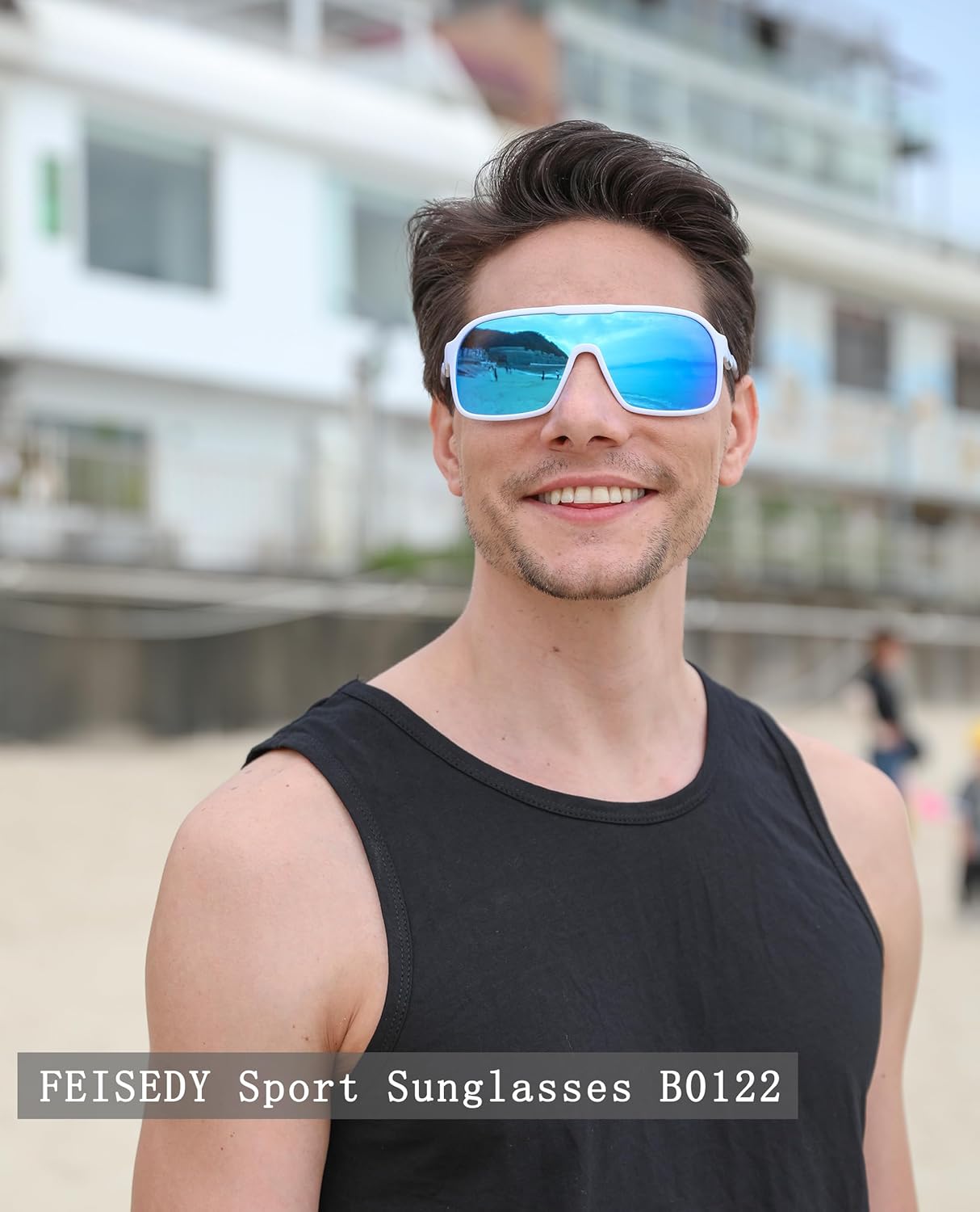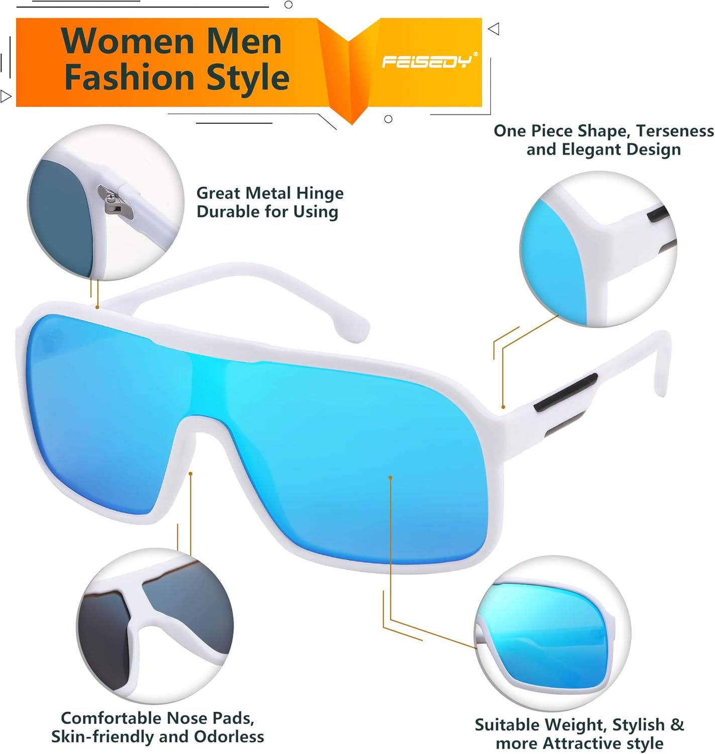 FEISEDY Fashion Polarized Sunglasses Oversized One Piece Reflective Lens Sports Sun Glasses B0122