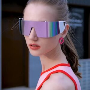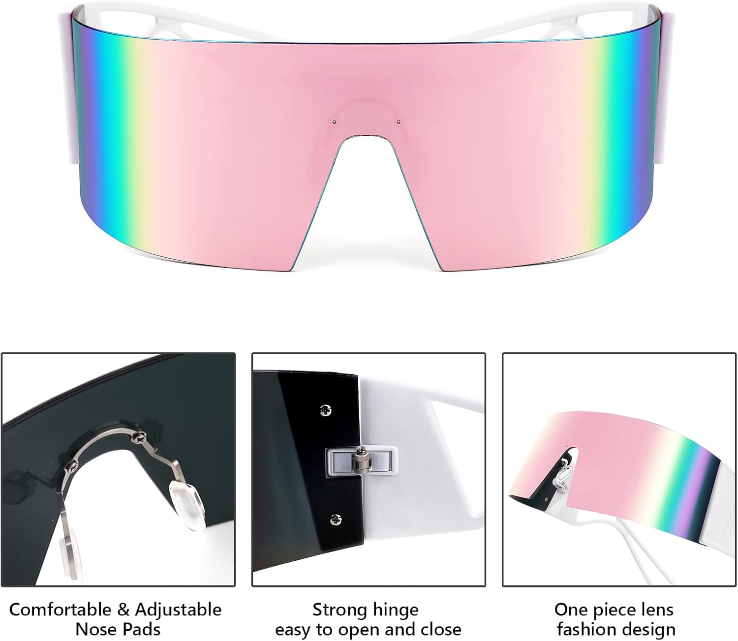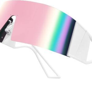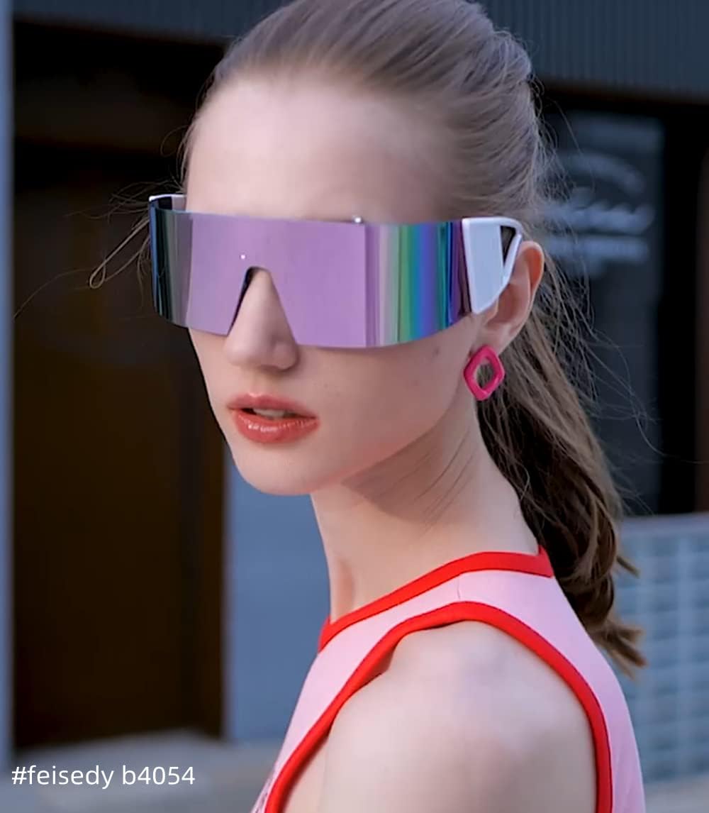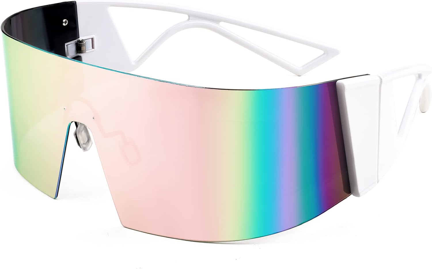 FEISEDY Oversized Flat Top Futuristic Wrap Sunglasses One Piece Goggles for Women Men Fashion Shades B4054