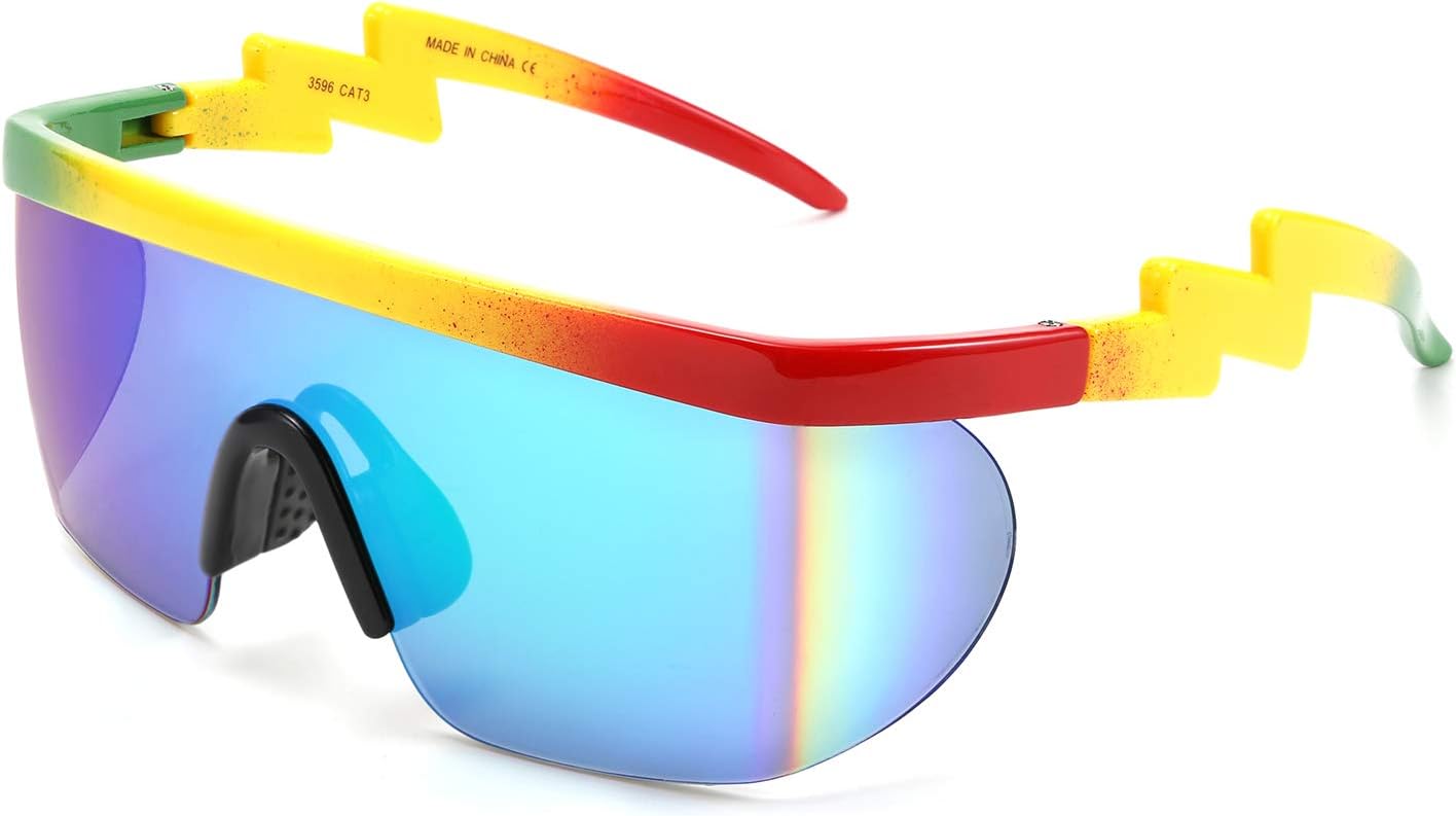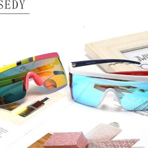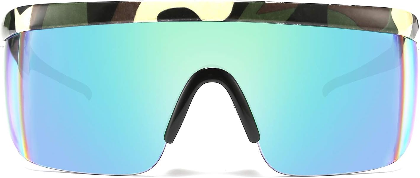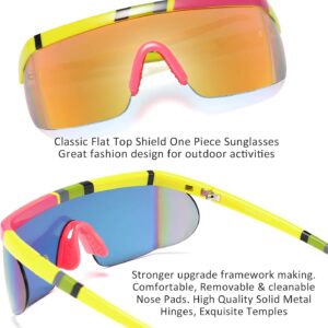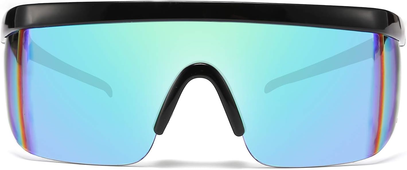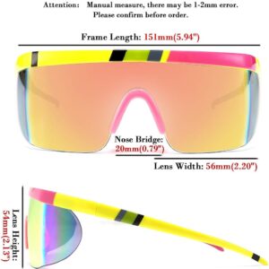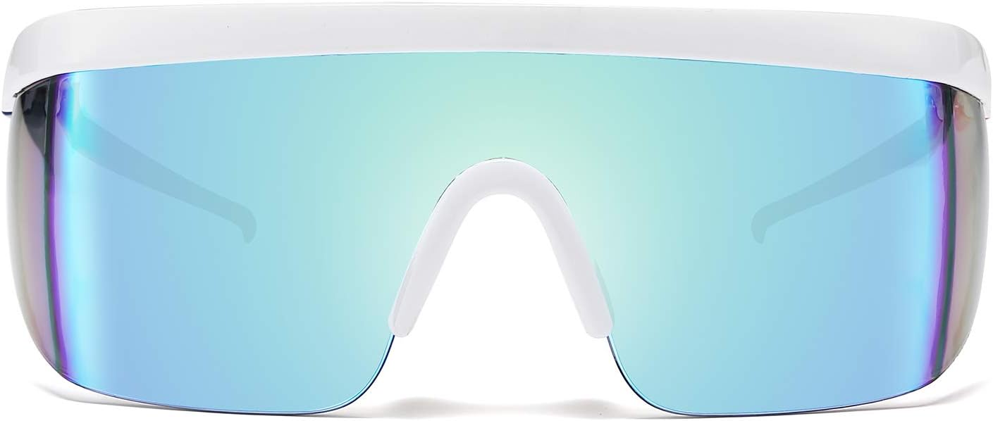 FEISEDY Oversized Mirror Shield Sport 80s Sunglasses Ski Goggles Flat Top One Piece Futuristic Visor Women Men B2522