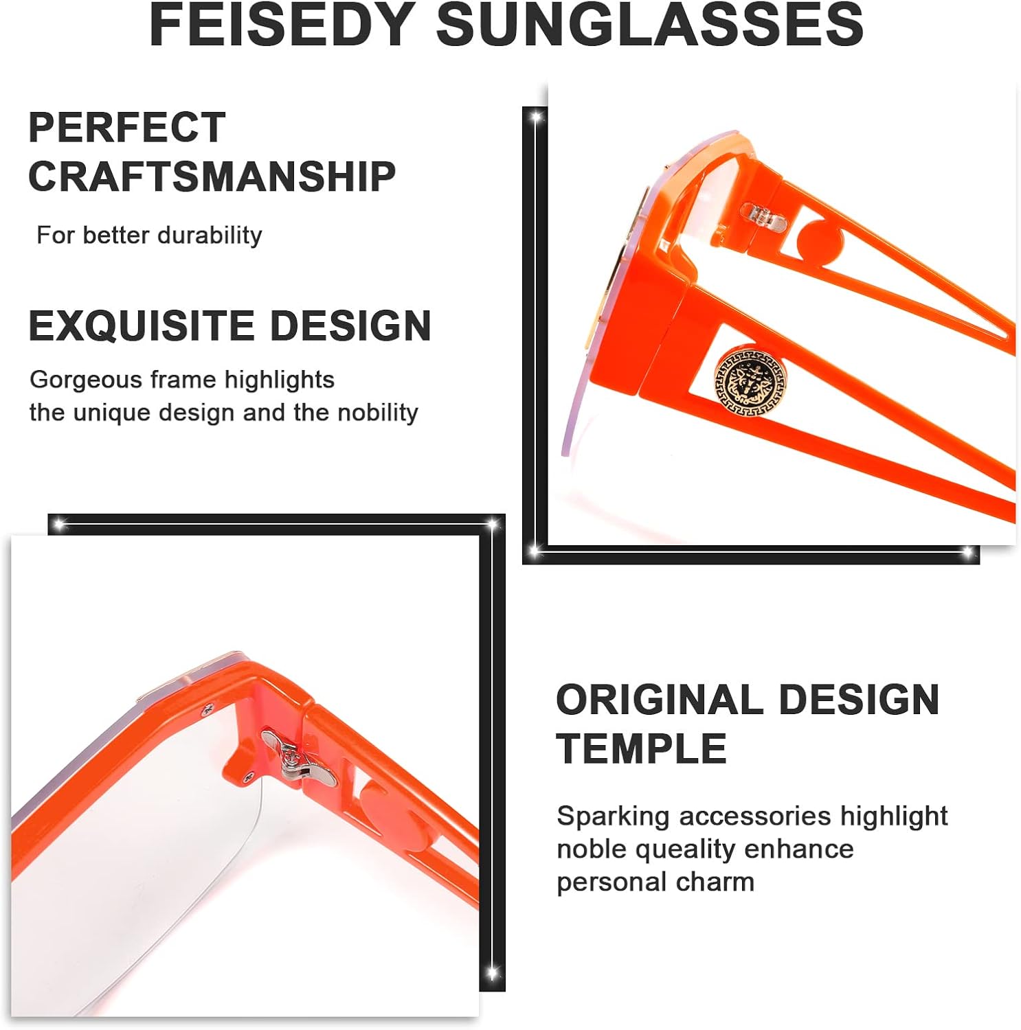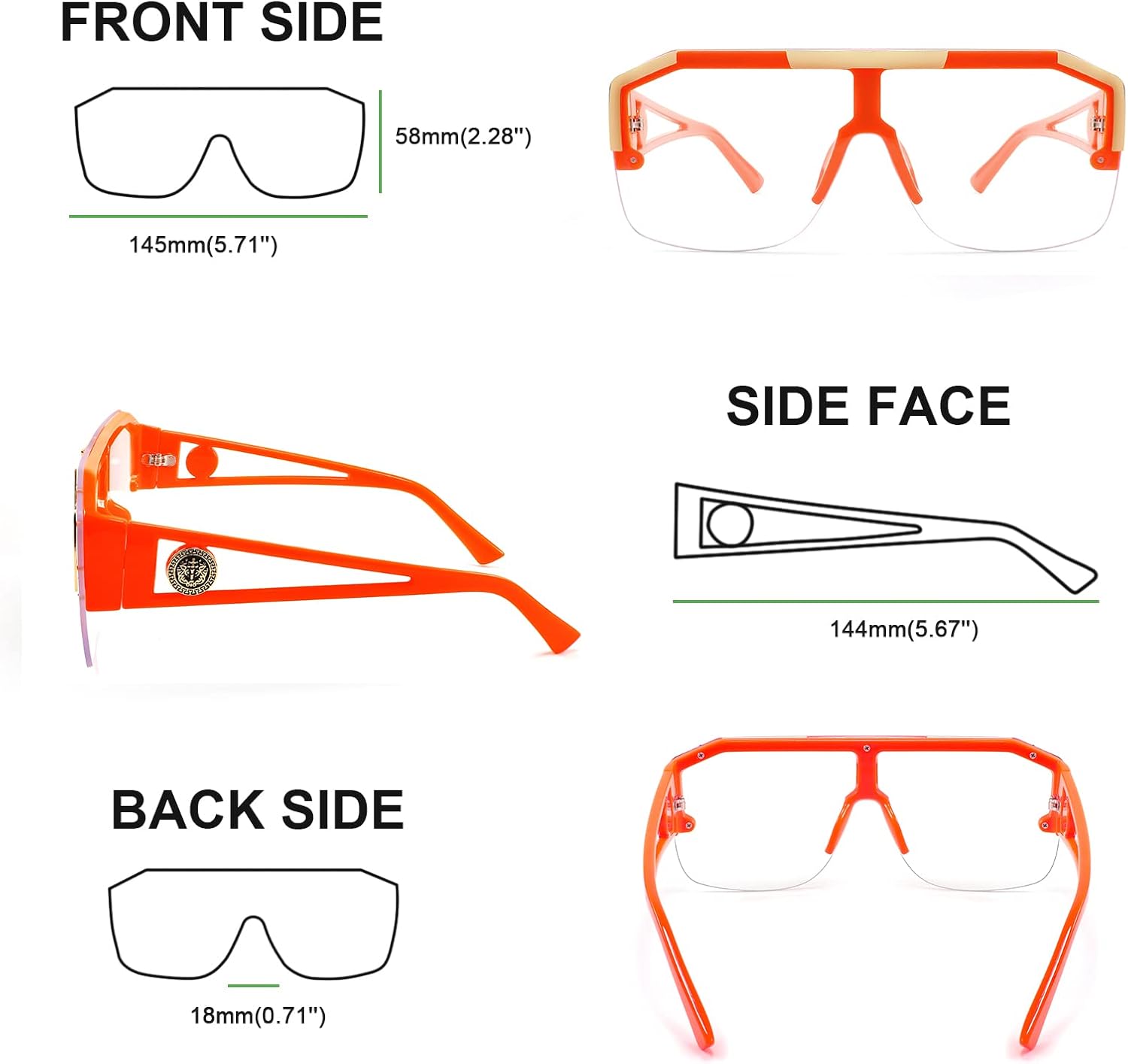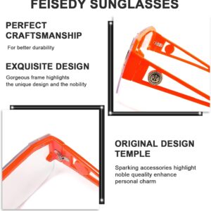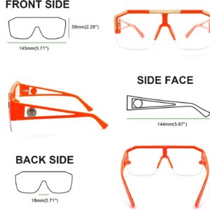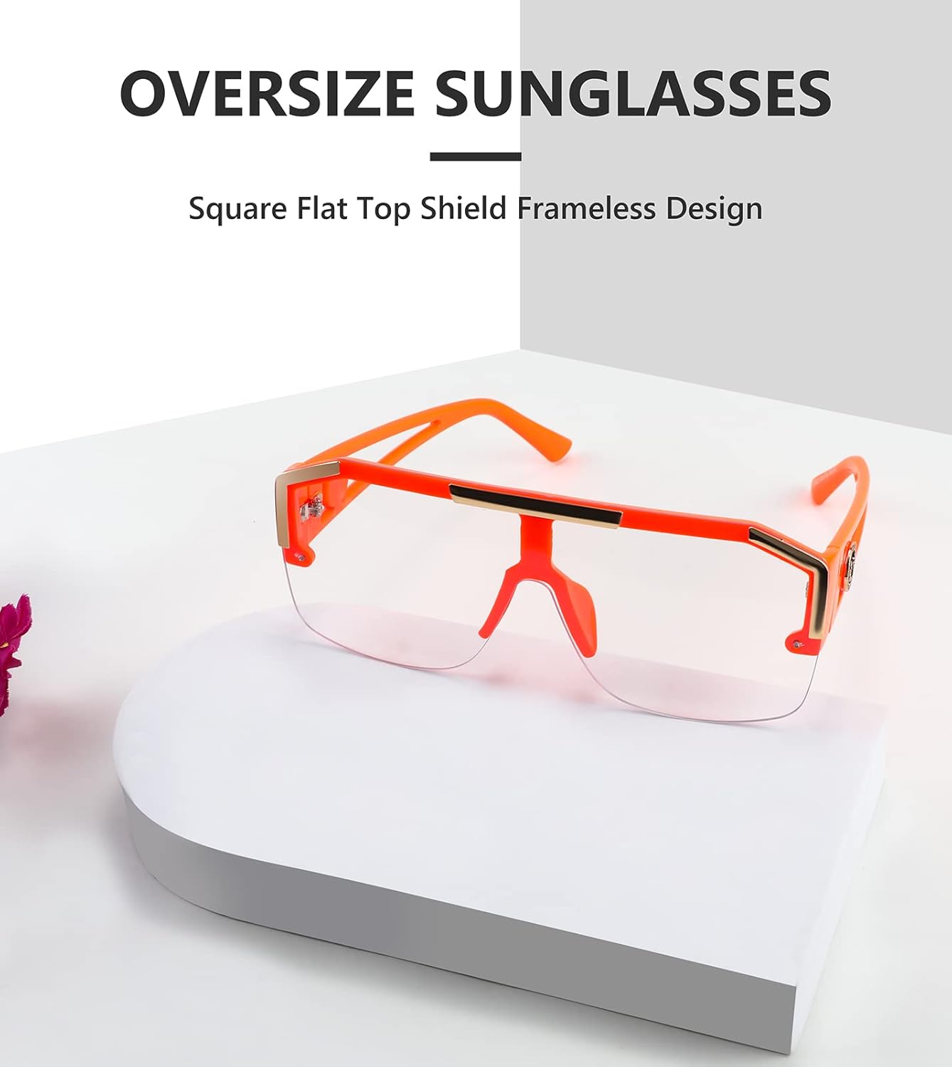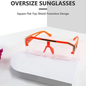 FEISEDY Square Flat Top Shield Sunglasses One Piece Frameless Stylish Women Men UV400 B2765 (Orange Frame, 73)