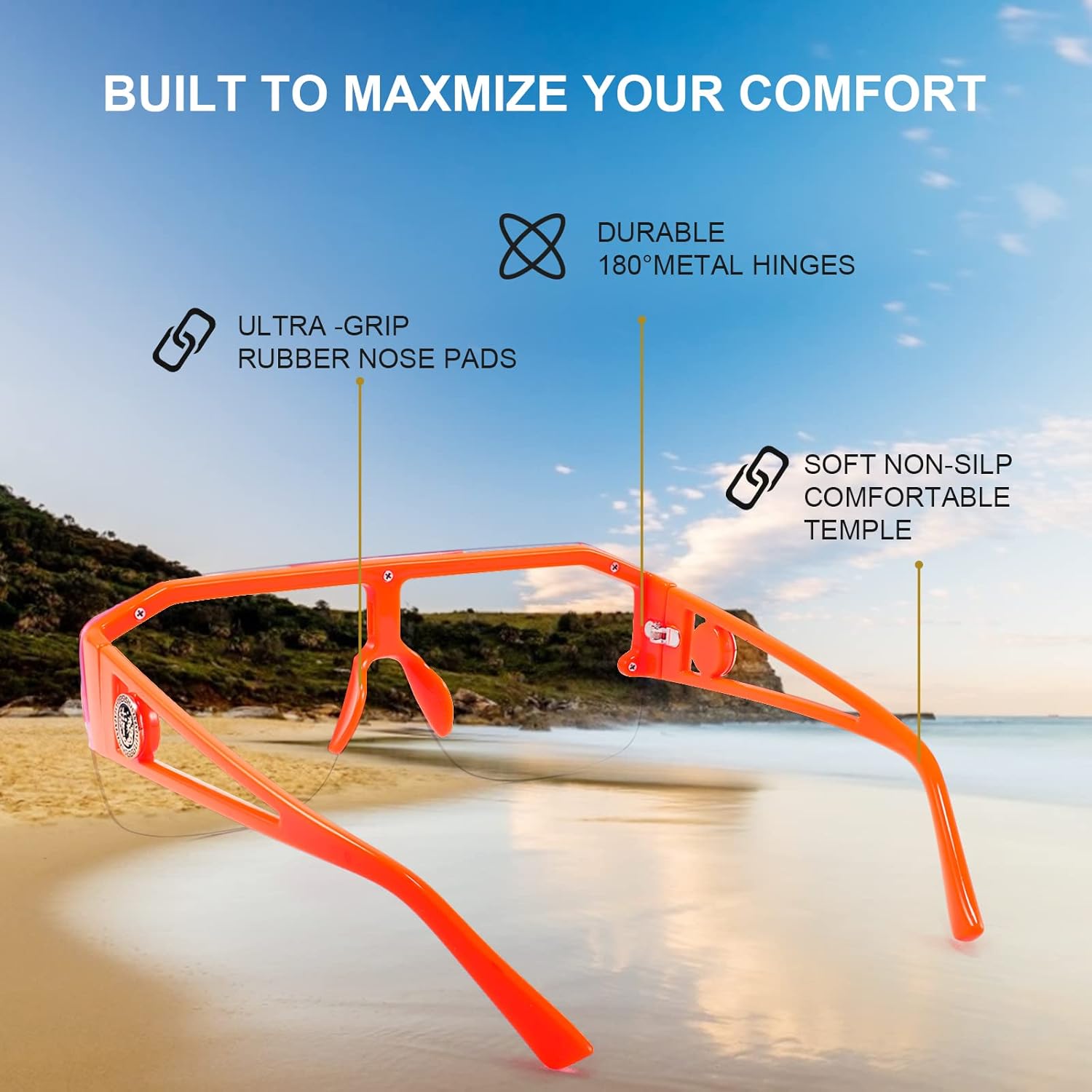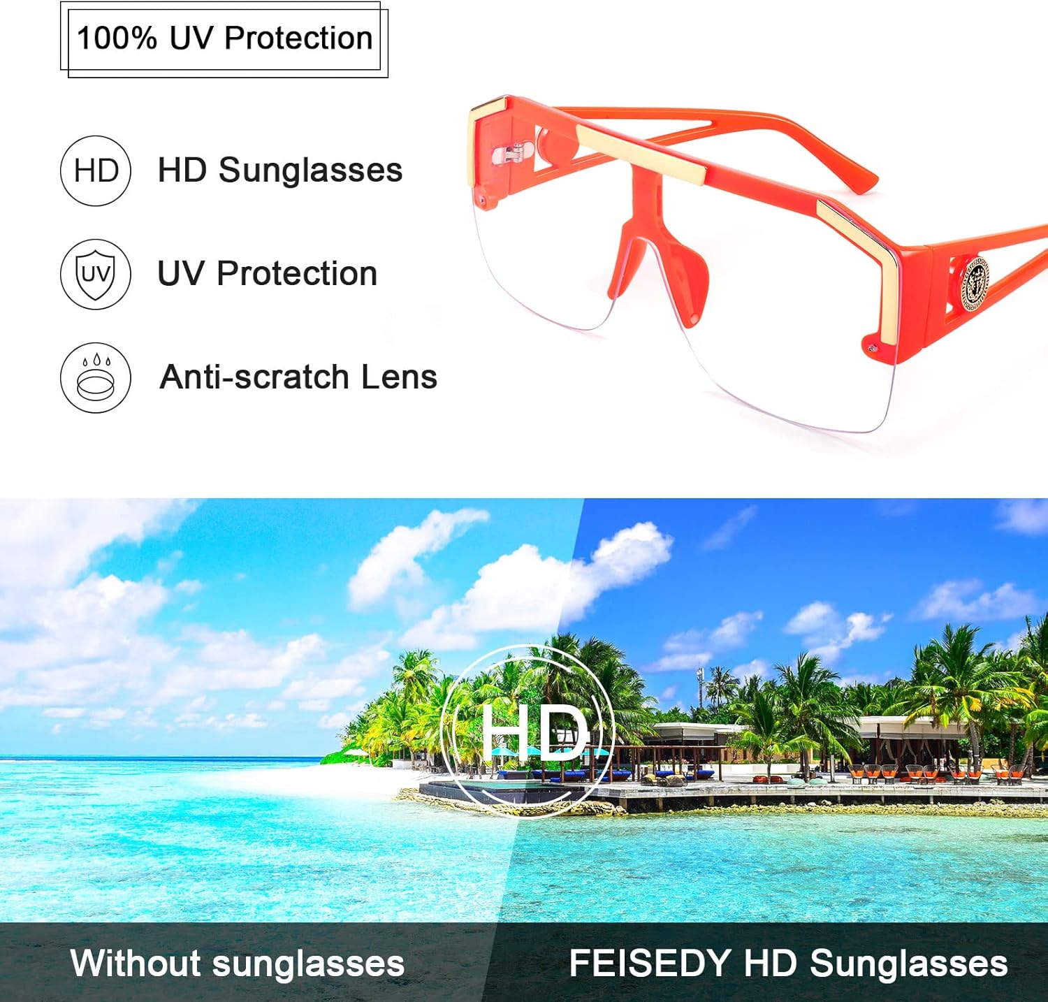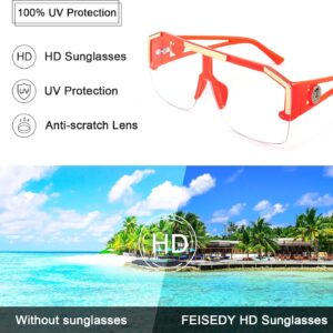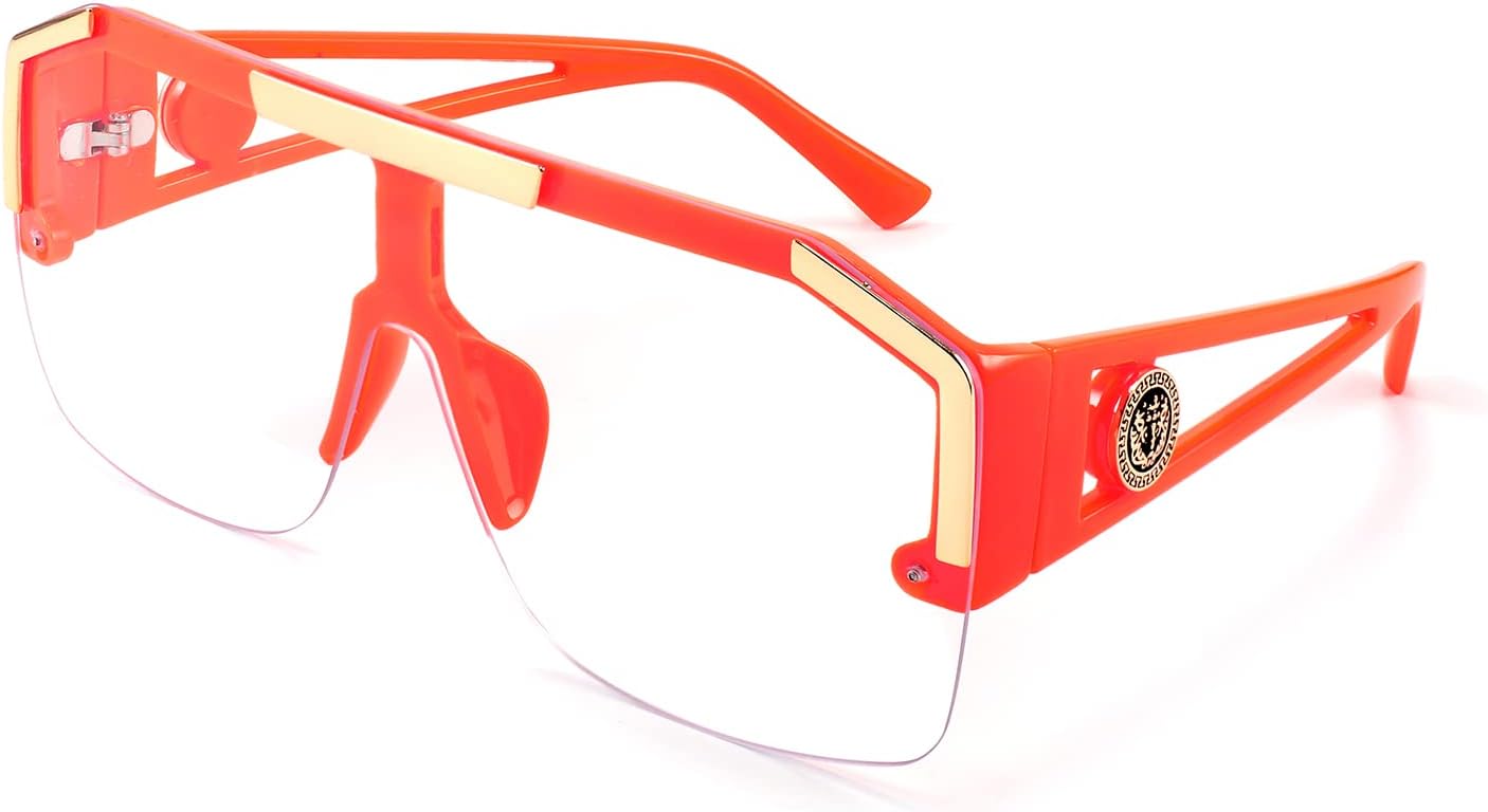 FEISEDY Square Flat Top Shield Sunglasses One Piece Frameless Stylish Women Men UV400 B2765 (Orange Frame, 73)