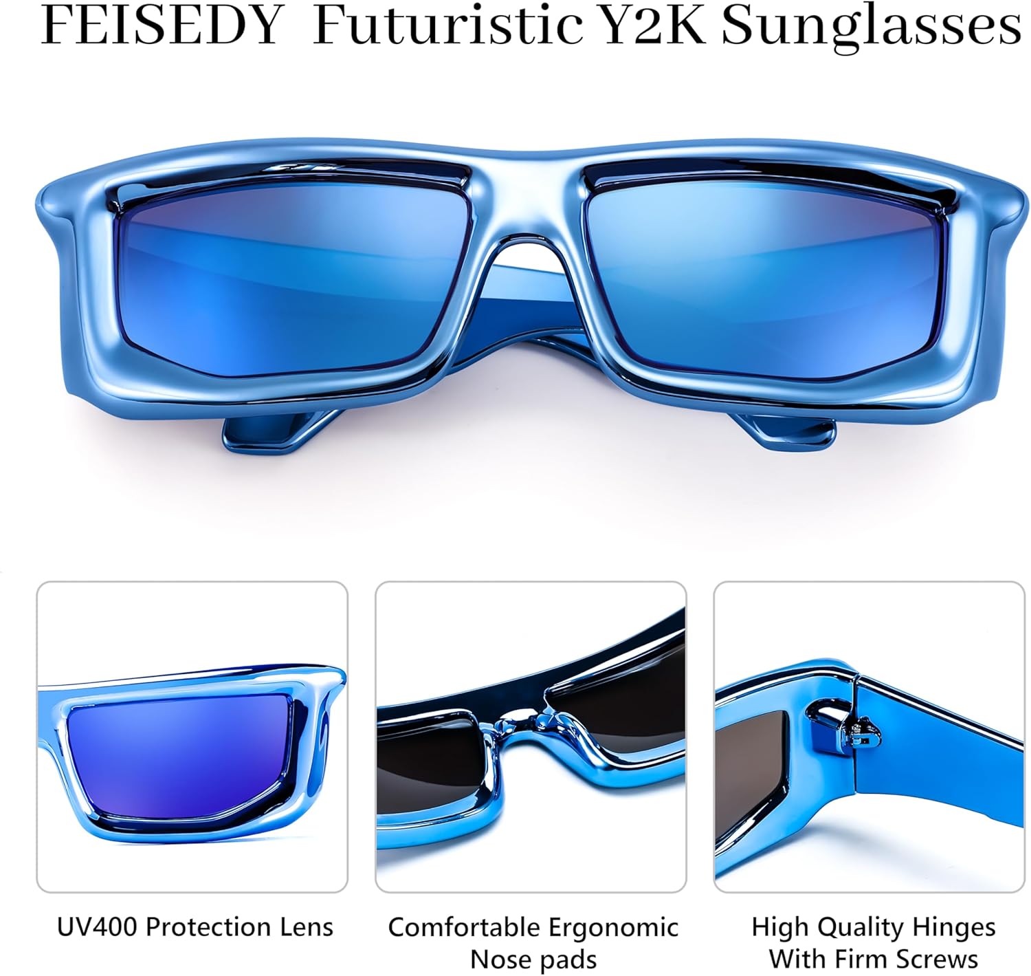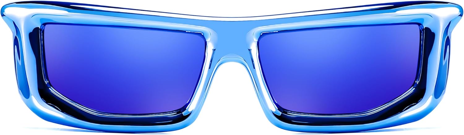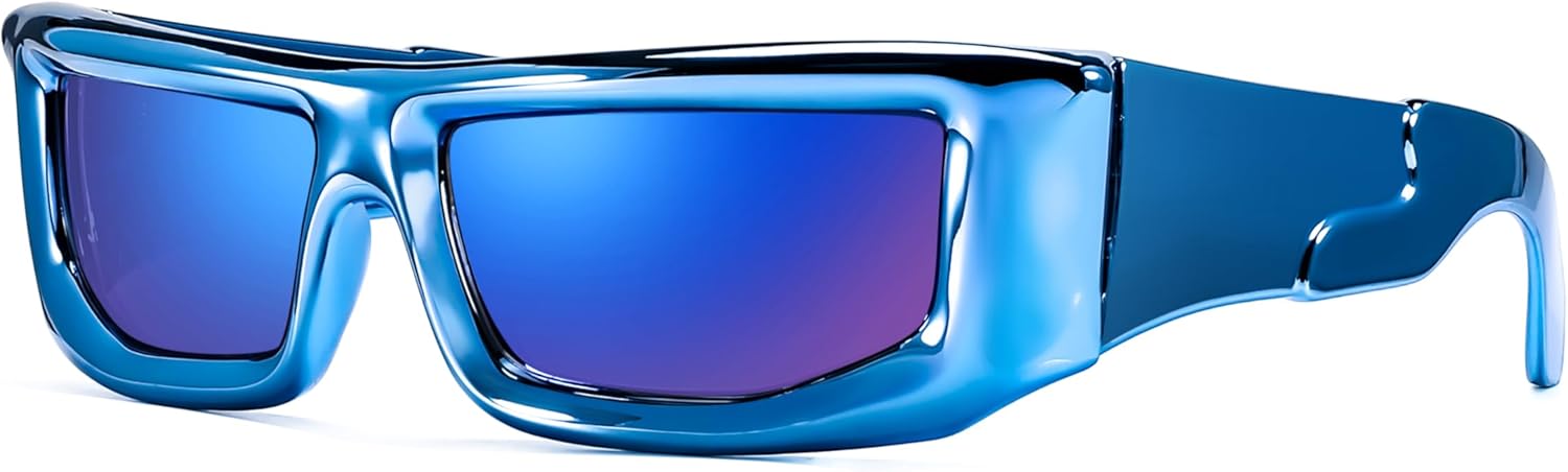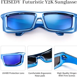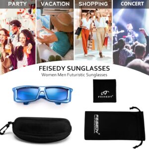 FEISEDY Trendy Cool Sunglasses For Women Men, Fashion Rectangle Thick Chunky Futuristic Glasses B9133