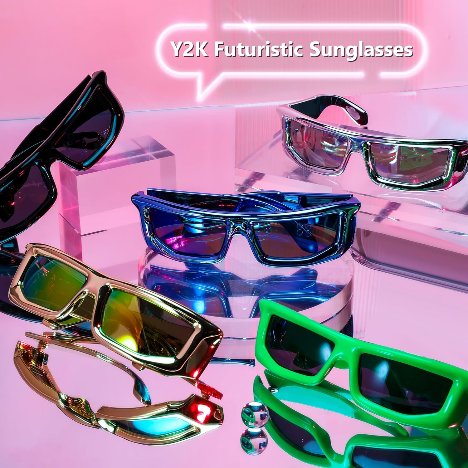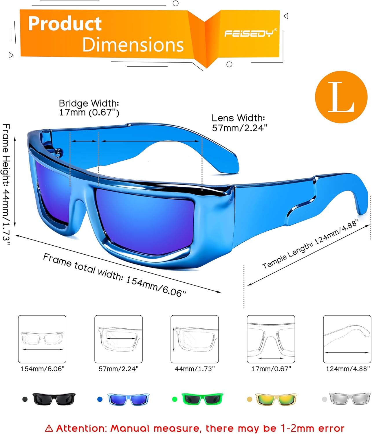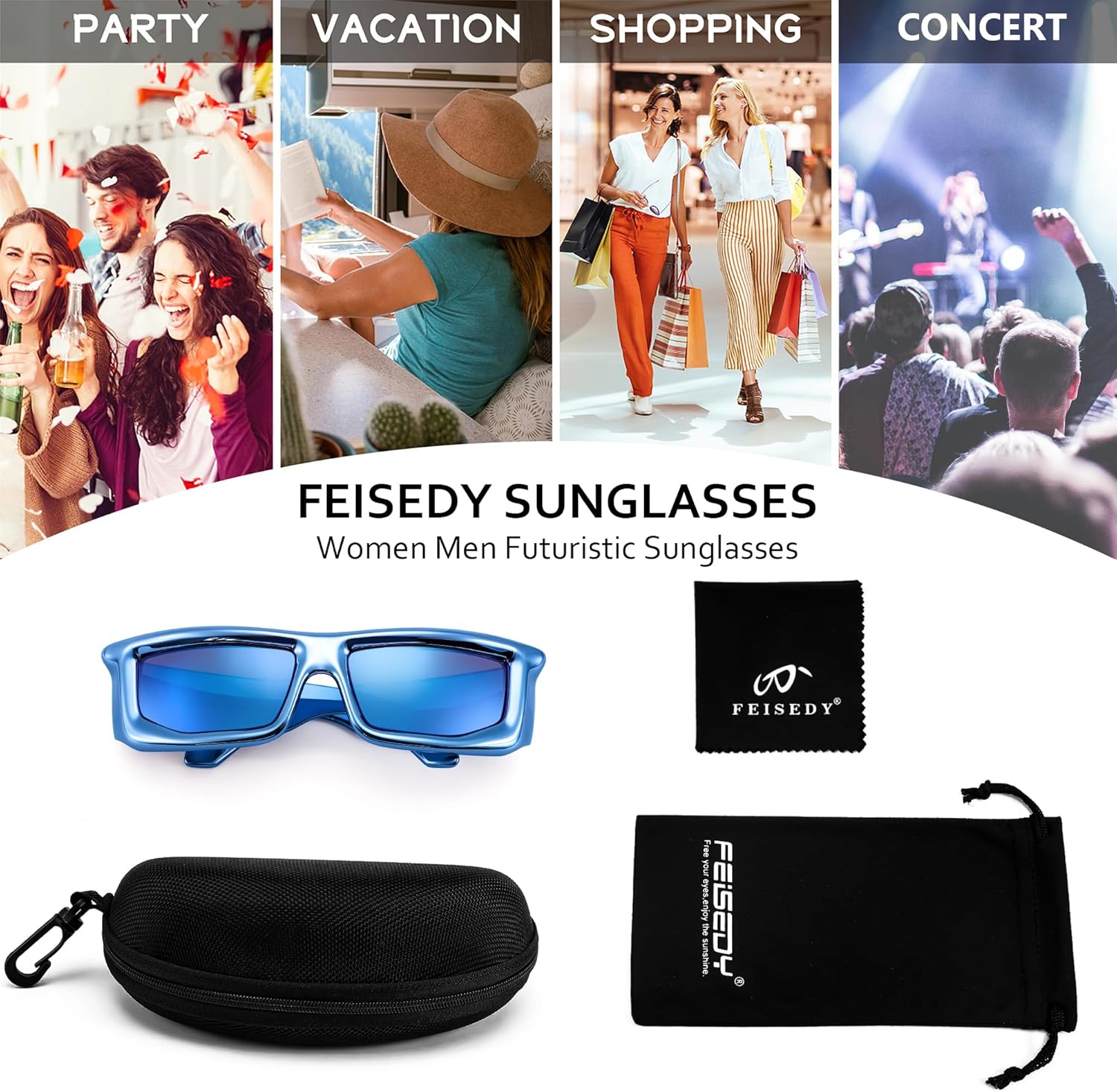 FEISEDY Trendy Cool Sunglasses For Women Men, Fashion Rectangle Thick Chunky Futuristic Glasses B9133