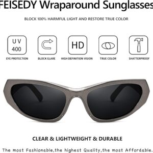 FEISEDY Women Men Futuristic Shield Sports Narrow 90s Sunglasses Dark Lens Goggles Punk Y2K Sun Glasses B2936