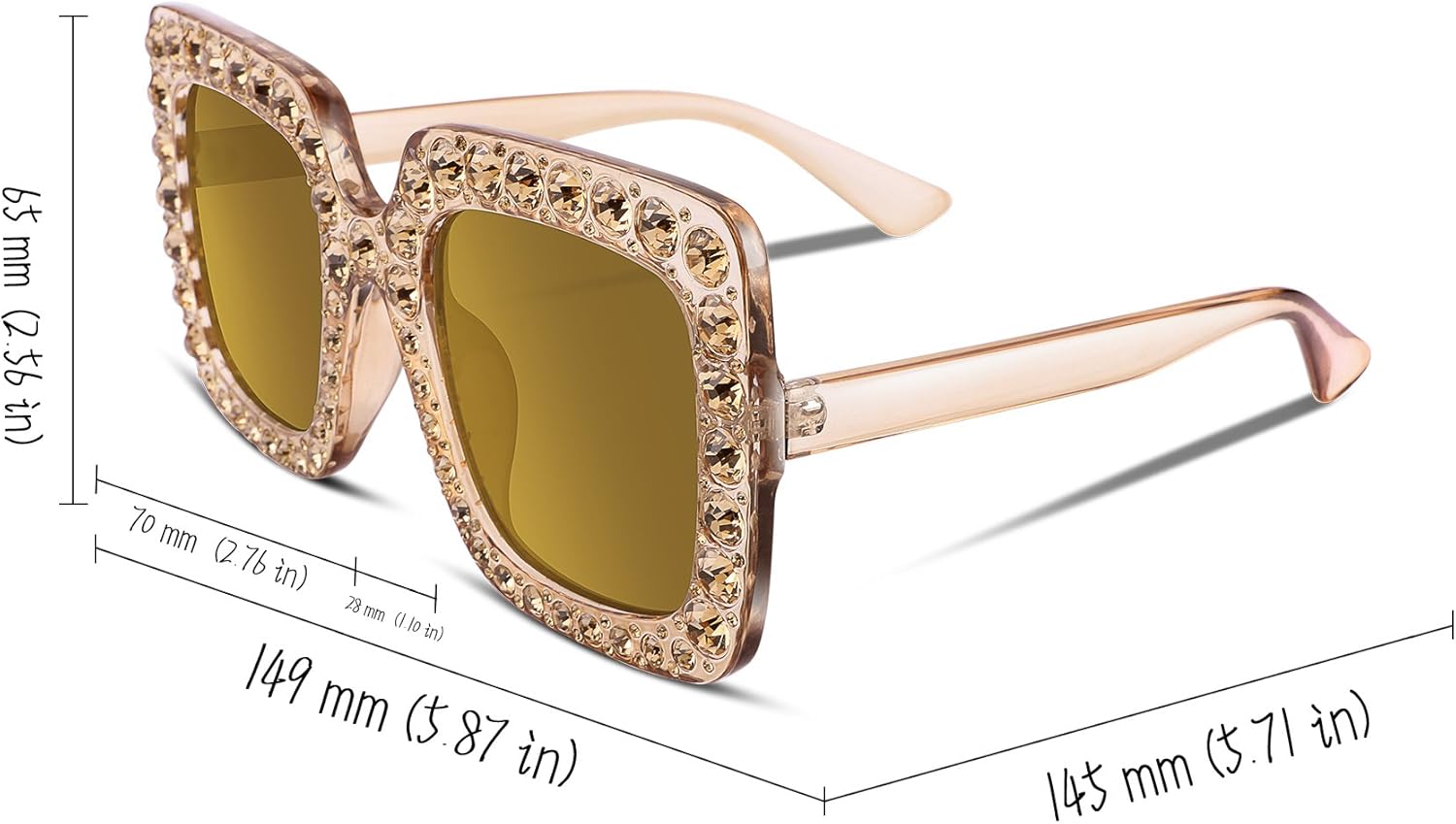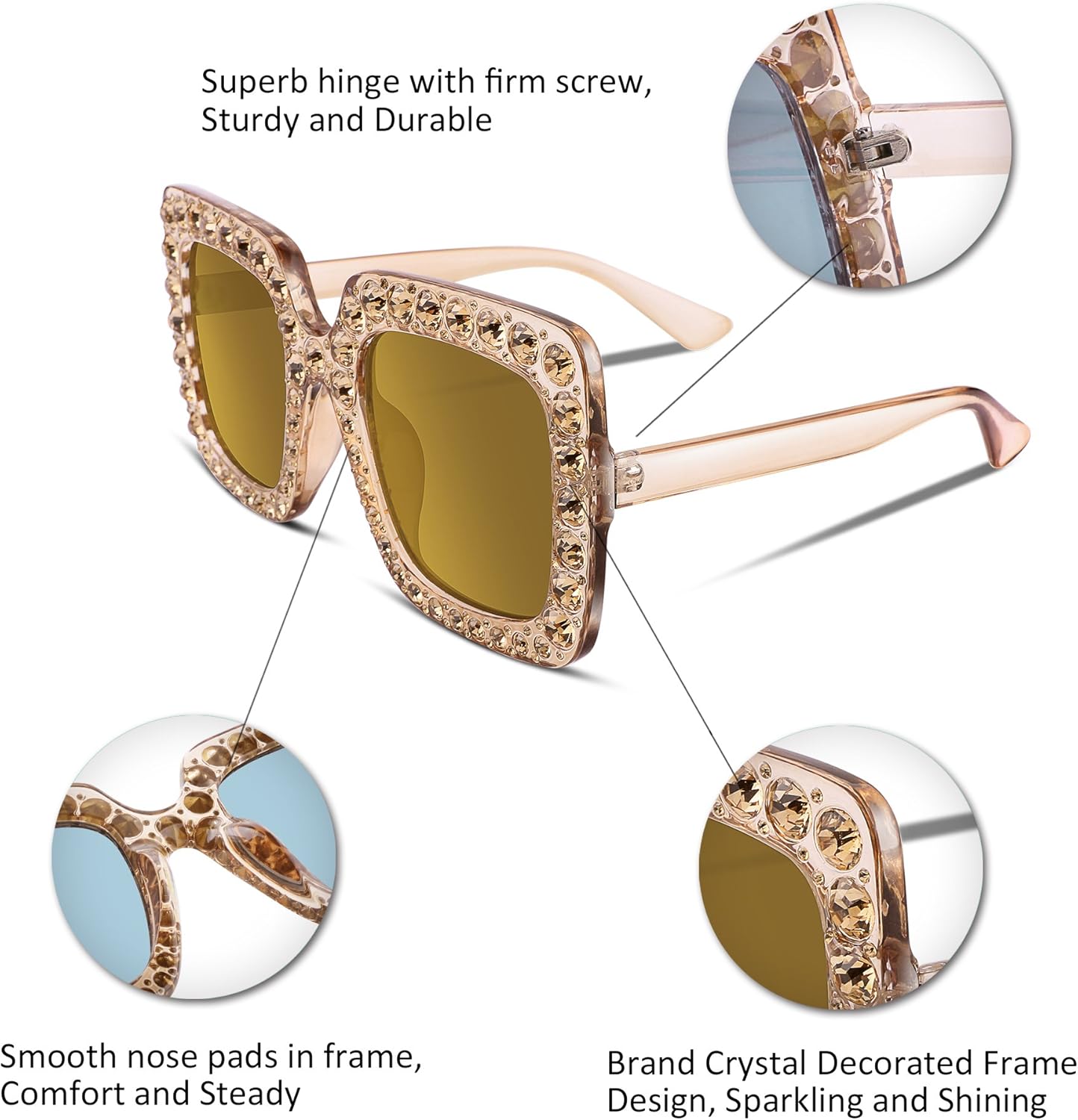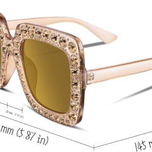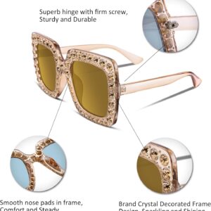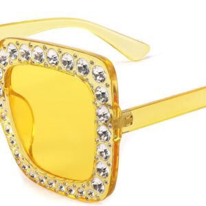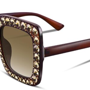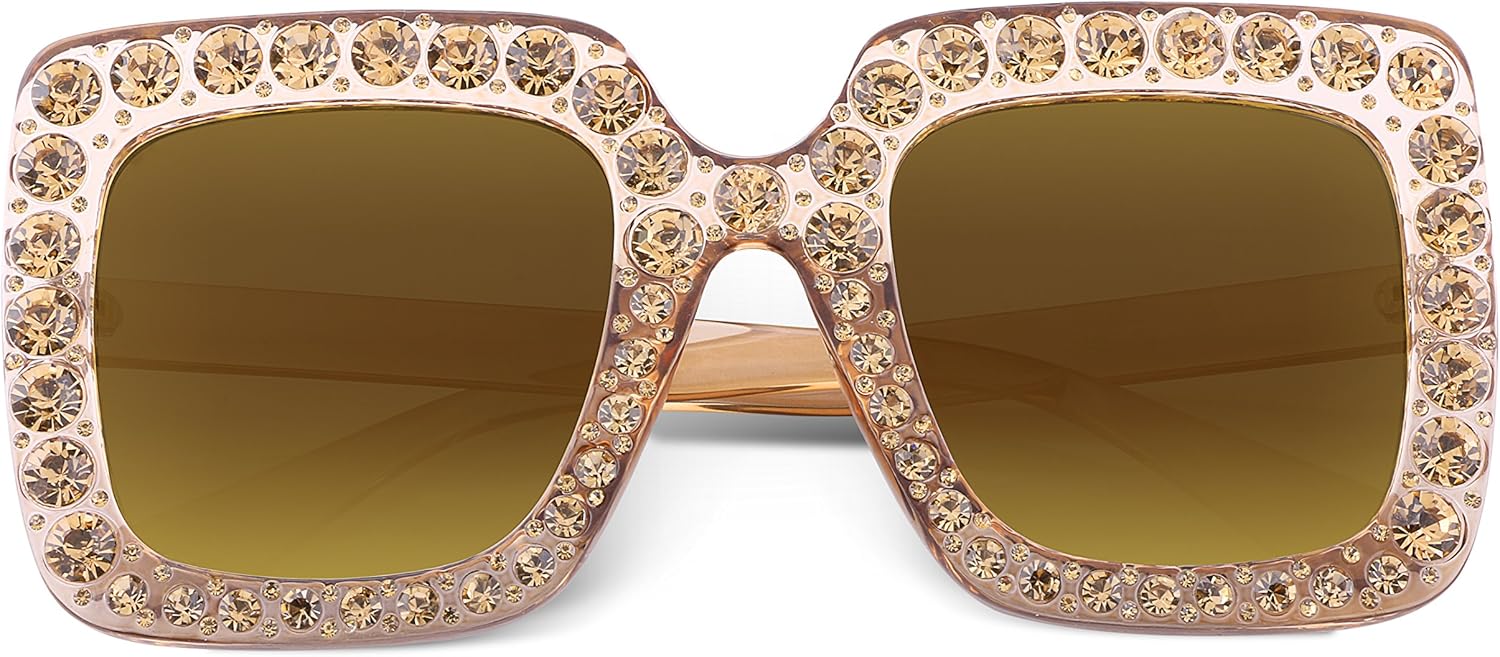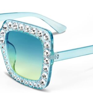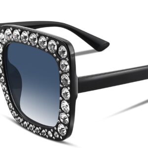 FEISEDY Women Sparkling Crystal Sunglasses Oversized Square Thick Frame B2283