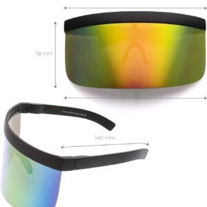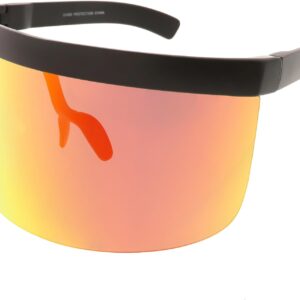 Futuristic Oversize Shield Visor Sunglasses Flat Top Mirrored Mono Lens 172mm (Red Orange Mirror)