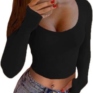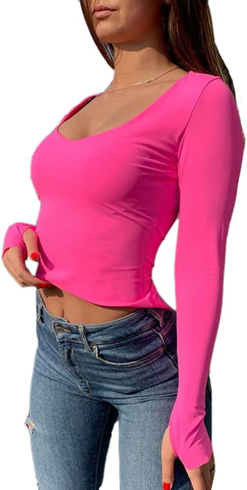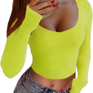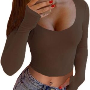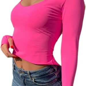 GEMBERA Women’s Long Sleeve Crop Tops Scoop Neck Fitted Basic Workout Tee