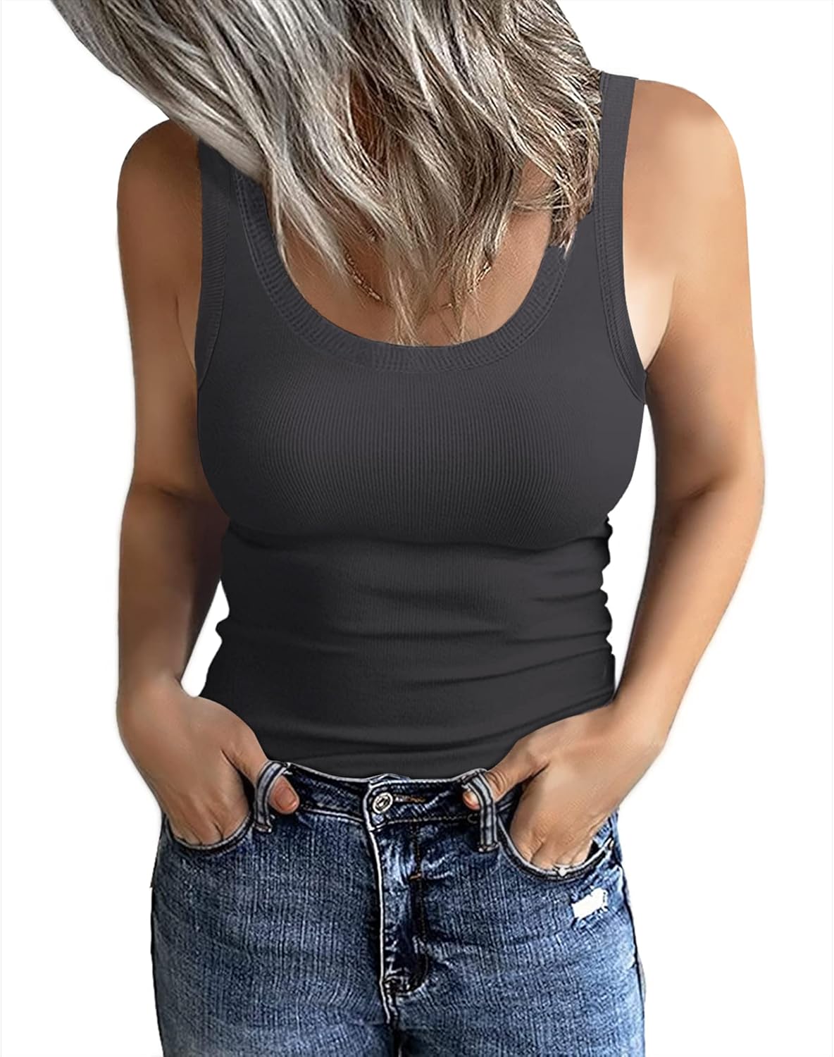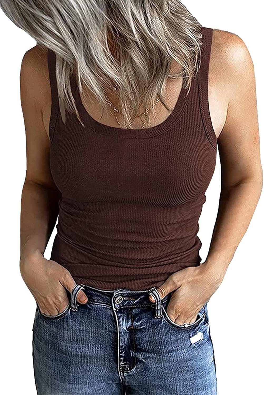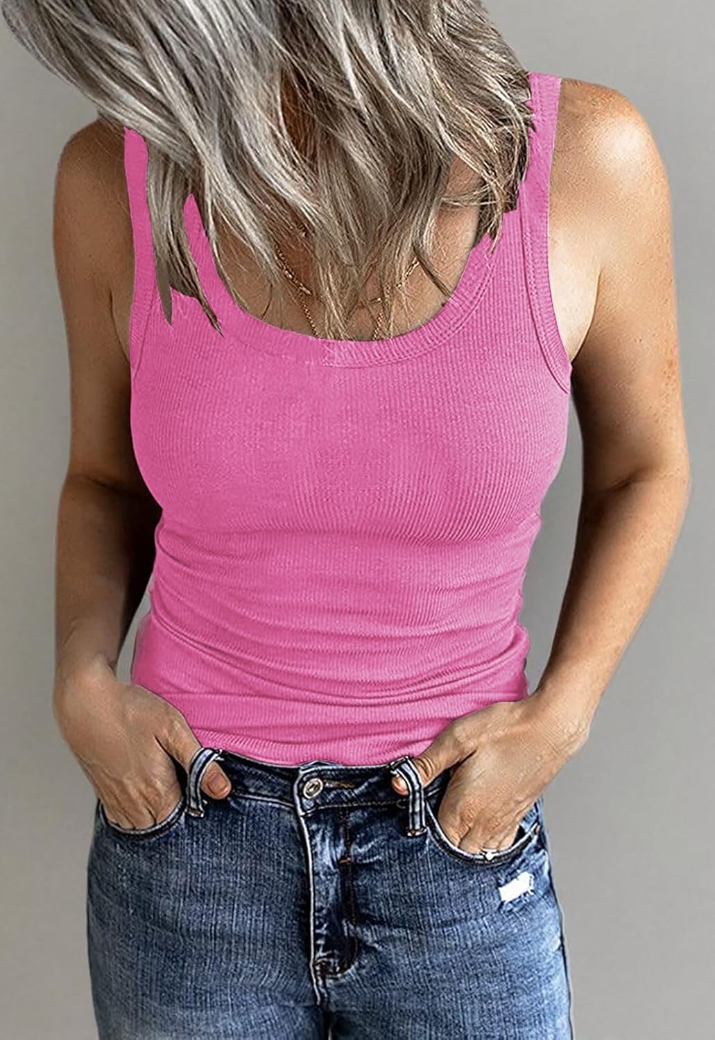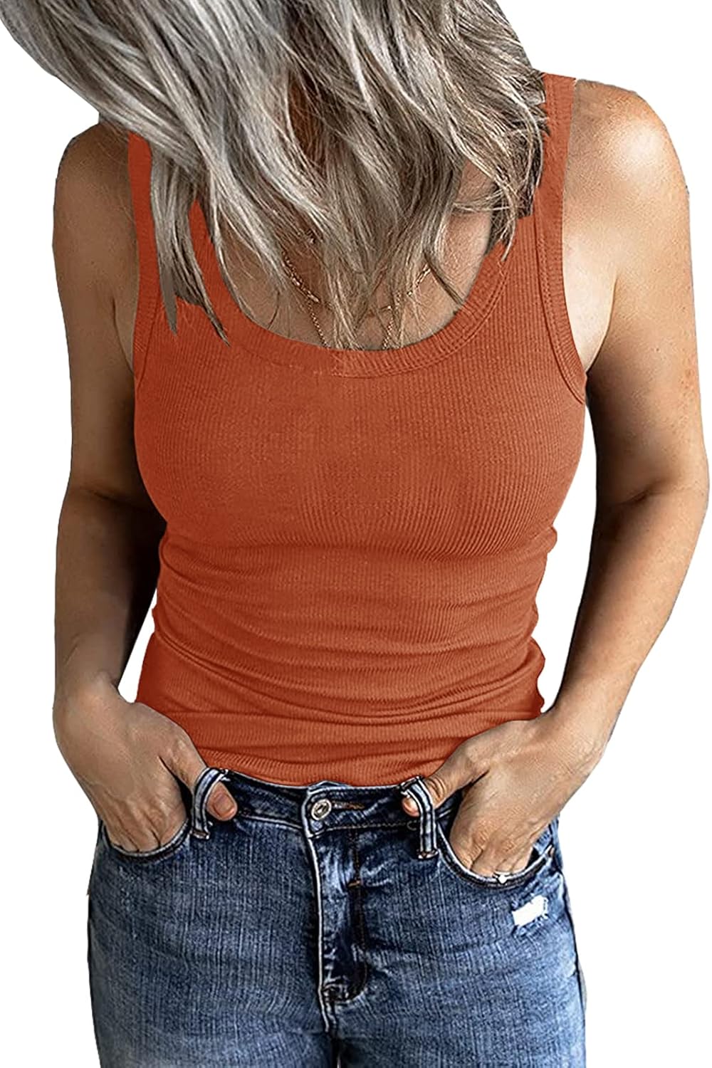 GEMBERA Women’s Sleeveless Scoop Neck Ribbed Tank Tops Fitted Basic Cami Tee Shirts