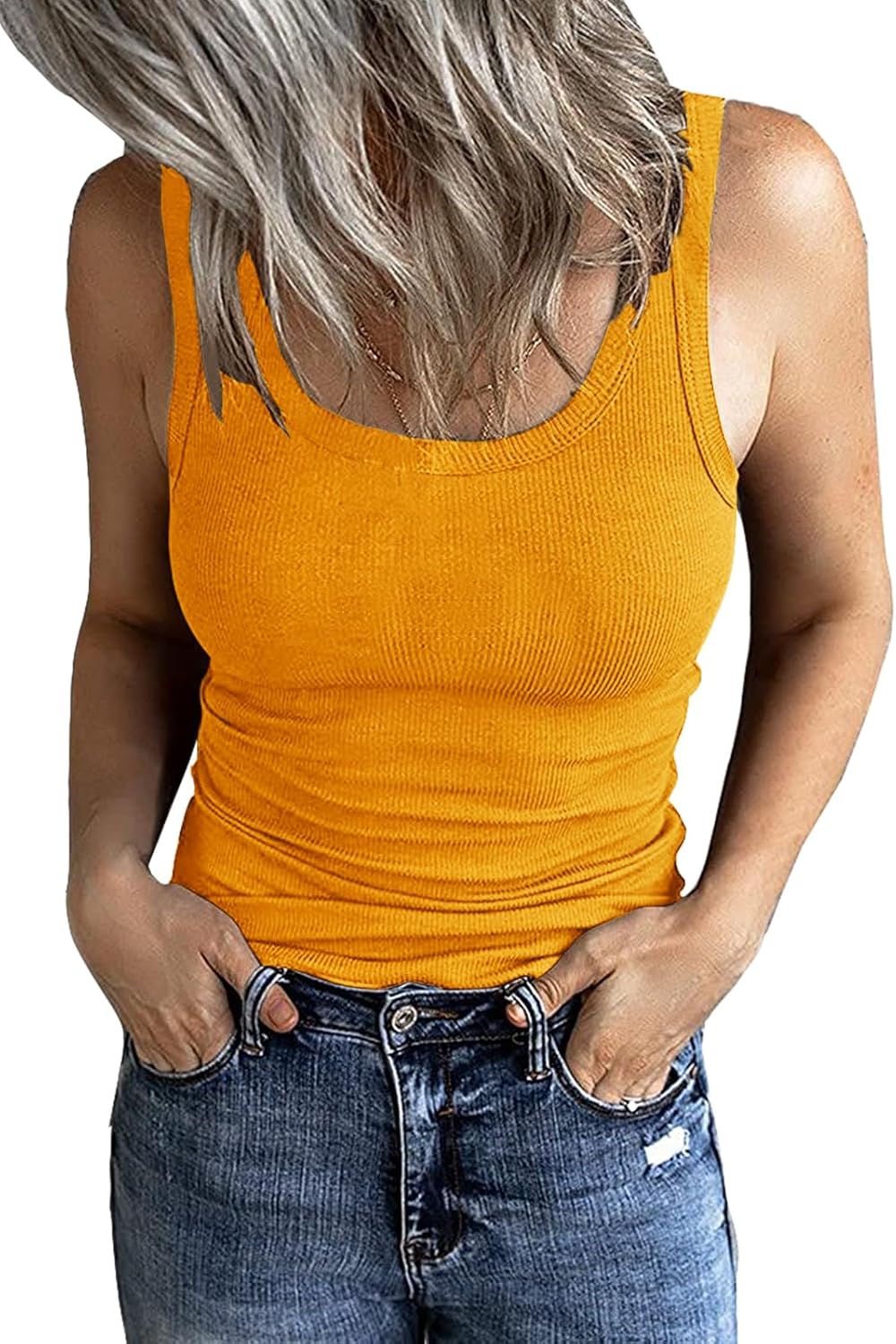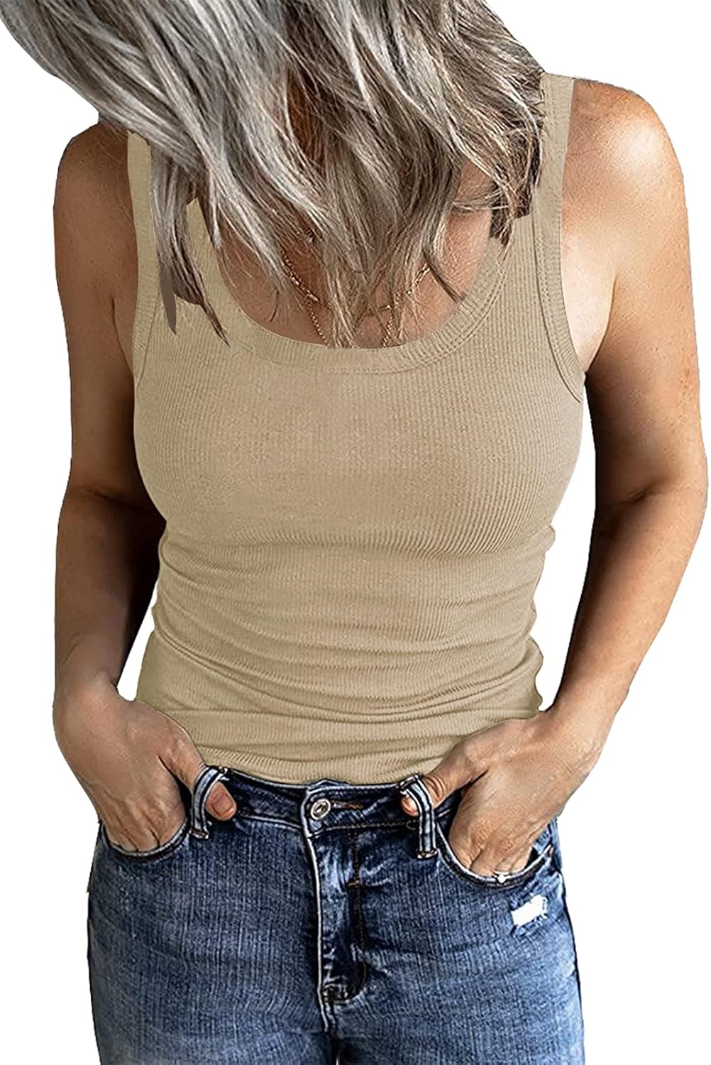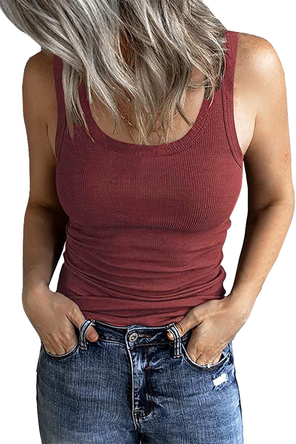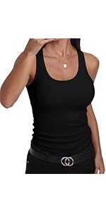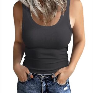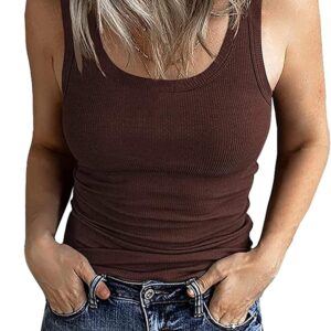 GEMBERA Women’s Sleeveless Scoop Neck Ribbed Tank Tops Fitted Basic Cami Tee Shirts