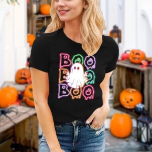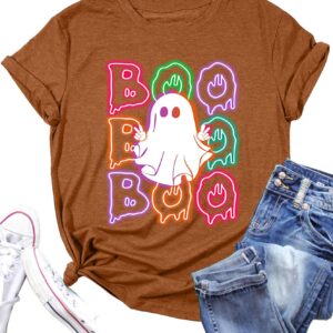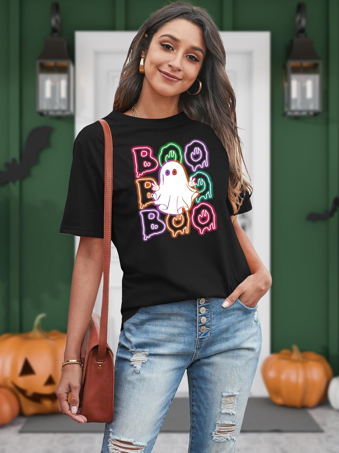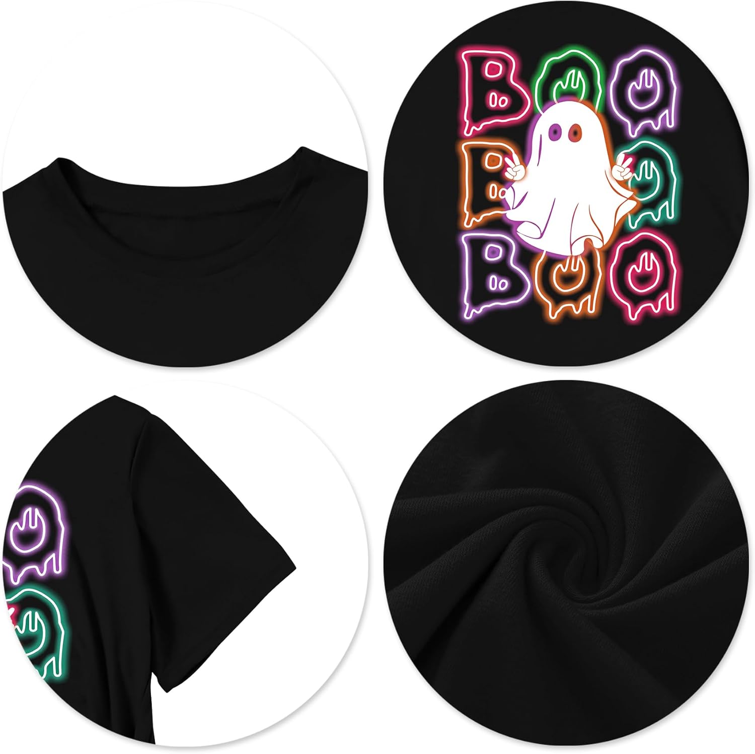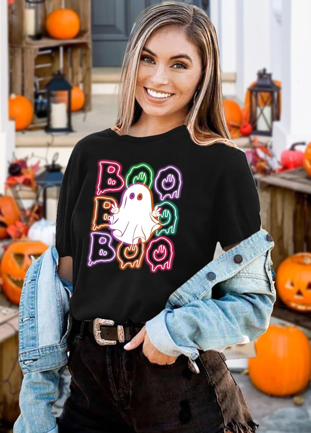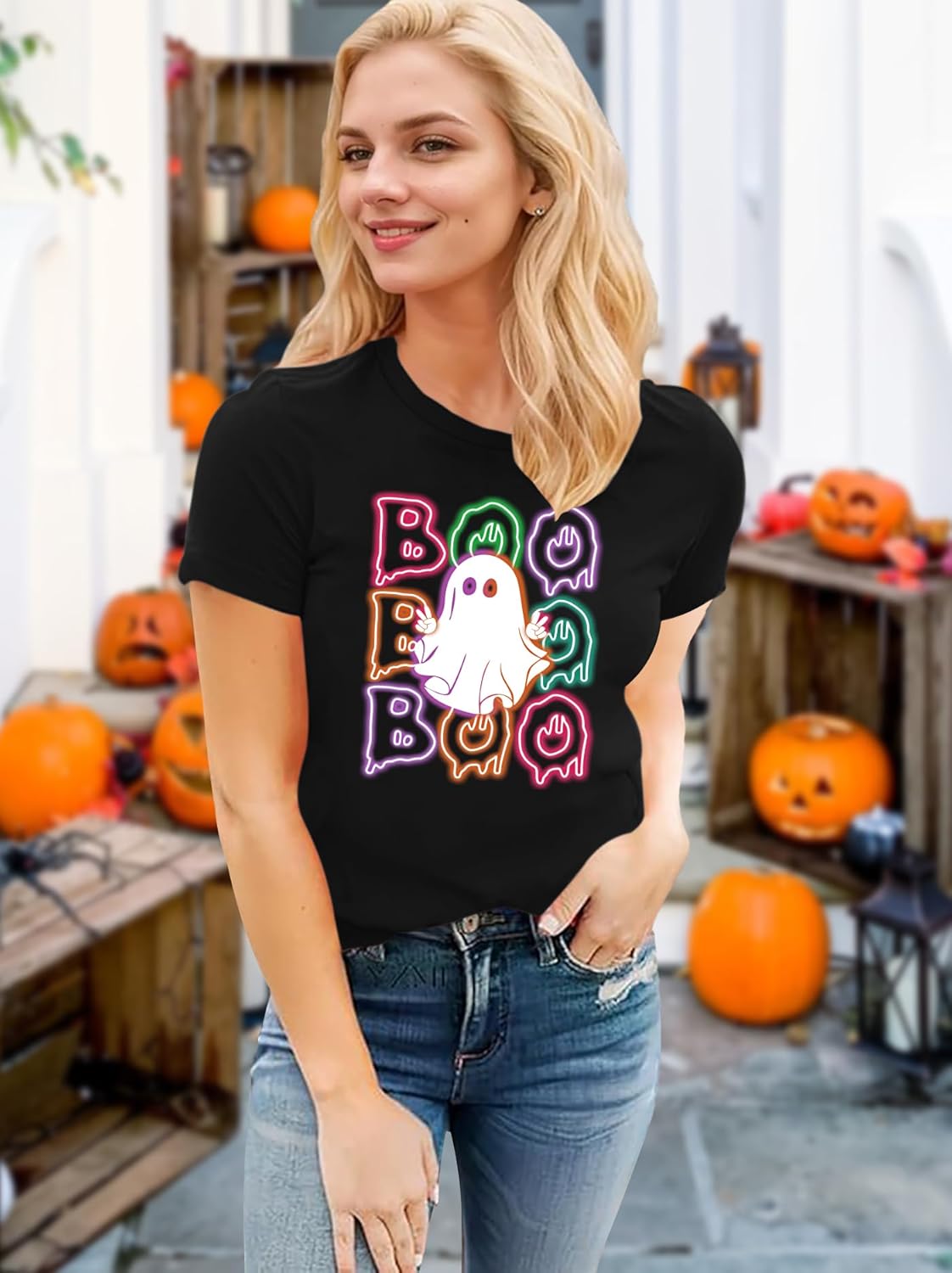 Halloween Shirts for Women Boo T Shirt Cute Ghost Graphic Tees Halloween Spooky Season Short Sleeve Tee Tops quantity