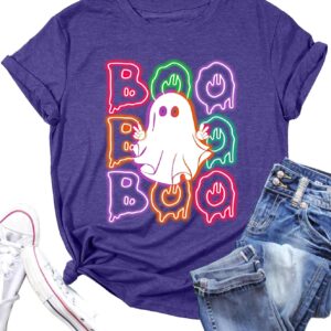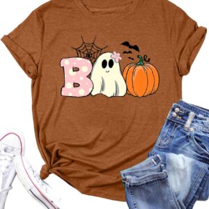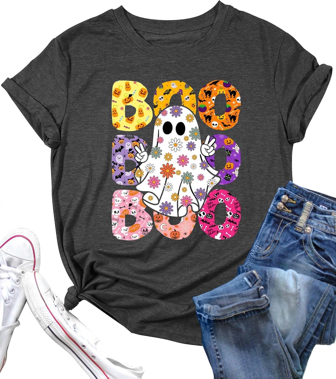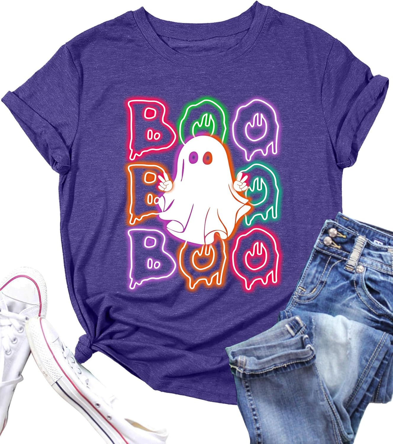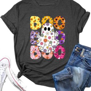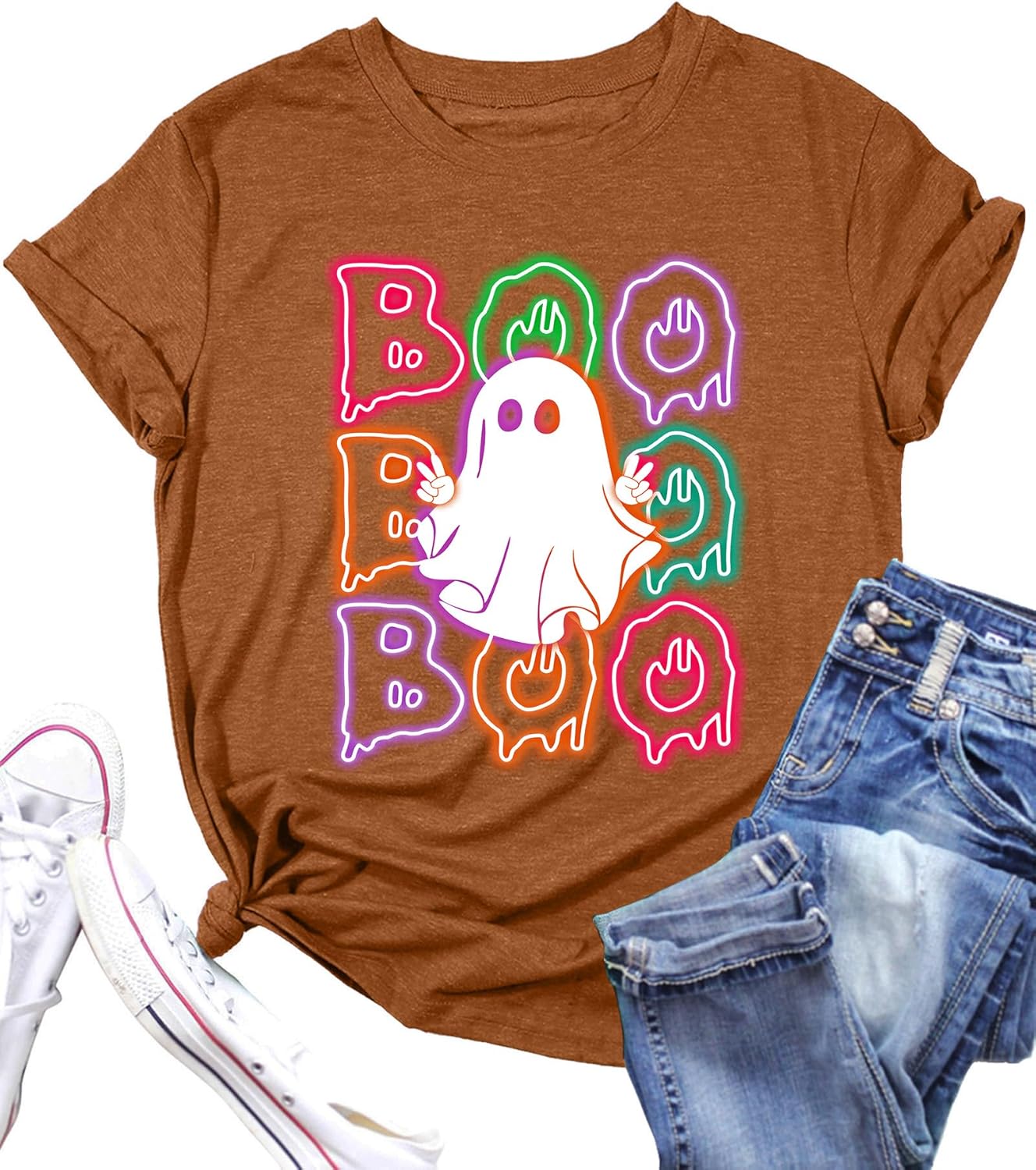 Halloween Shirts for Women Boo T Shirt Cute Ghost Graphic Tees Halloween Spooky Season Short Sleeve Tee Tops
