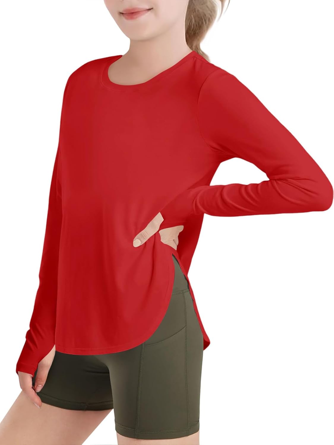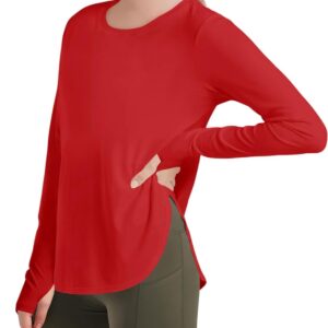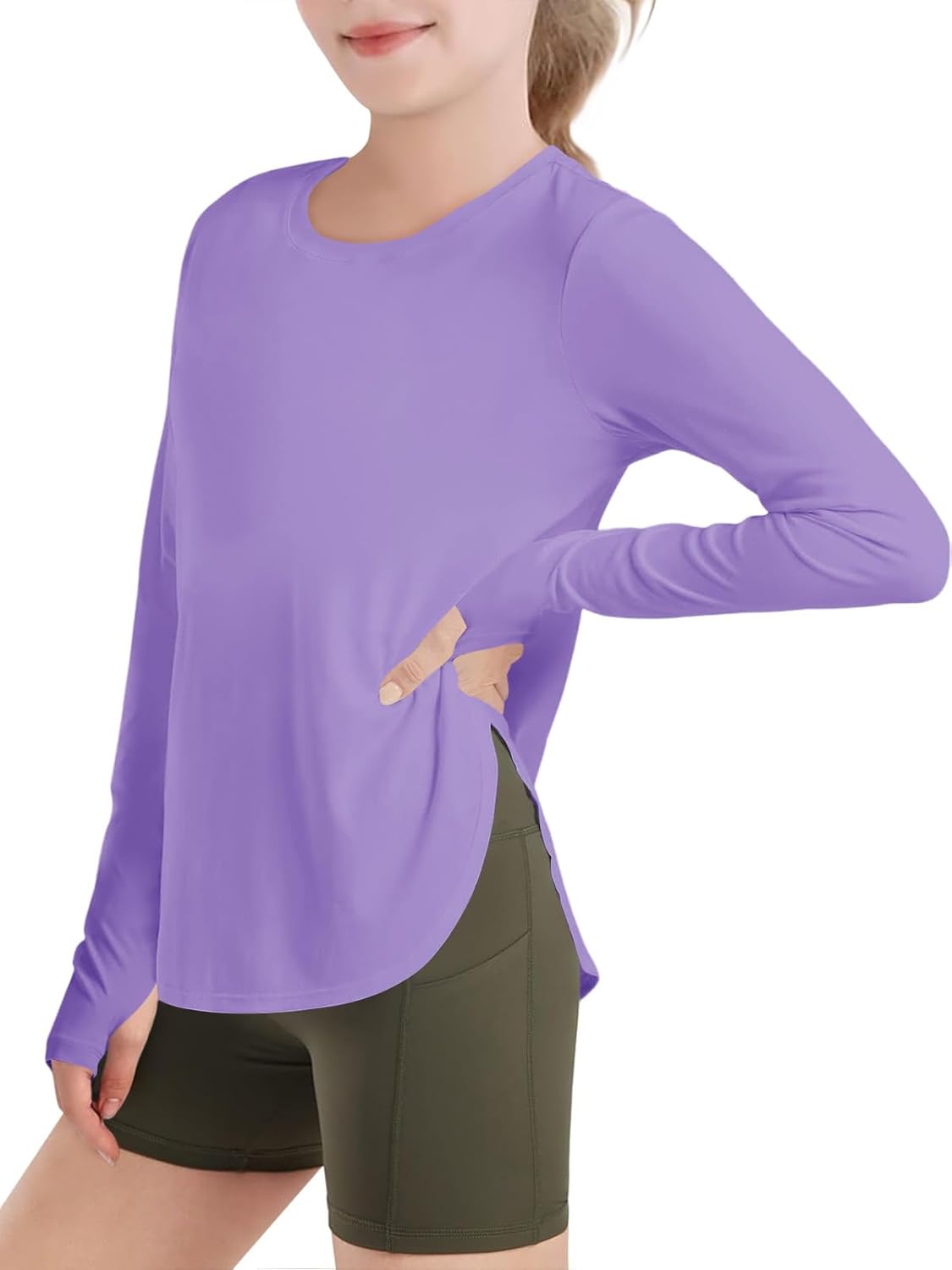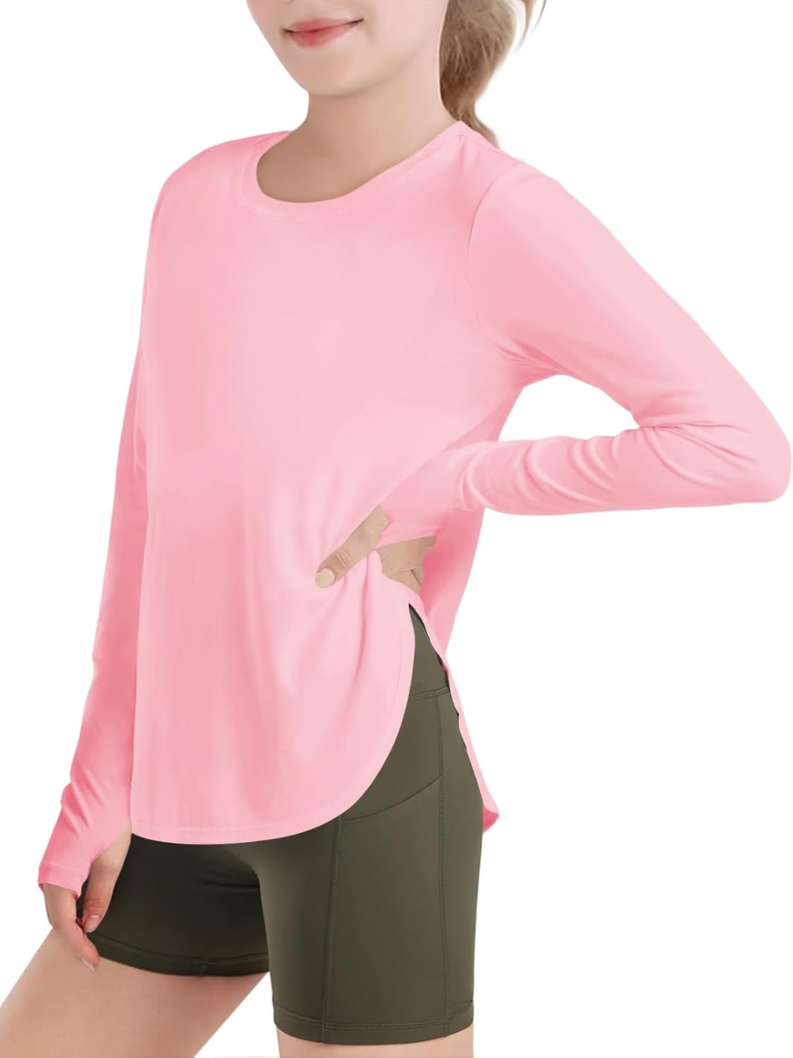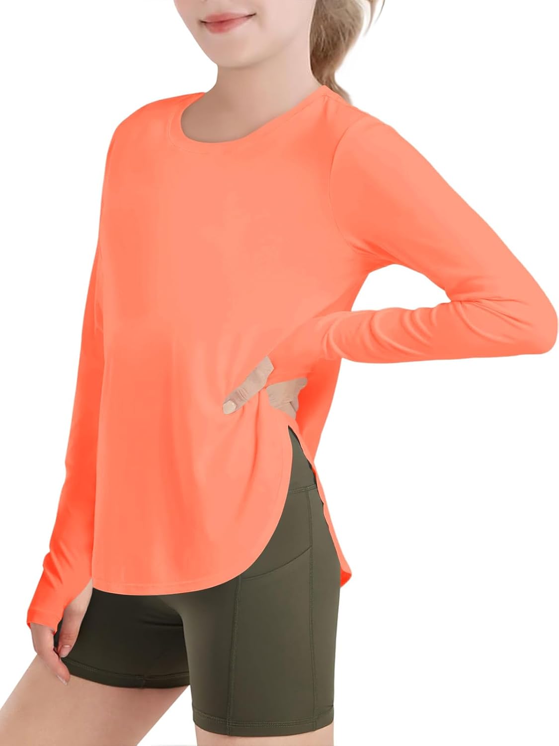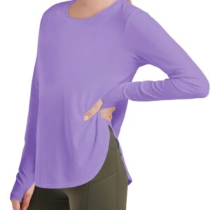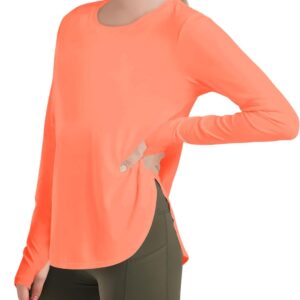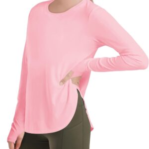 Haloumoning Girls Athletic Long Sleeve Shirts Kids Side Slit Quick Dry Workout Tops Tees with Thumb Hole 5-14 Years
