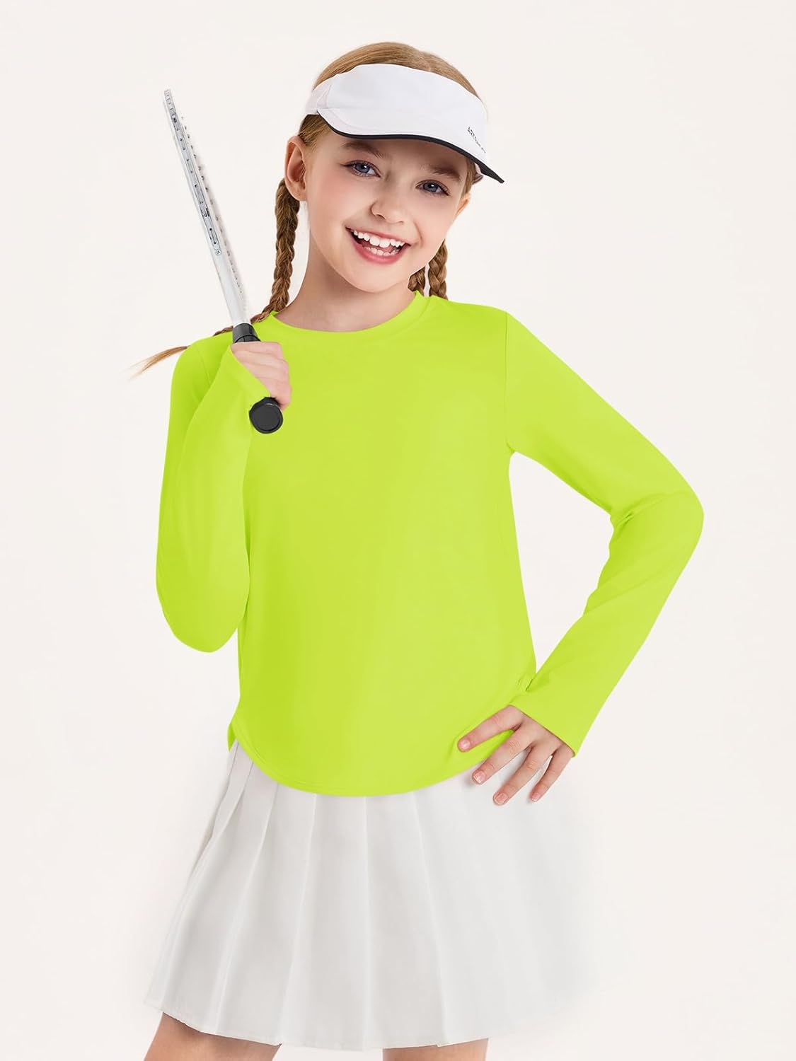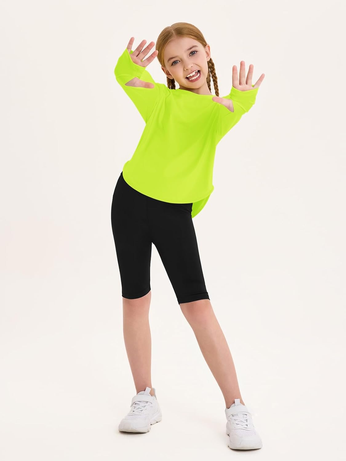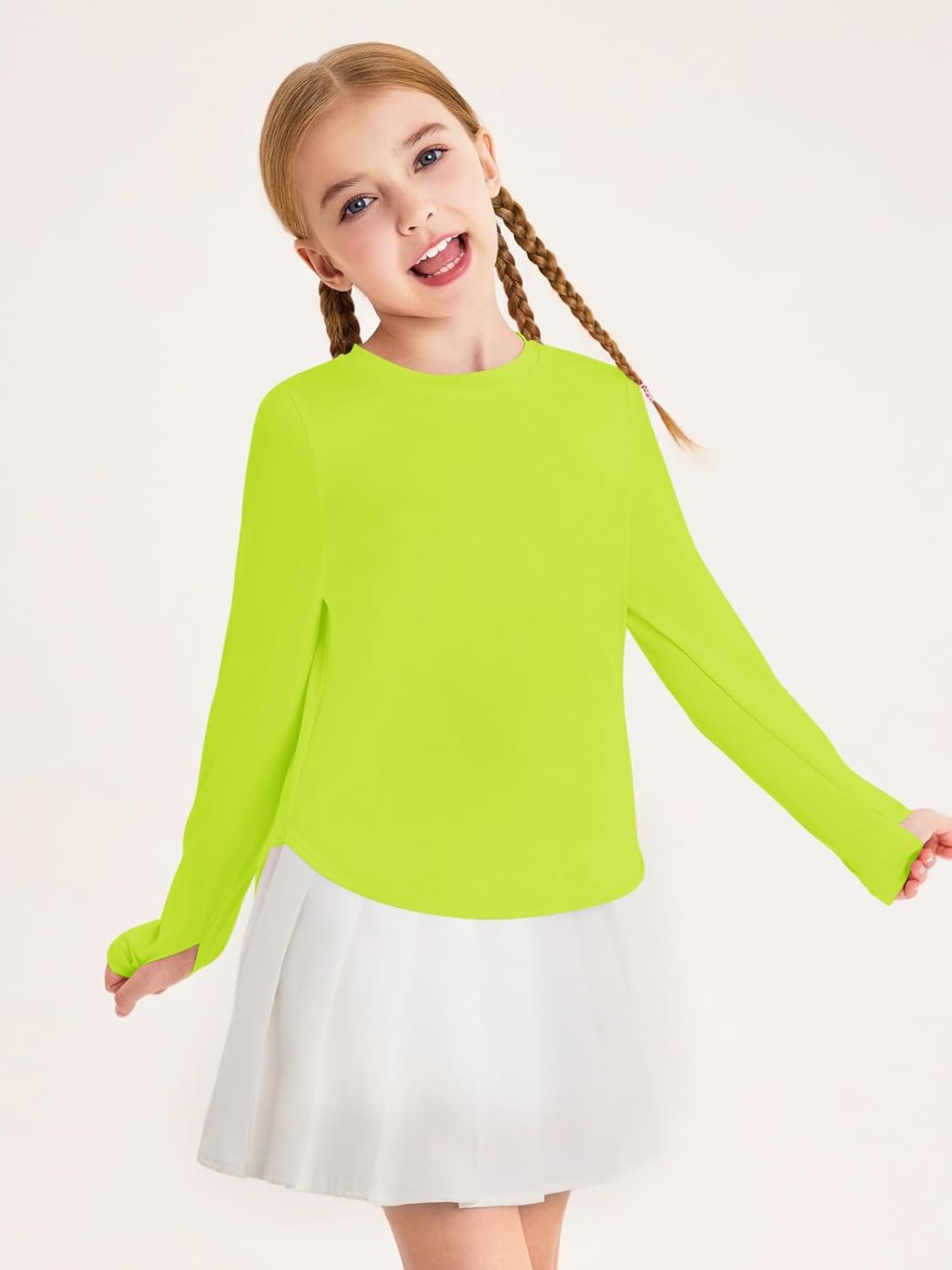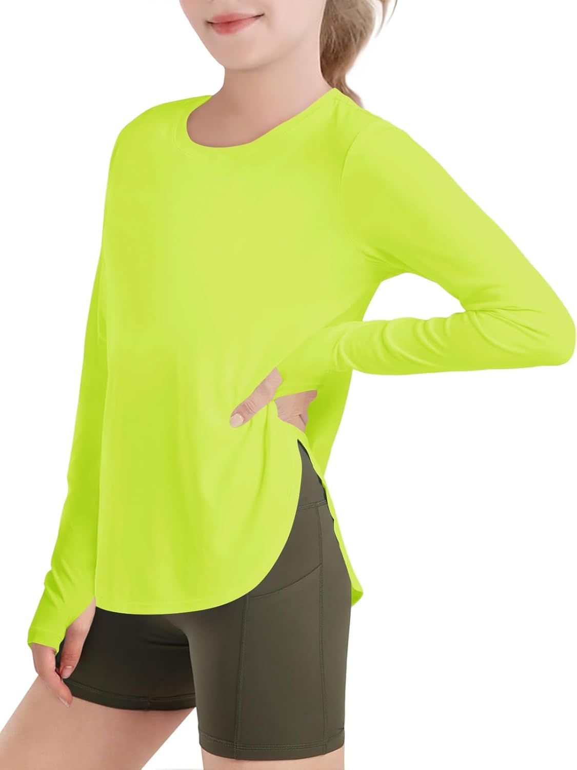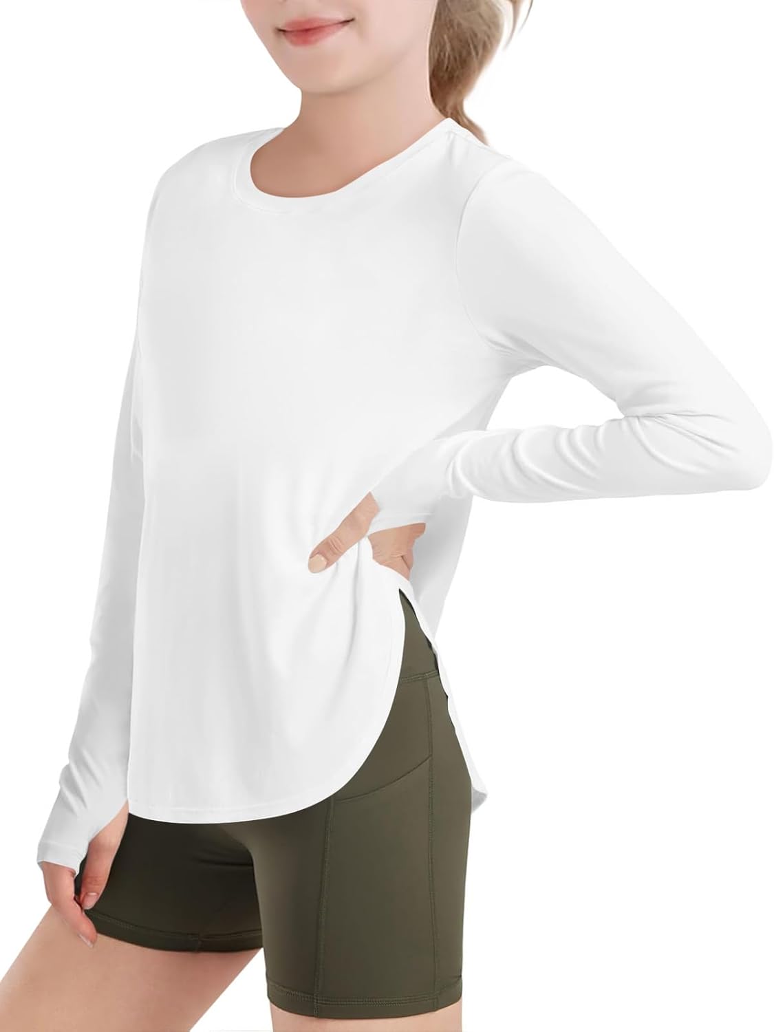 Haloumoning Girls Athletic Long Sleeve Shirts Kids Side Slit Quick Dry Workout Tops Tees with Thumb Hole 5-14 Years