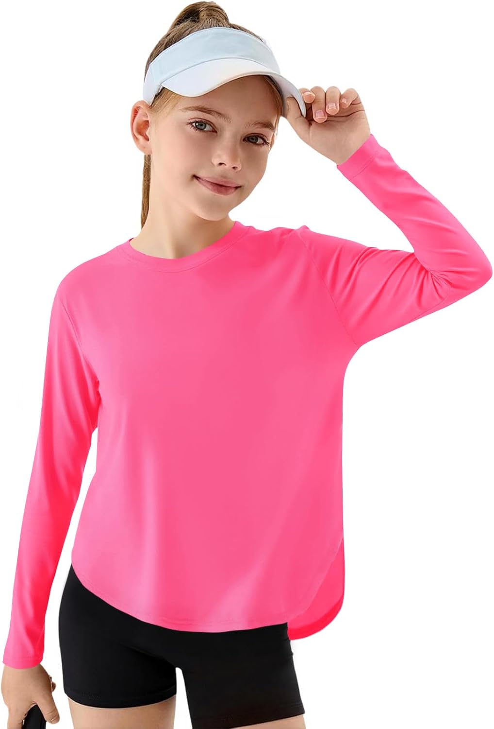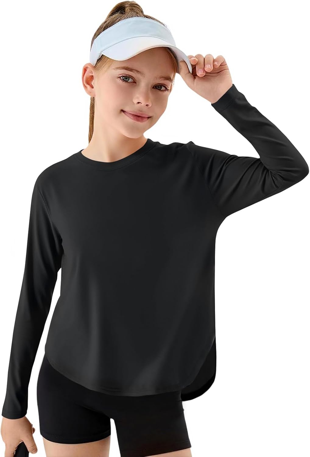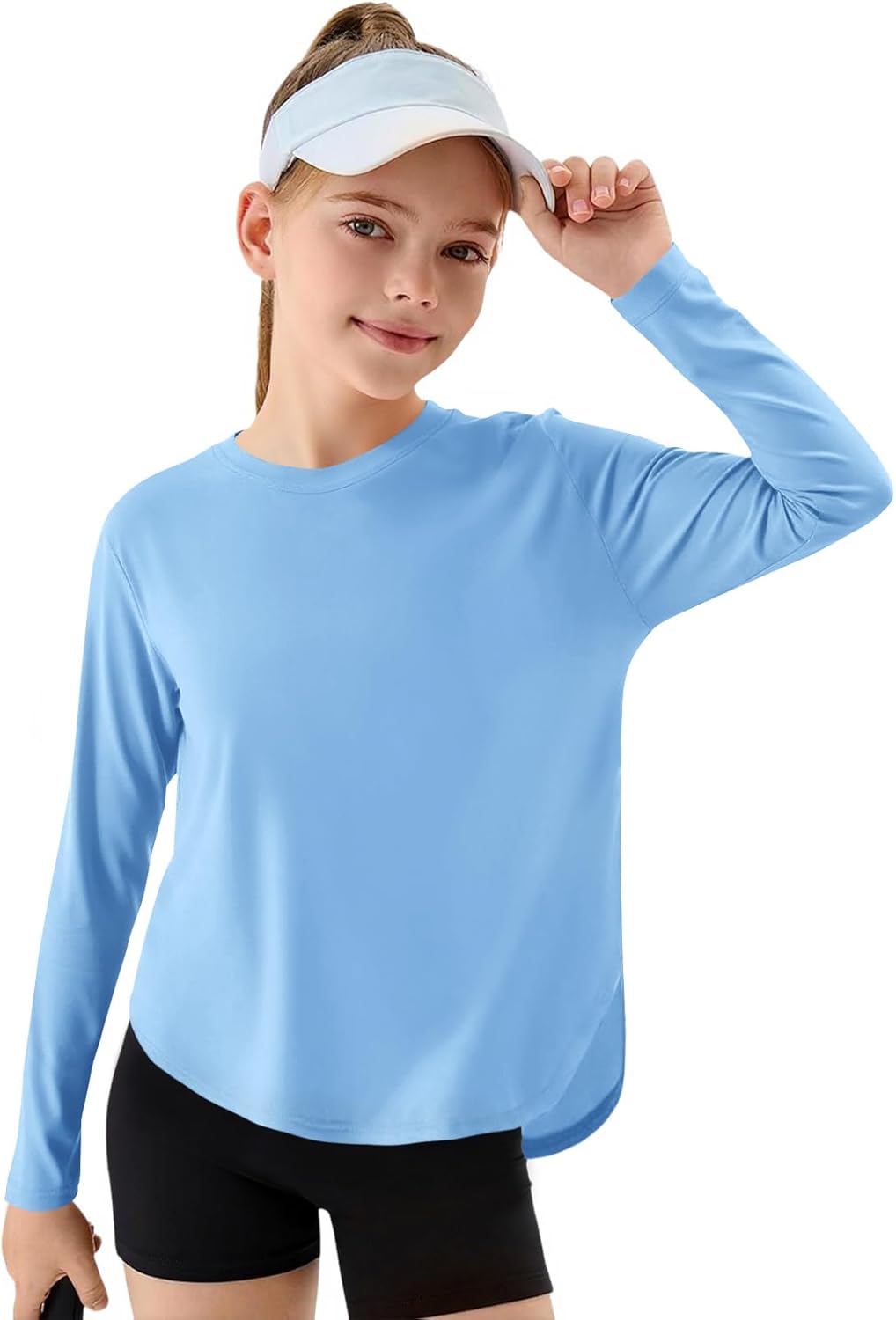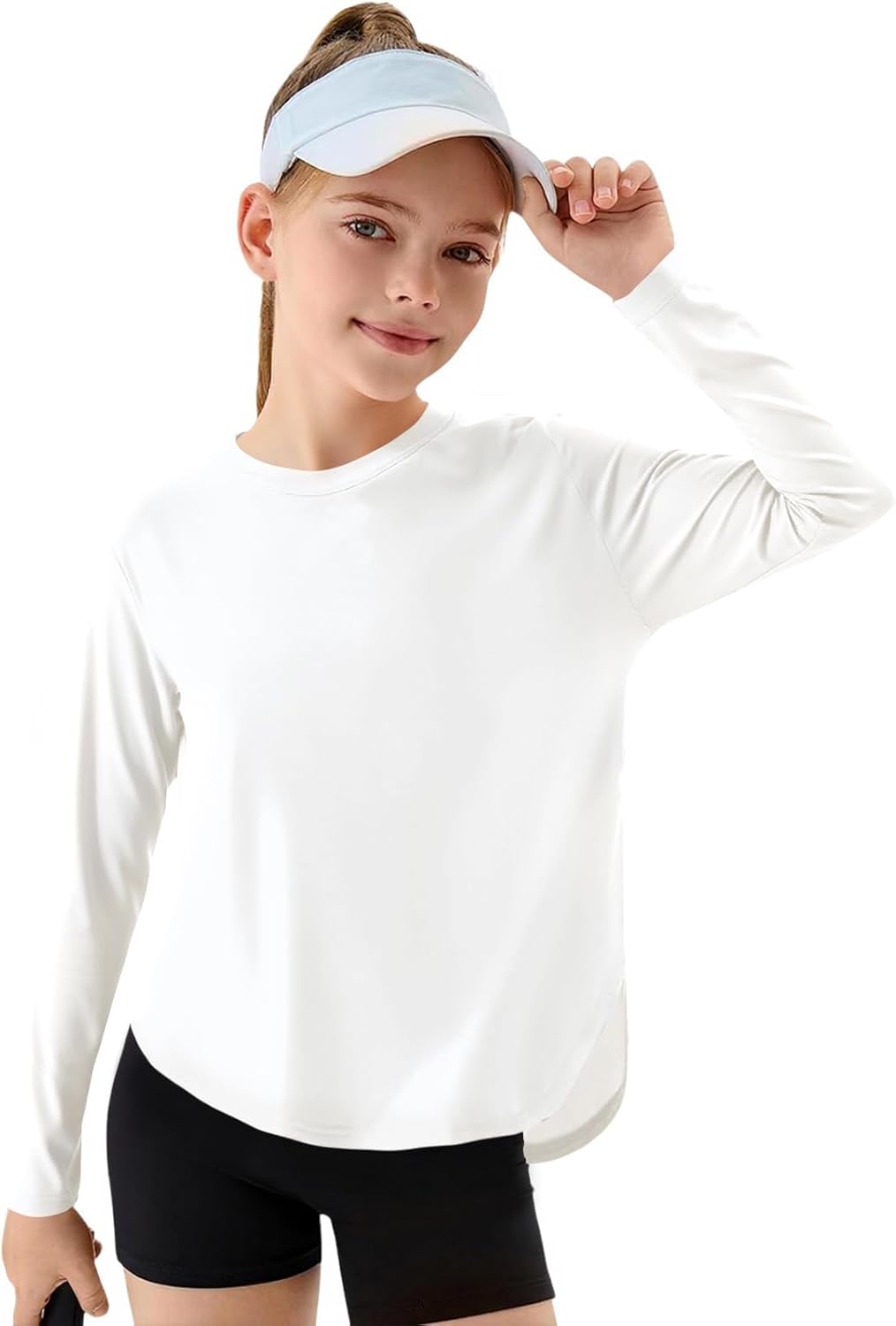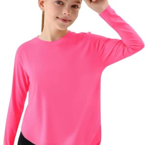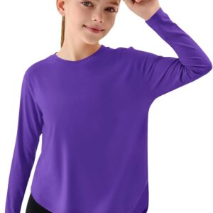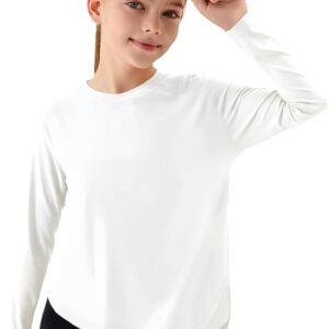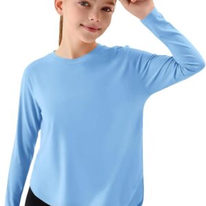 Haloumoning Girls Athletic Shirts Kids Long Sleeve Active Sports T Shirts Quick Dry Tunic Tops Basic Tees 5-14 Years