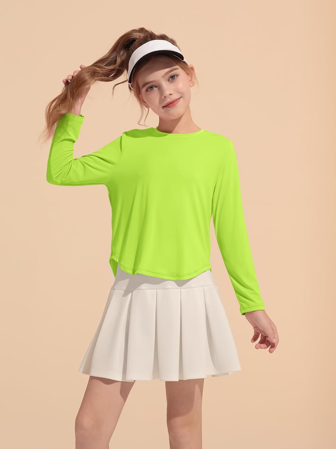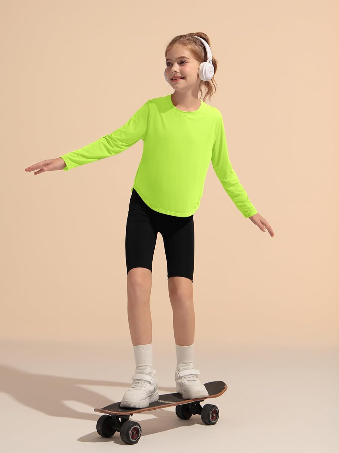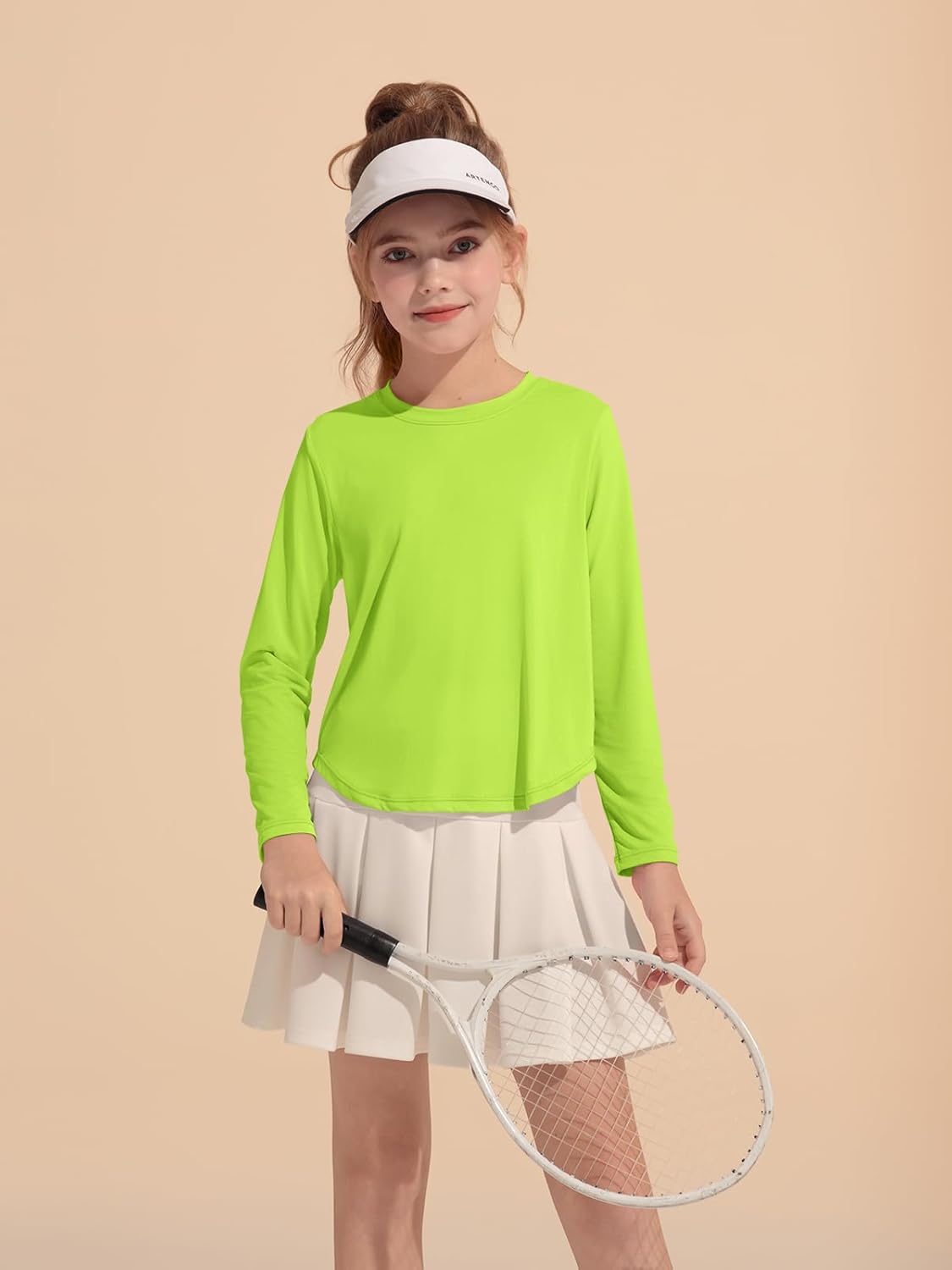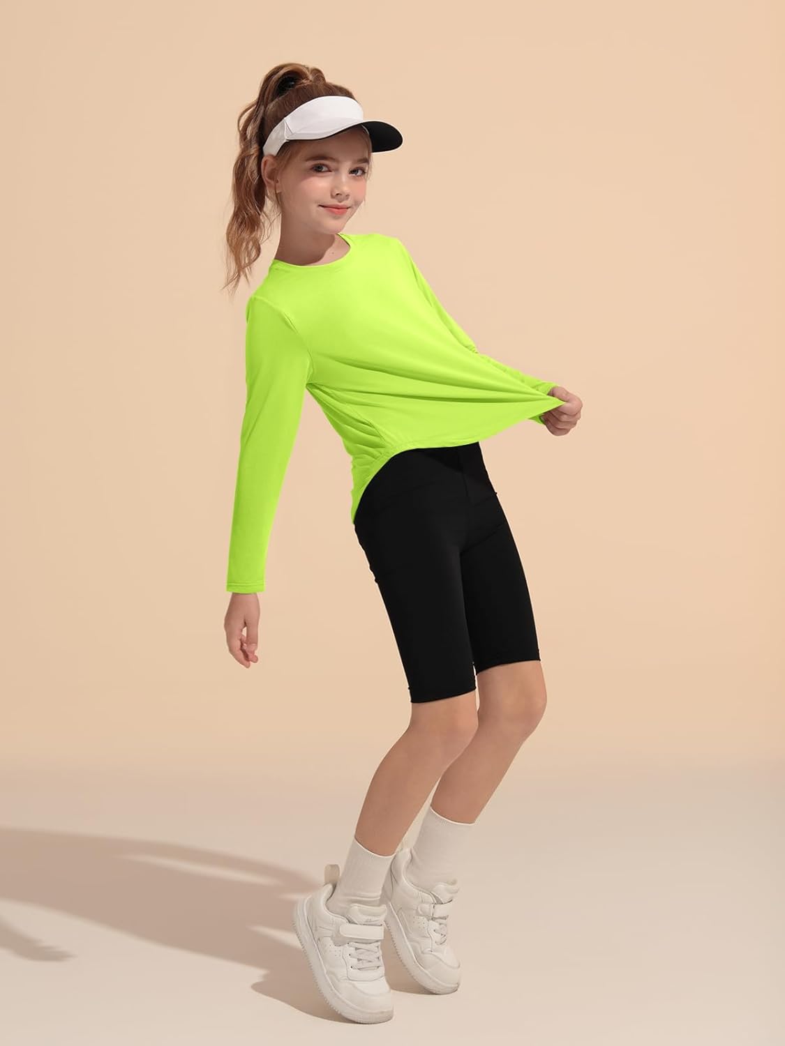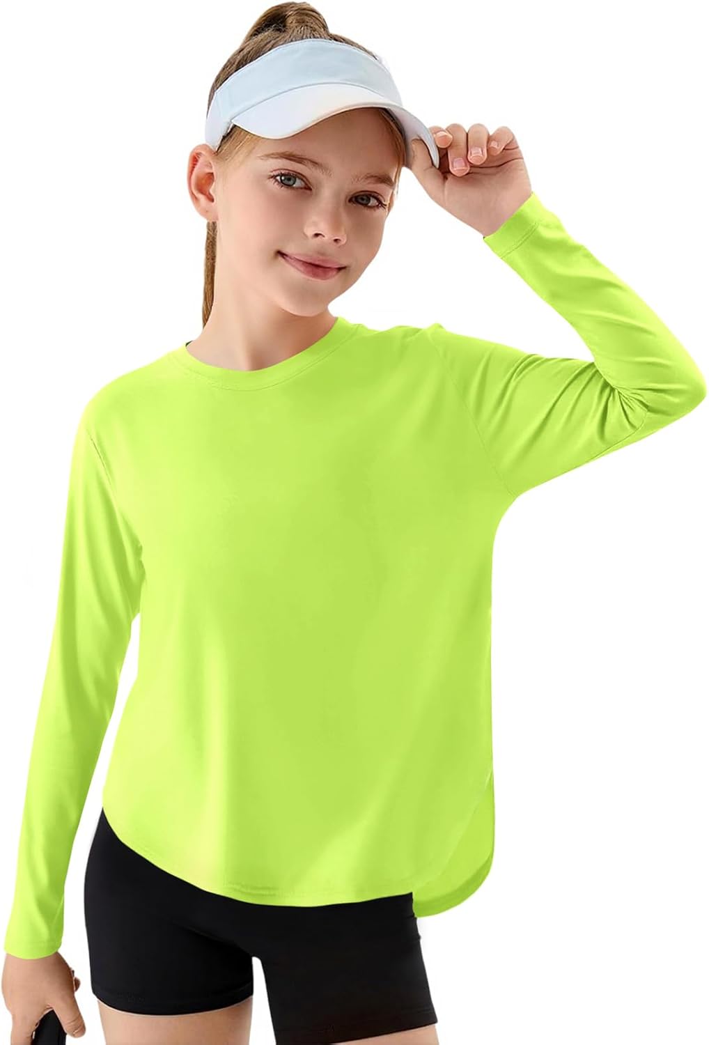 Haloumoning Girls Athletic Shirts Kids Long Sleeve Active Sports T Shirts Quick Dry Tunic Tops Basic Tees 5-14 Years