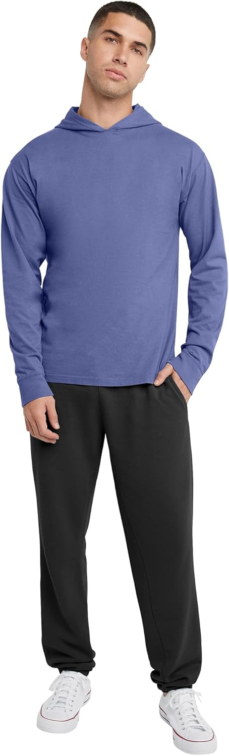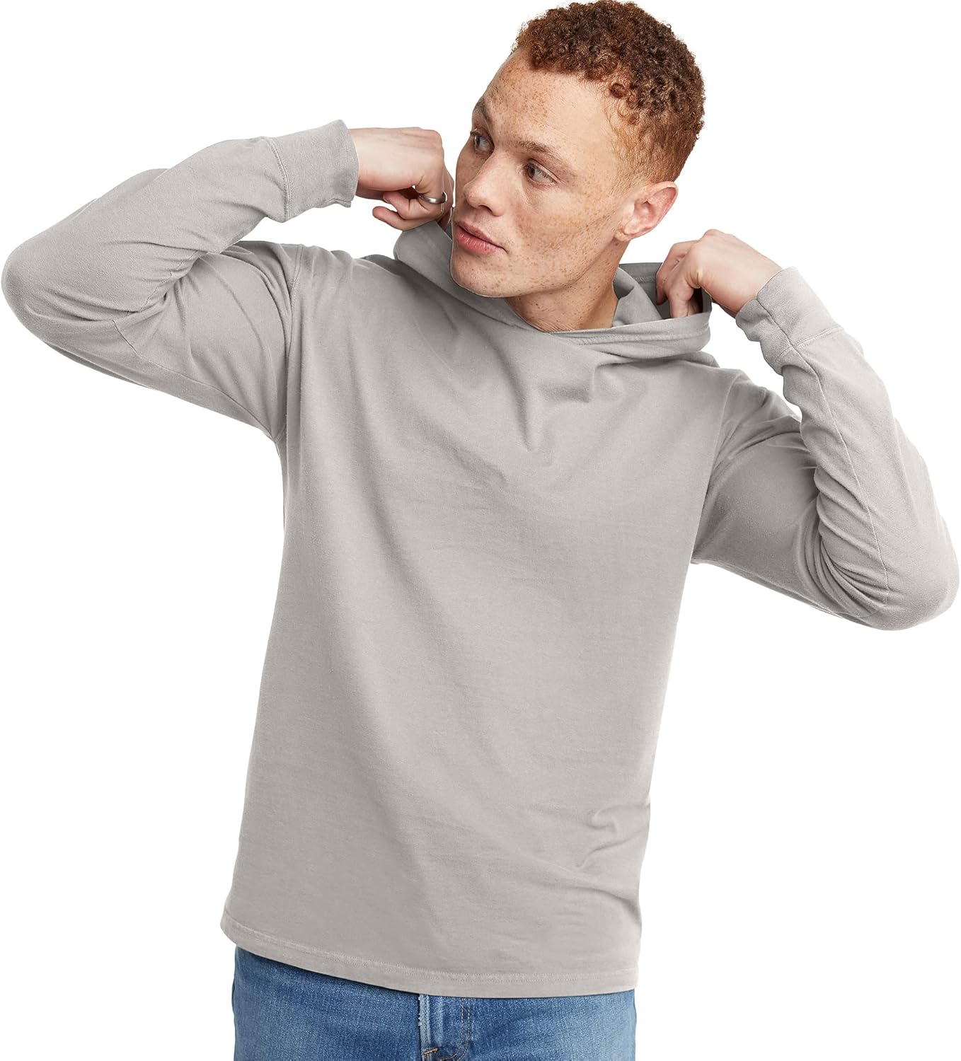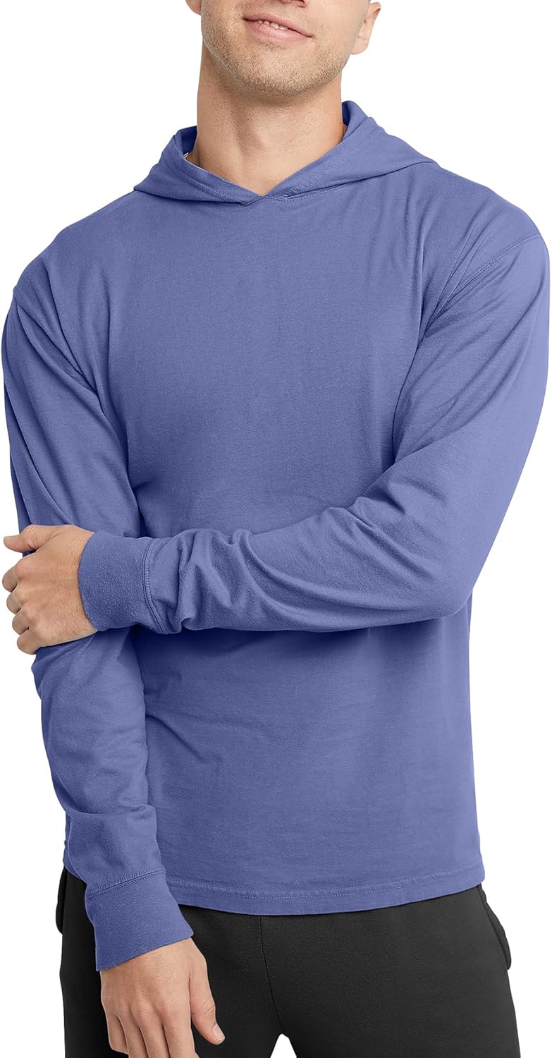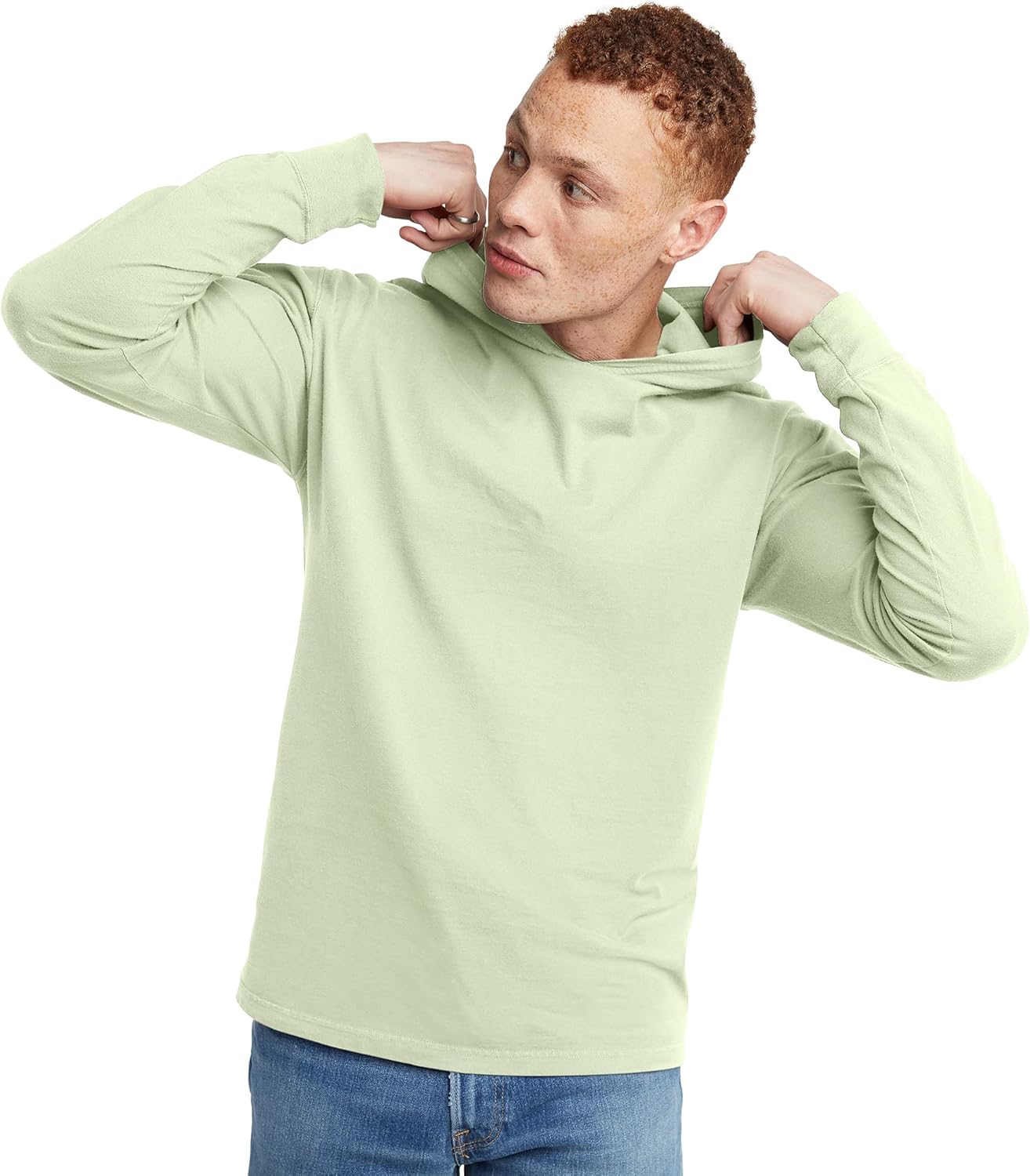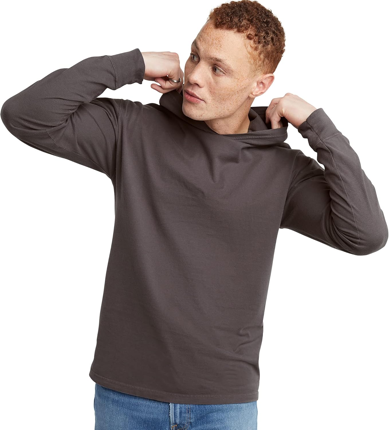 Everything you love about our long sleeve t-shirts for men but this time, we added a hood for extra comfort and style. Made from soft, 100% cotton that has been vintage washed and garment-dyed, meaning these men’s pullover hoodie tees have that worn-in feel and cool, retro look. Wear these hooded t-shirts with your best Hanes joggers for a casual athletic look, or layer under your favorite jacket for a night on the town.