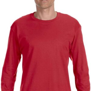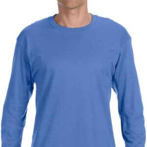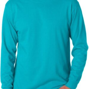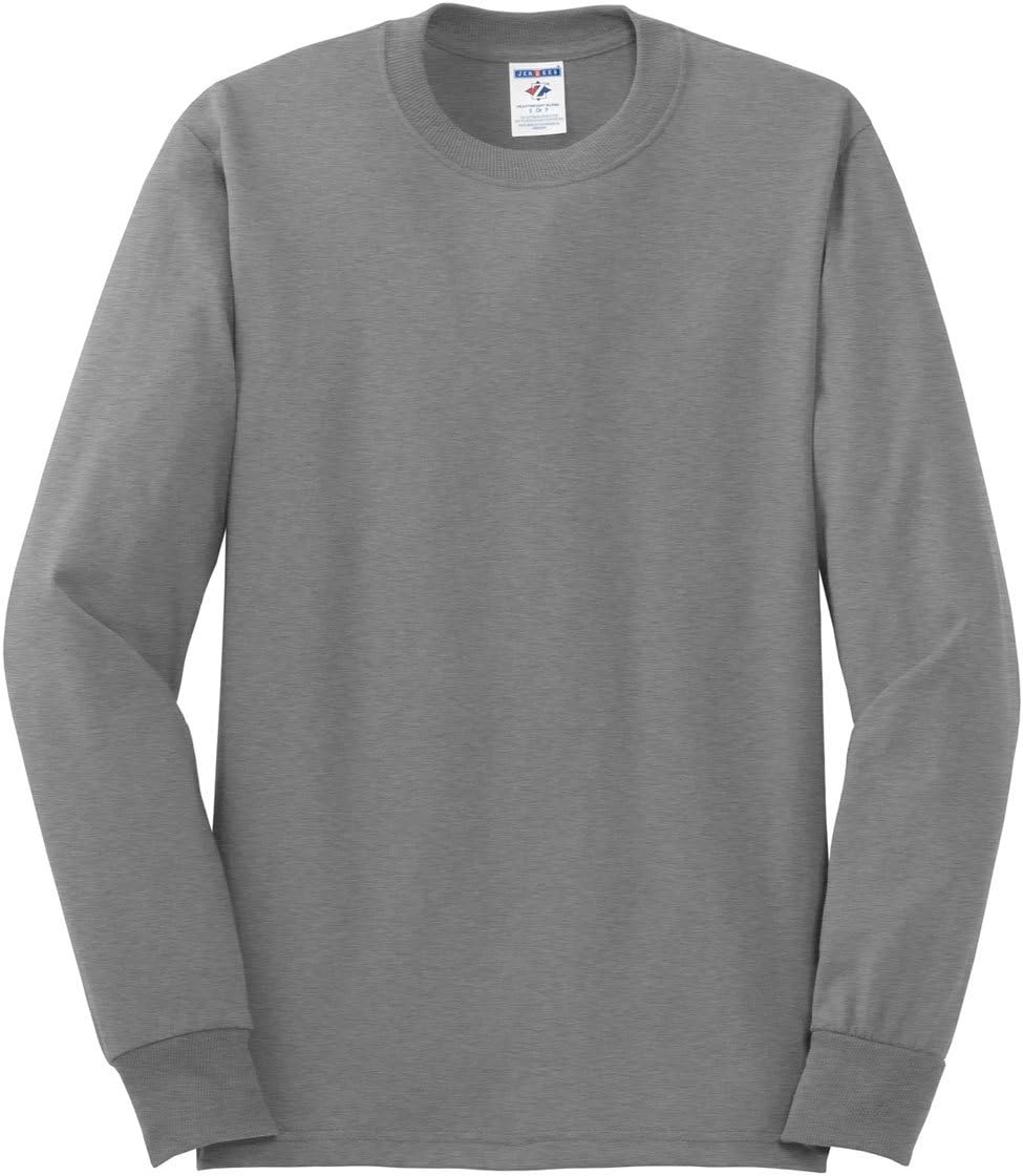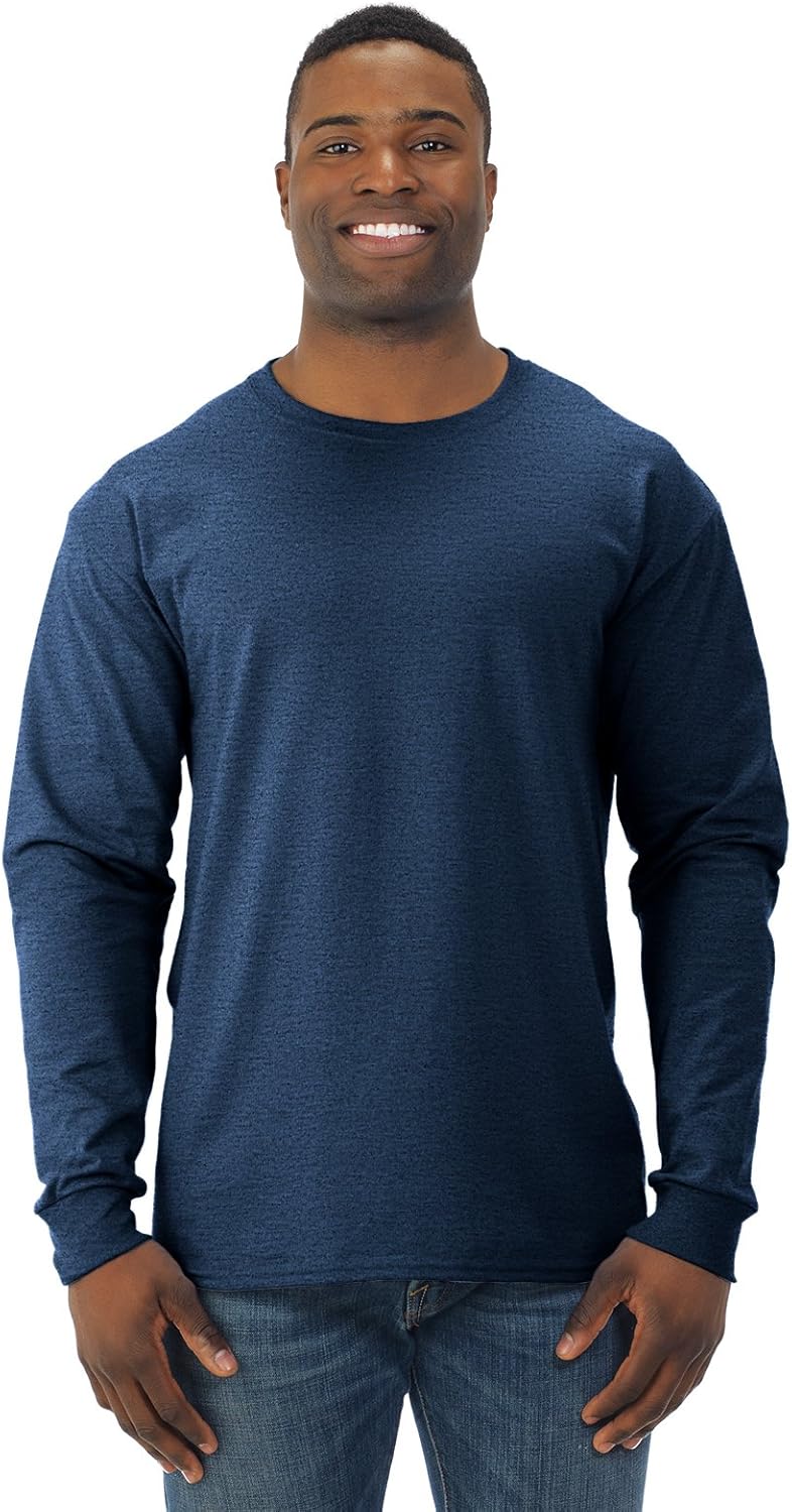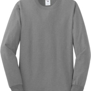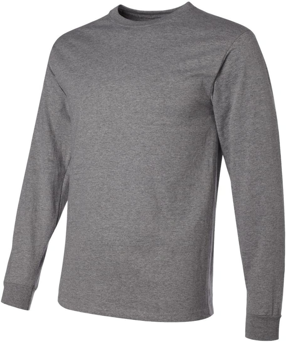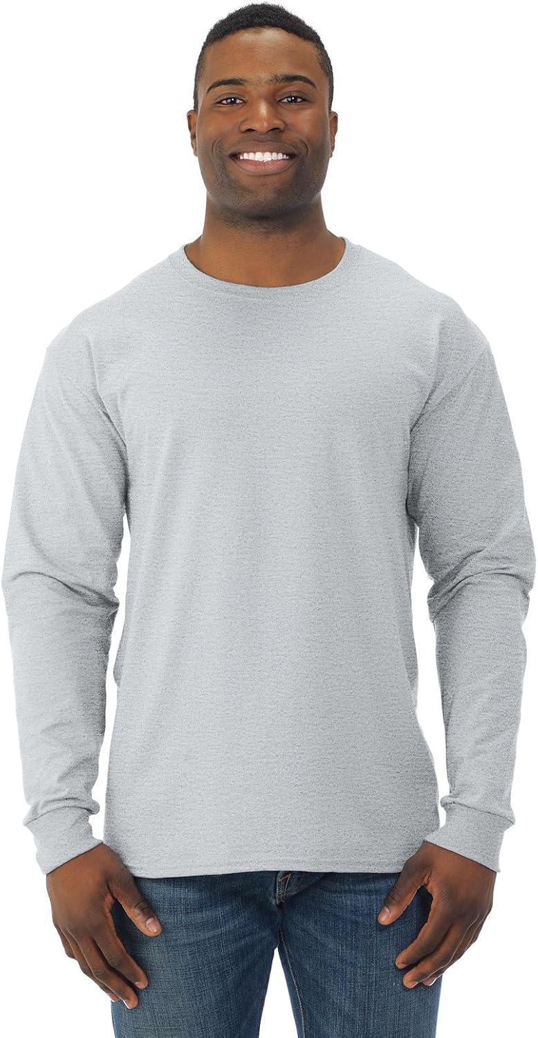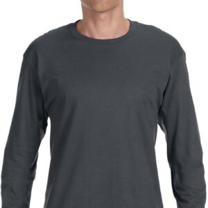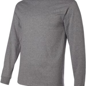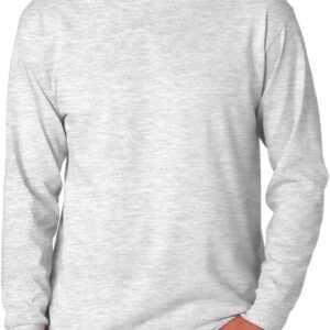 50% cotton, 50% polyester; Oxford is 53% polyester, 47% cotton; shoulder-to-shoulder tape; double-needle coverstitched front neck; set-in sleeves; rib cuffs with concealed seams; seamless body for a wide printing area; double-needle stitched hemmed bottom; seamless 1×1 rib collar;