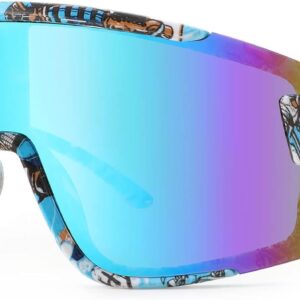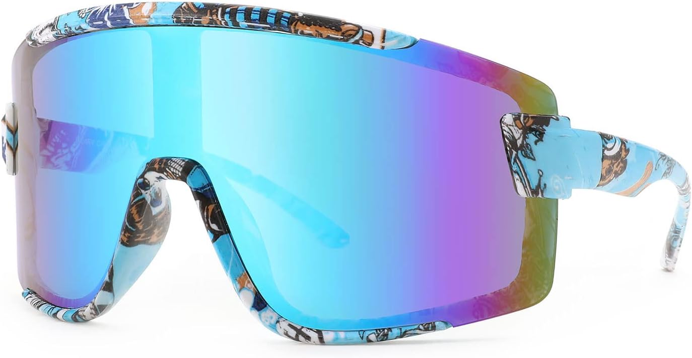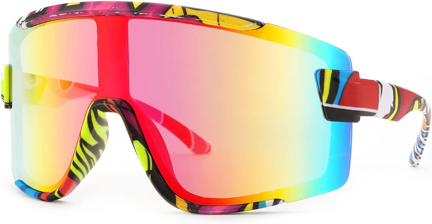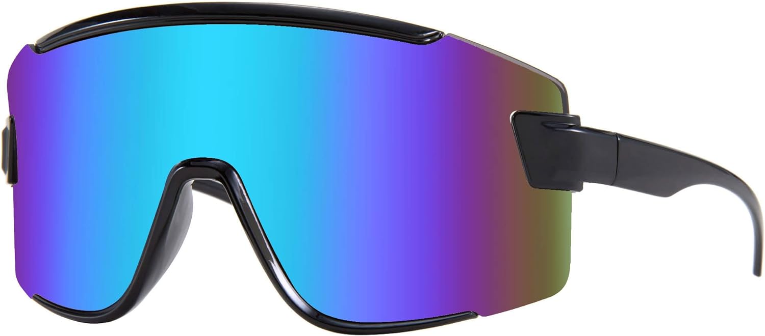 Karsaer Vision Big Shield Wraparound Sunglasses Rave for Men Women Neon Sun Visor Glasses Cycling Ski Shades 80s 90s