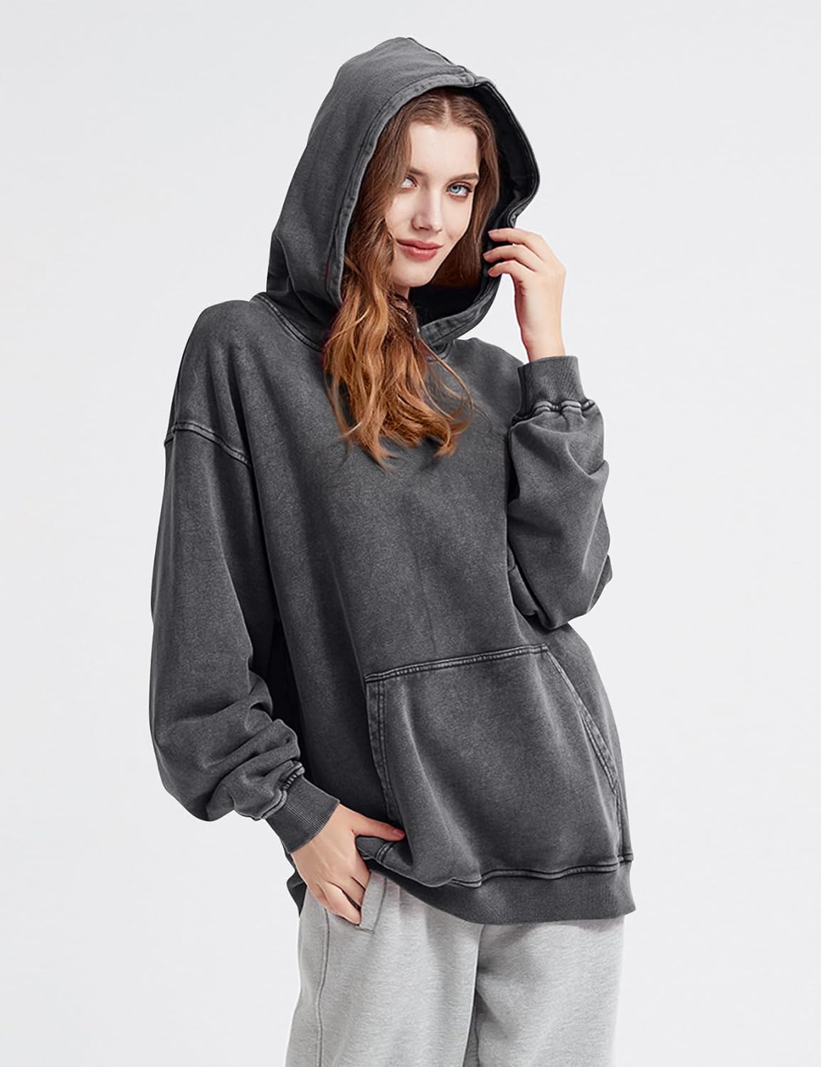 Trendy Basic Acid Wash Pullover Shirts Tops for Women